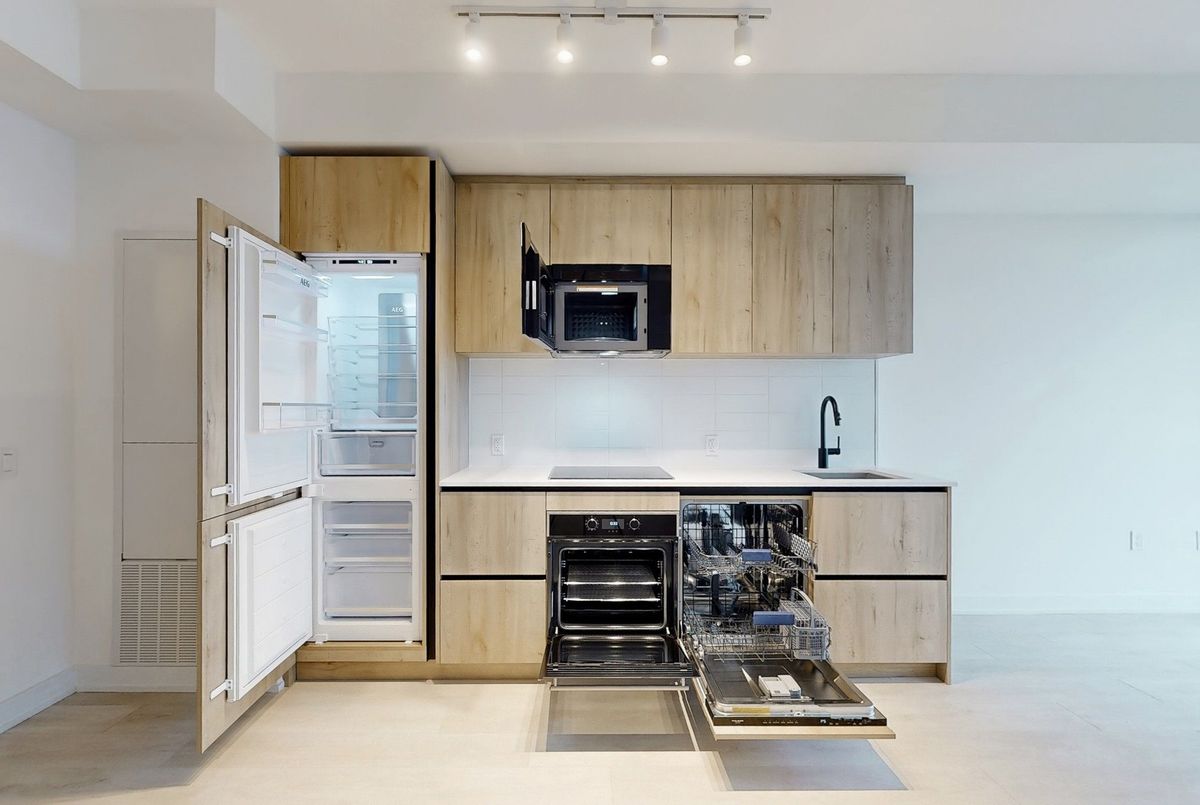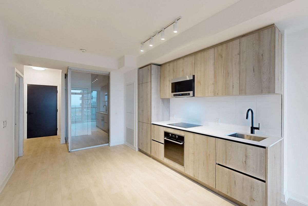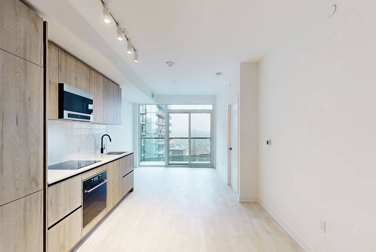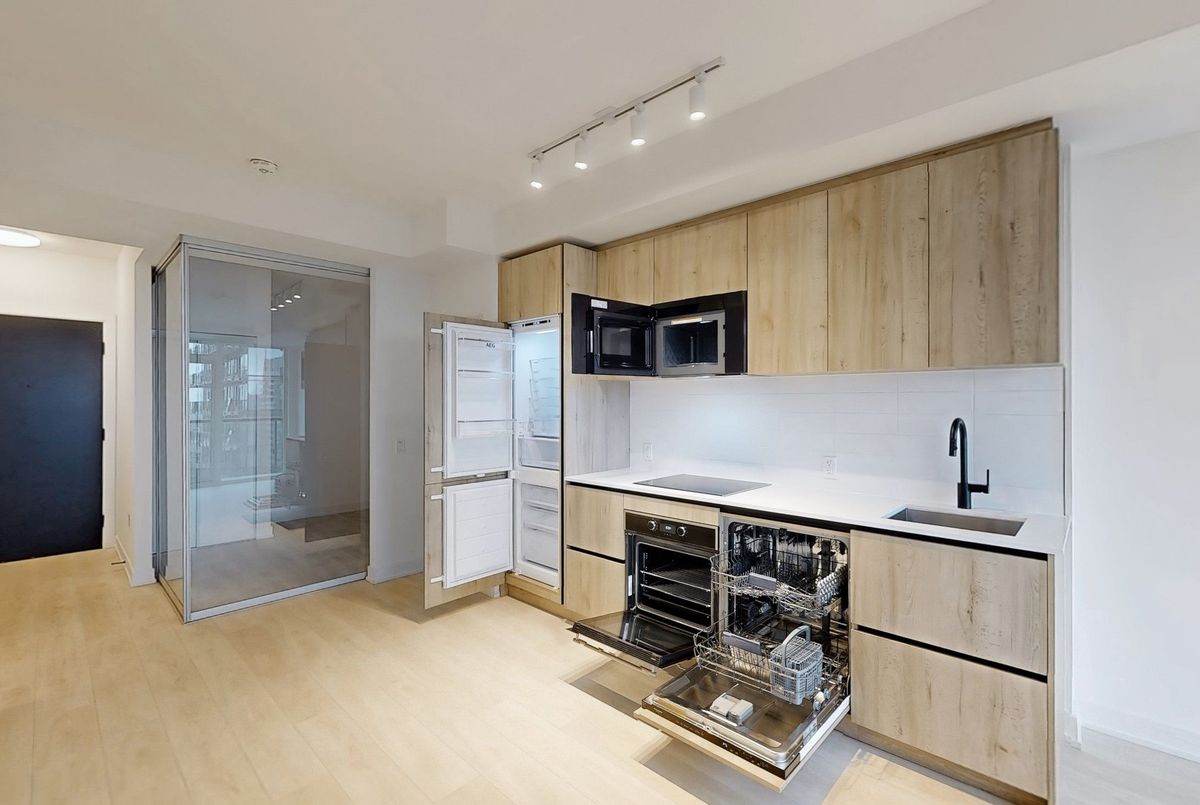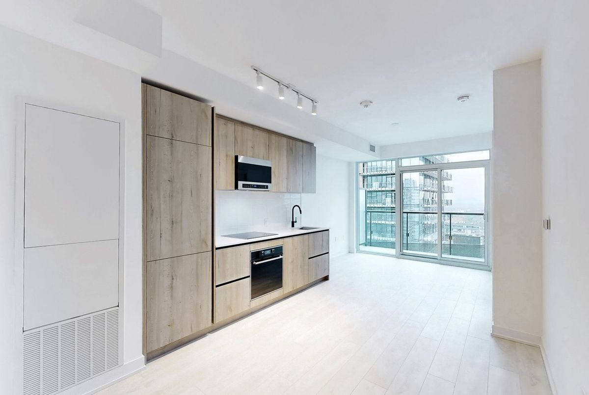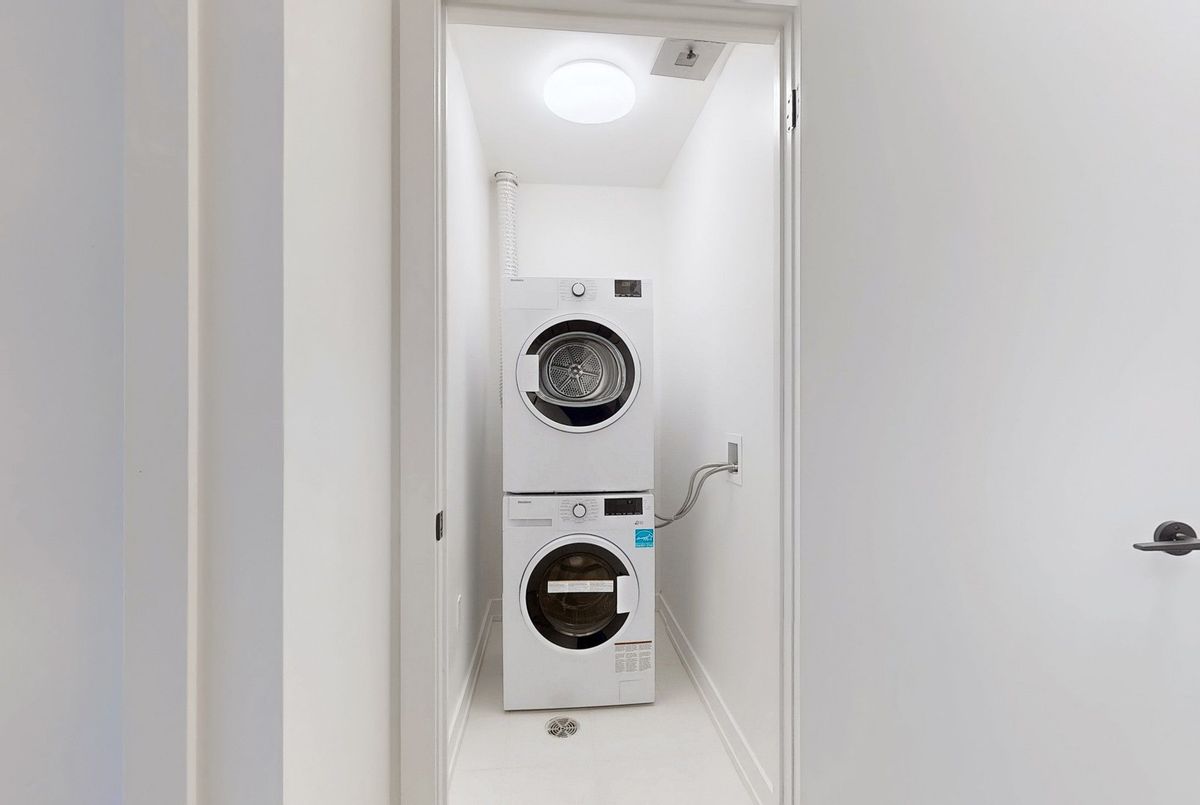 Kitchen Appliances: Fridge, Dishwasher, Stove/ Oven, Range hood Fan. Laundry Appliances:Washer& Dryer.Welcome to Line 5 Condos at Yonge & Eglinton! Brand-new 2-bedroom corner suite featuring 628sf of interior living space, functional open concept layout. Modern and stylish interior with9' smooth-finished ceilings, luxurious wide-plank laminate flooring throughout, and floor-to-ceiling windows. Well appointed kitchen includes sleek European-style cabinetry, quartz counter tops, and mix of stainless steel and integrated appliances. 2 spacious bedrooms; primary bedroom features spa-like 3-piece ensuite bath. Conveniently located near shops, restaurants, schools, and parks. Just minutes from the Eglinton subway station and soon-to-open LRT. Wonderful building amenities: state-of-the-art fitness center and yoga studio, outdoor pool and lounge, outdoor dining area with BBQs, outdoor games room, outdoor theatre, sauna and steam room, party room with kitchen, 24/7 concierge, juice and coffee bar, and visitor parking. SUITE UPGRADES: electrical outlets in each bedroom for overhead lighting, mirrored closet doors, entertainment package with electrical outlet at TV height in living room, upgraded back splash, and window coverings.