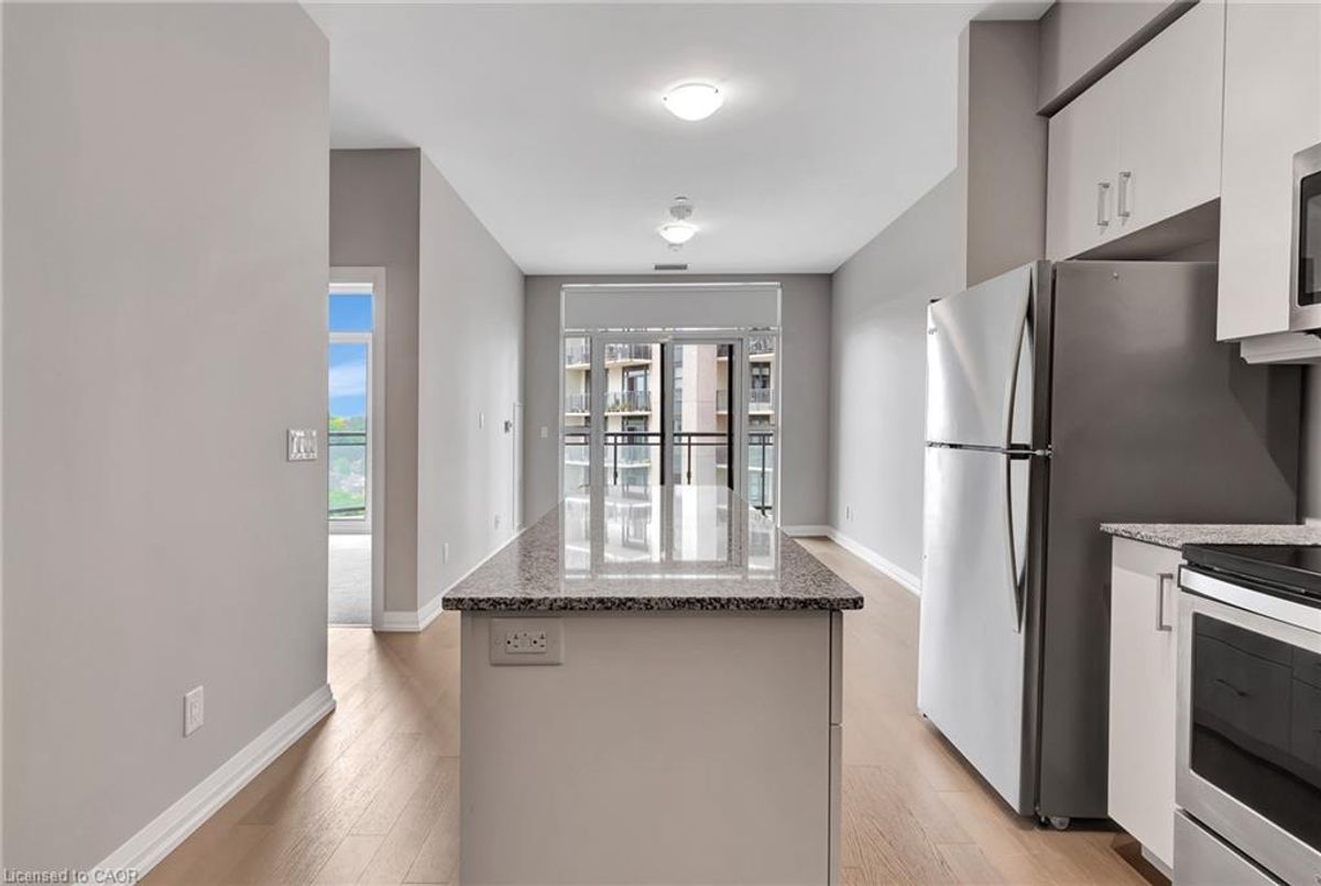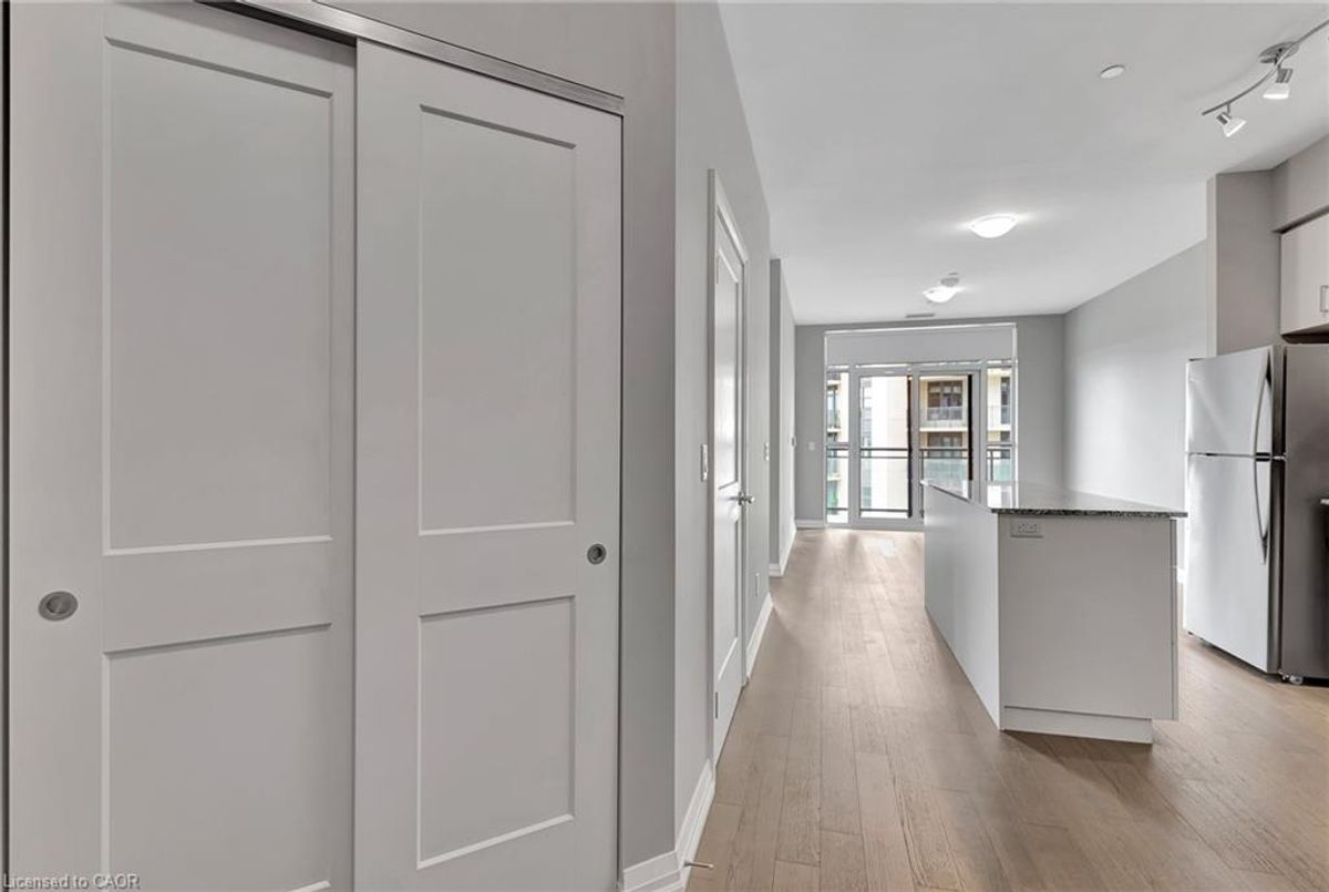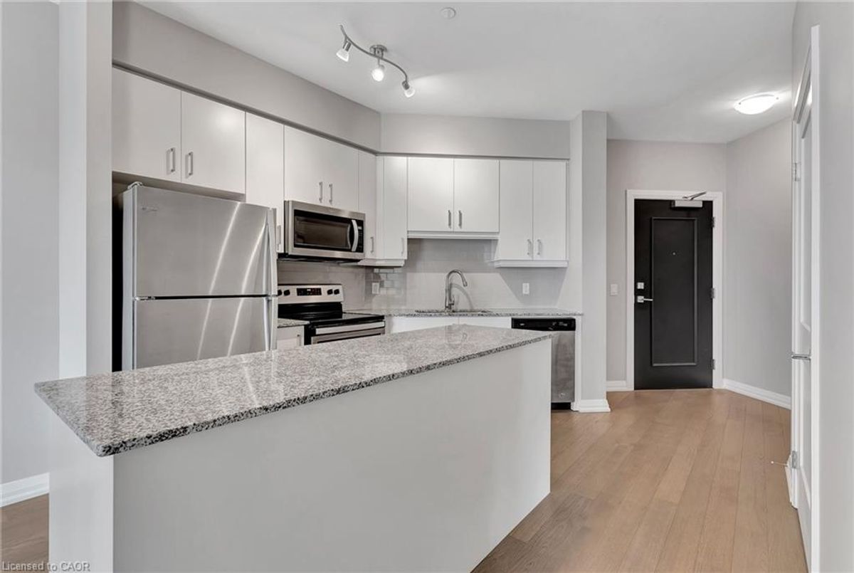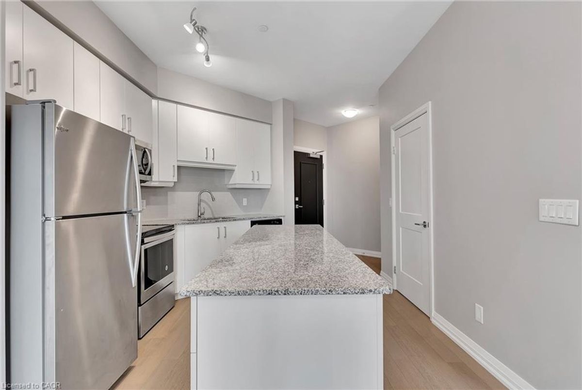 Bright One Bedroom Condo in Uptown Waterloo!Experience stylish and effortless living in one of Waterloo’s most sought after condo buildings, perfectly situated in the vibrant heart of Uptown. This freshly painted and vacant one bedroom, one bathroom suite is move in ready and filled with natural light throughout the day.The thoughtfully designed open concept layout features floor to ceiling windows that brighten the space and create a warm, welcoming atmosphere. Step outside to your private west facing balcony - an ideal place to relax and enjoy the evening sun. The spacious bedroom includes double glass doors leading to the balcony and a walk in closet that offers excellent storage. The upgraded bathroom features a stylish new mirror and a sleek modern faucet for a fresh, contemporary touch.The kitchen offers both functionality and modern design with oversized cabinets, a generous island with soft close drawers, and stainless steel appliances, perfect for cooking, entertaining, or everyday living.Residents of this highly desirable building enjoy outstanding amenities such as a fitness center, theatre room, party room with a pool table, rooftop terrace with a putting green, guest suites, and a welcoming concierge in the lobby.Located just steps from Vincenzo’s, the Bauer Kitchen and Bakery, the Allen Street LRT stop, and a short walk to the Grand River Trail, local shops, popular restaurants, and Waterloo’s dynamic tech community, this condo offers an unbeatable mix of location and lifestyle.This beautifully maintained and thoughtfully updated home is ready for you! **Please note: some pictures are virtually staged