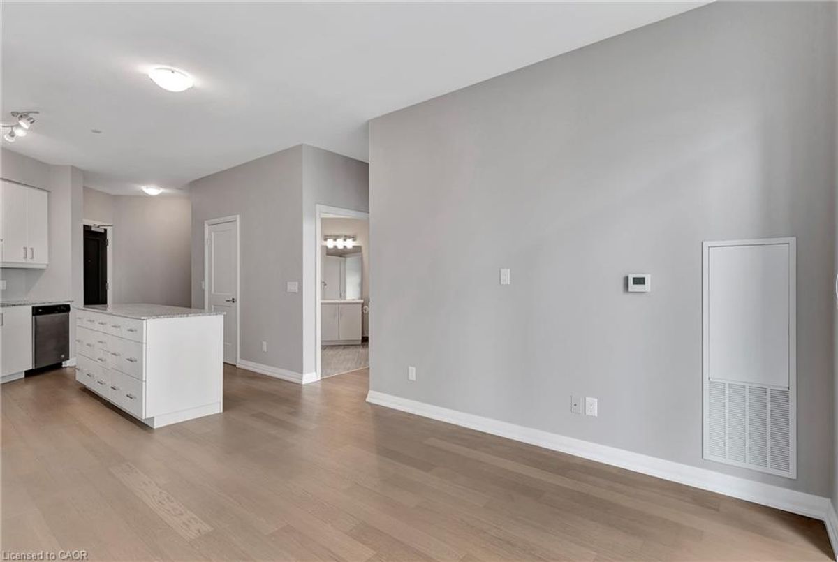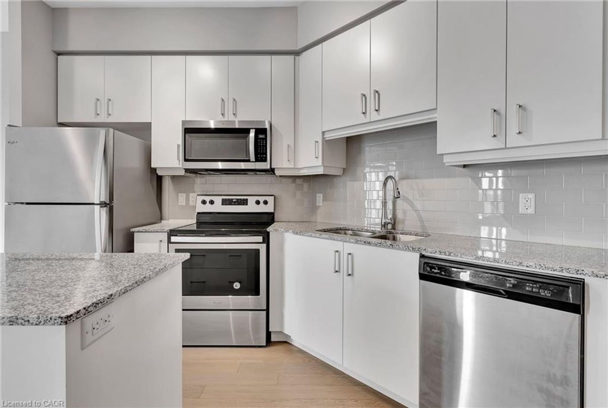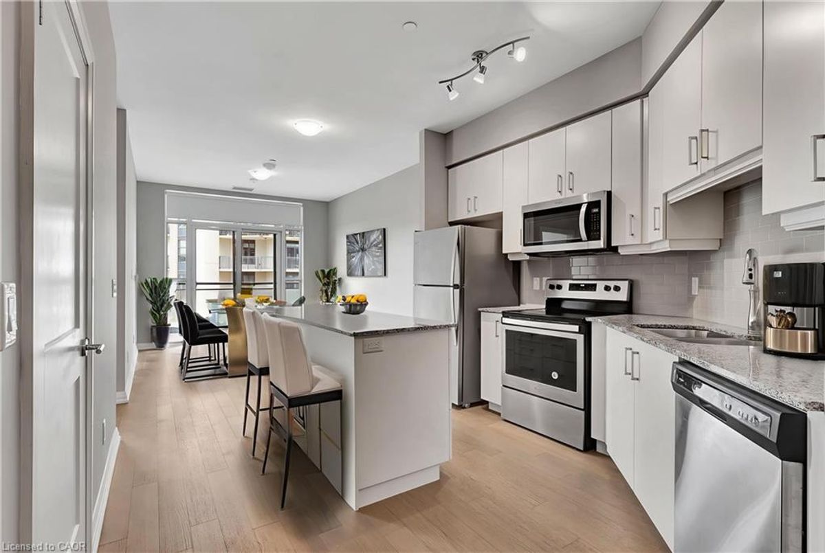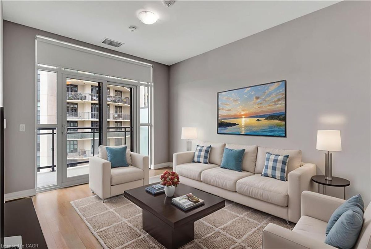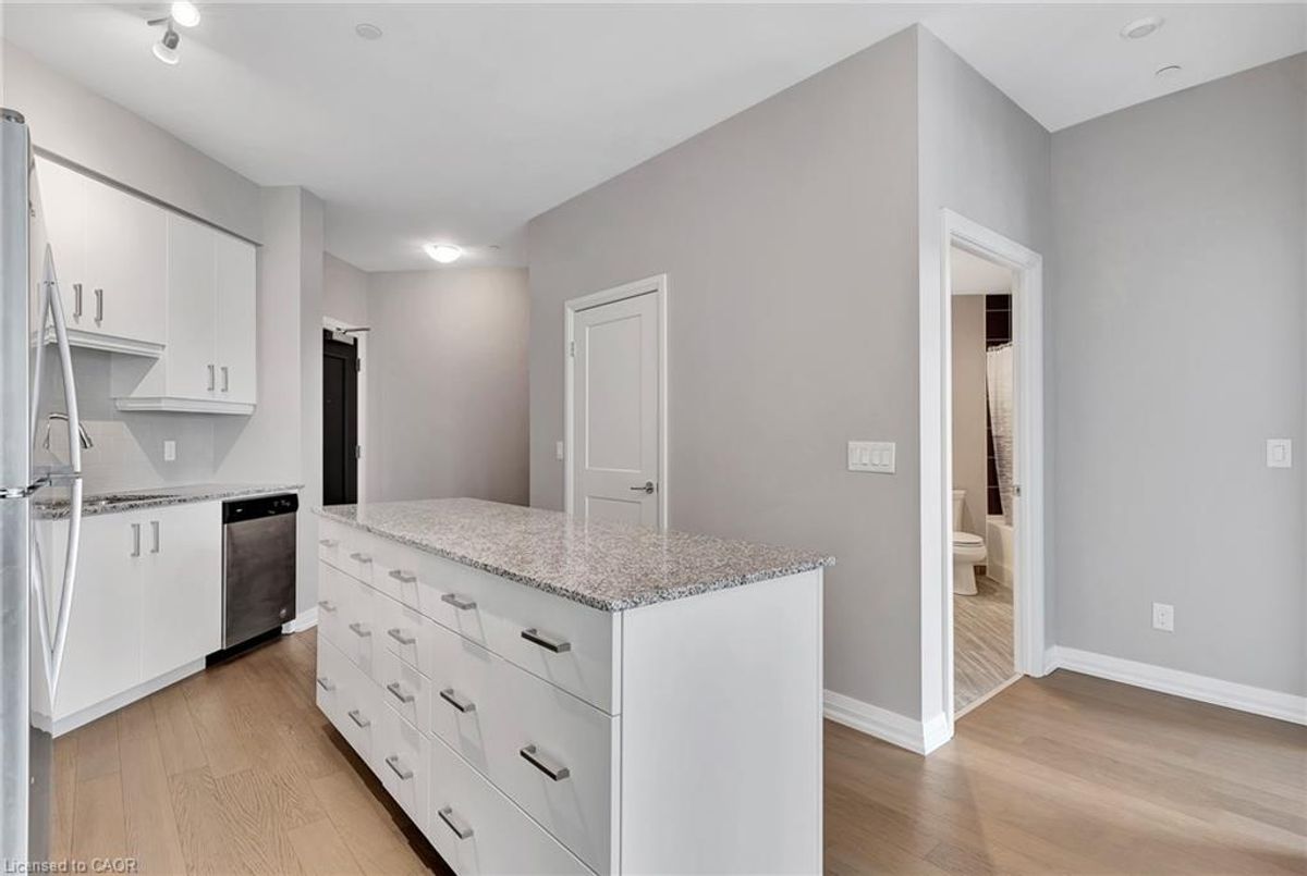 Bright One Bedroom Condo in Uptown Waterloo!Experience stylish and effortless living in one of Waterloo’s most sought after condo buildings, perfectly situated in the vibrant heart of Uptown. This freshly painted and vacant one bedroom, one bathroom suite is move in ready and filled with natural light throughout the day.The thoughtfully designed open concept layout features floor to ceiling windows that brighten the space and create a warm, welcoming atmosphere. Step outside to your private west facing balcony - an ideal place to relax and enjoy the evening sun. The spacious bedroom includes double glass doors leading to the balcony and a walk in closet that offers excellent storage. The upgraded bathroom features a stylish new mirror and a sleek modern faucet for a fresh, contemporary touch.The kitchen offers both functionality and modern design with oversized cabinets, a generous island with soft close drawers, and stainless steel appliances, perfect for cooking, entertaining, or everyday living.Residents of this highly desirable building enjoy outstanding amenities such as a fitness center, theatre room, party room with a pool table, rooftop terrace with a putting green, guest suites, and a welcoming concierge in the lobby.Located just steps from Vincenzo’s, the Bauer Kitchen and Bakery, the Allen Street LRT stop, and a short walk to the Grand River Trail, local shops, popular restaurants, and Waterloo’s dynamic tech community, this condo offers an unbeatable mix of location and lifestyle.This beautifully maintained and thoughtfully updated home is ready for you! **Please note: some pictures are virtually staged