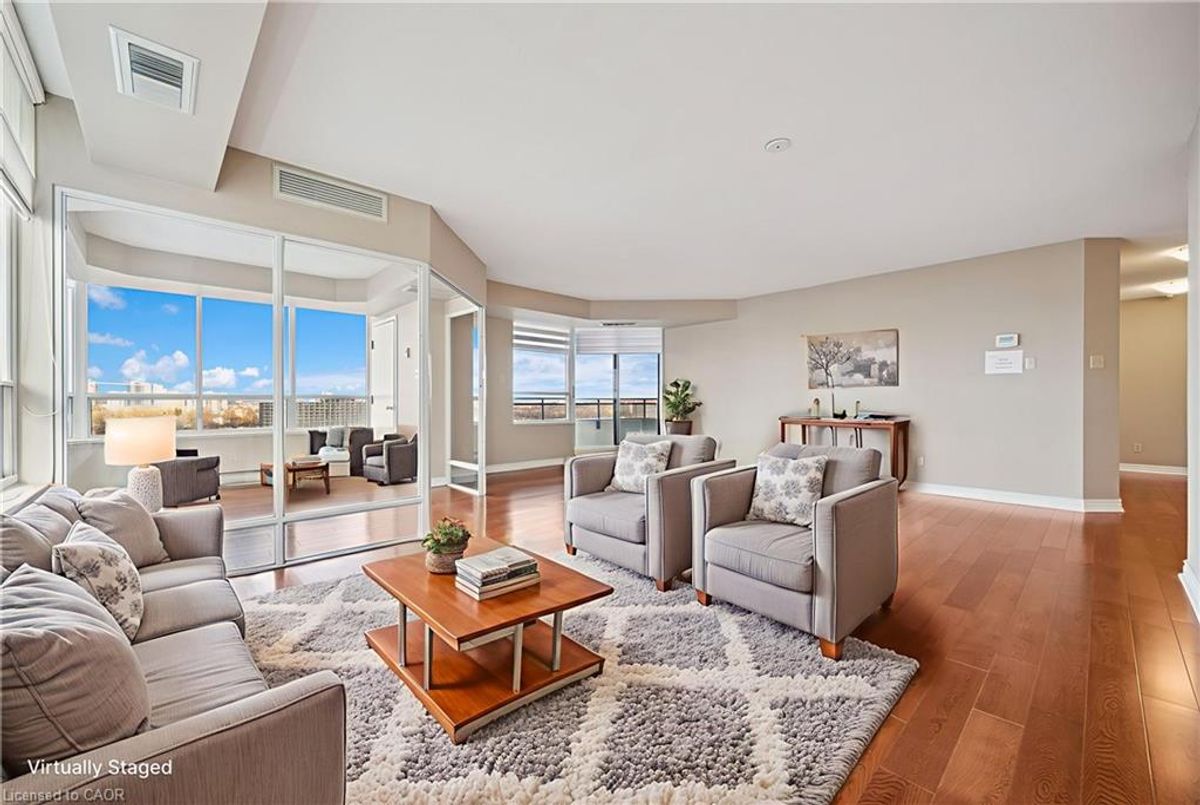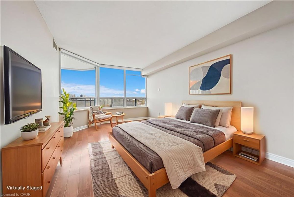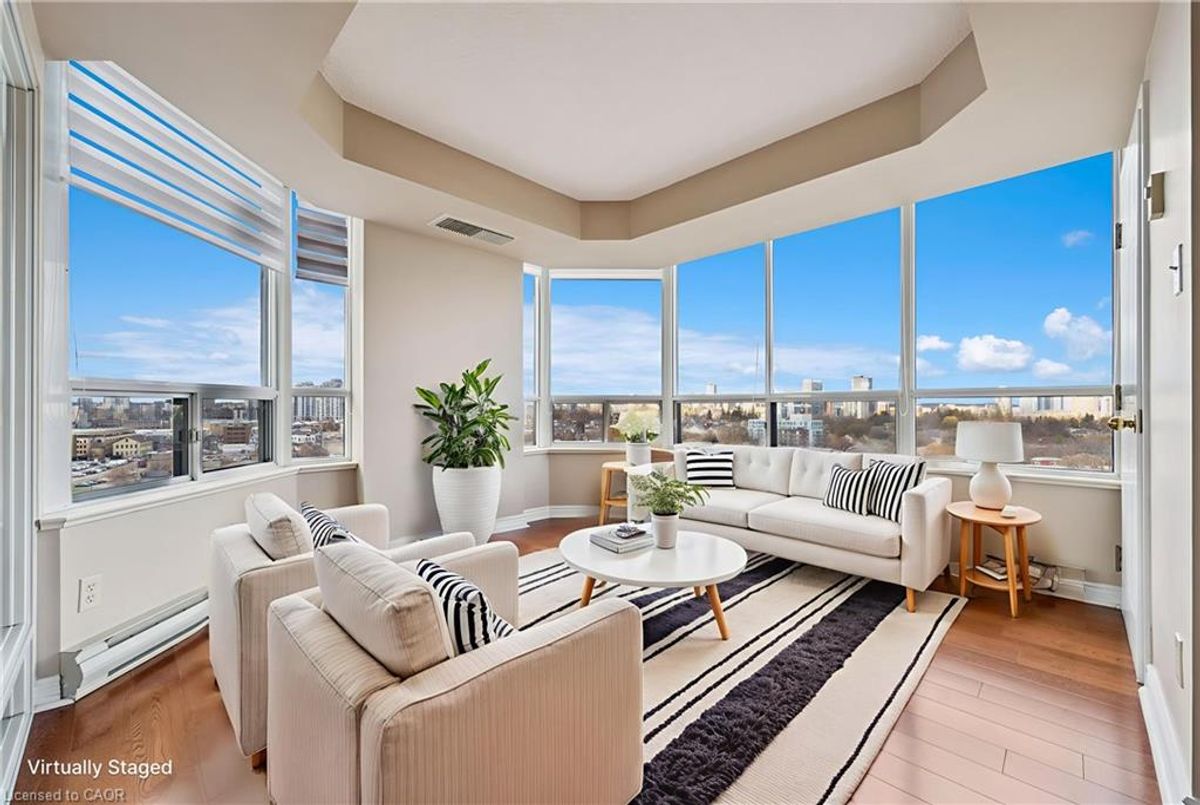 Welcome to Unit 1106 at 6 Willow St. Waterloo. Located in the highly sought-after Waterpark Place Condominiums, this stunning, and exceptionally bright suite features windows throughout, filling every room with natural light and great views. The modern kitchen offers stone countertops, stainless steel appliances, pot lighting and ample storage. Soak up the sun or sunsets in the near panoramic windowed sunroom/family room or the spacious living room which leads to the balcony with stunning views of Waterloo. The spacious primary bedroom is a true retreat, with abundant light, two closets, and a private 3-piece ensuite. The second bedroom is also generously sized and bright, ideally located across from the main 4-piece bath and has its own door to the outdoor balcony. The unit is also carpet-free, with warm wood flooring throughout, making cleaning a breeze. Also enjoy the convenience of stacked in-suite laundry. The bonus of this unit? 2 parking spots and a locker. Waterpark Place is known for its picturesque setting, surrounded by lush landscaping, mature trees, walking paths, and ponds. Residents enjoy impressive amenities including a pool, gym, sauna, party room and ample visitor parking. All of this comes in a stellar location—just minutes to Uptown Waterloo, UW and WLU, highway access, shopping, parks and more. Bright, modern, and ideally situated—Unit 1106 is the perfect place to call home!