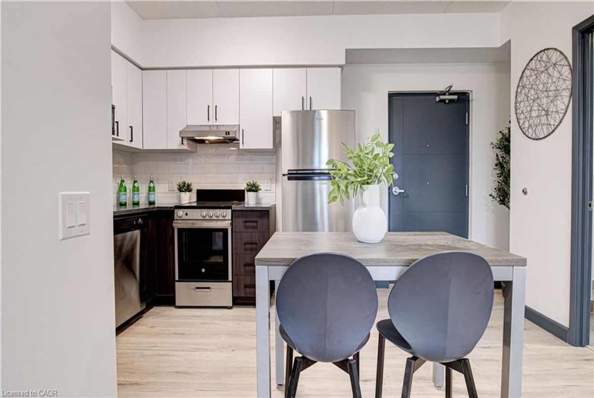 Welcome to Unit 618 at 298 Hemlock Street — modern living in the heart of Waterloo’s university district. Just steps from Wilfrid Laurier University, the University of Waterloo, transit, dining, and everyday amenities, this location offers unbeatable convenience in a vibrant community. This 709 sq. ft. one-bedroom plus dining suite with two full bathrooms delivers a smart, functional layout designed for comfort and flexibility. The spacious bedroom is complemented by a dedicated dining area, ideal for entertaining, studying, or working from home, while the second bathroom adds rare convenience and privacy. The contemporary kitchen features granite countertops, full wood cabinetry, and sleek LED lighting, flowing seamlessly into the open-concept living space. Floor-to-ceiling windows flood the unit with natural light, creating a bright and airy atmosphere throughout. Efficient, modern, and exceptionally located — Unit 618 offers elevated urban living in one of Waterloo’s most sought-after buildings.