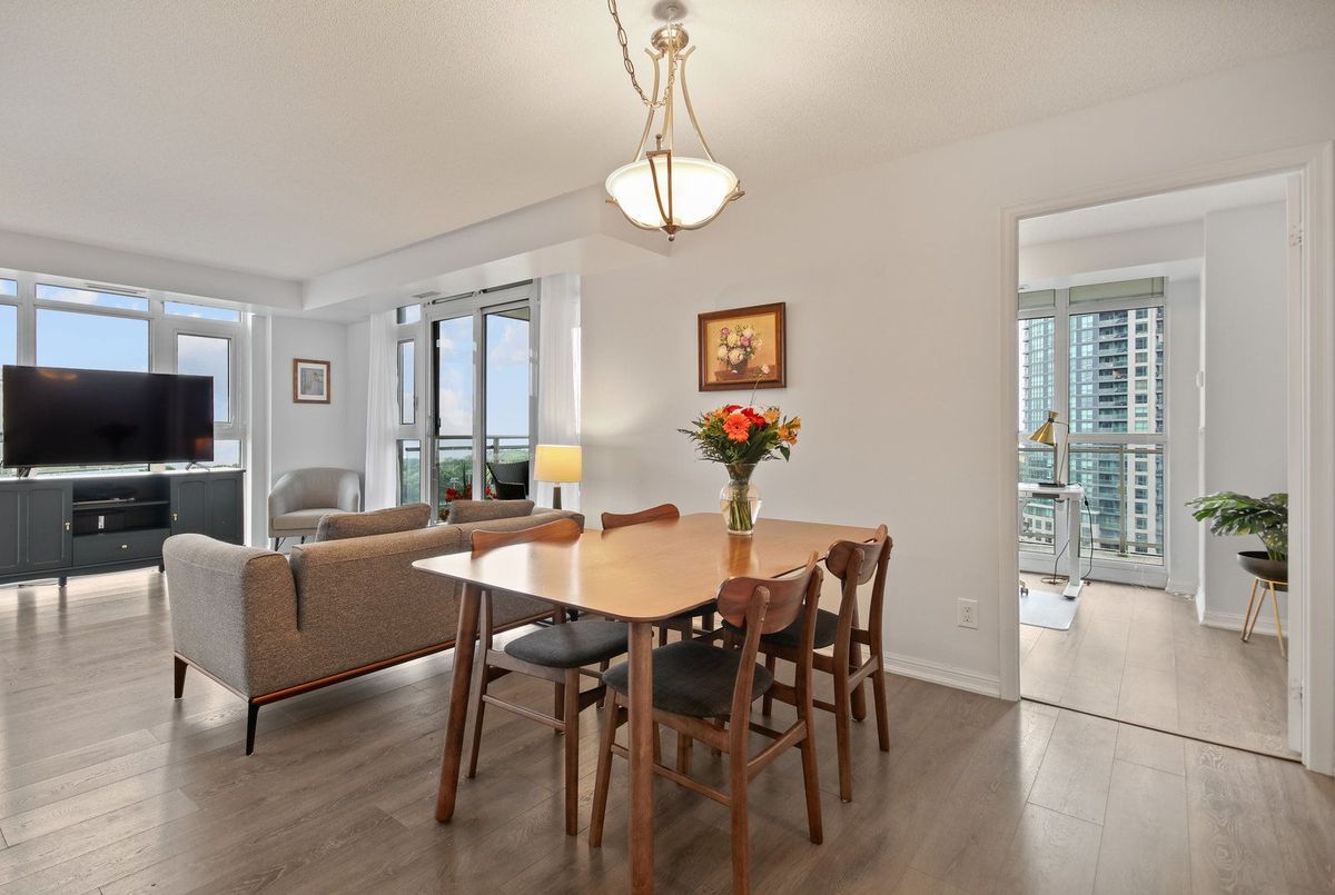 Amazing Lake and City Views at this fully FURNISHED condo at York Harbour Club. Luxurious southwest-facing low penthouse featuring two bedrooms plus a spacious den with a large window ideal as a third bedroom or home office. This sun-filled suite boasts two private balconies and 9-foot floor-to-ceiling windows that flood the space with natural light. The open-concept layout features a chef's kitchen with modern cabinetry, stainless steel appliances, and contemporary finishes, seamlessly flowing into the living and dining areas, making it perfect for entertaining. Two stylish, well-appointed bathrooms add to the comfort and elegance of this residence. Enjoy access to premium building amenities, including a rooftop terrace with BBQs, outdoor pool, fully equipped fitness centre, and sauna . Conveniently located steps from the Harbourfront Centre, Toronto Music Garden, Billy Bishop Airport, Loblaws, LCBO, shops, and restaurants. Easy access to the QEW and DVP, with TTC at your doorstep. A rare opportunity to live in one of Toronto's most desirable waterfront communities.