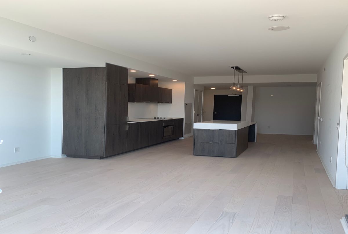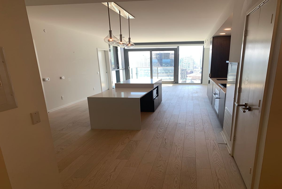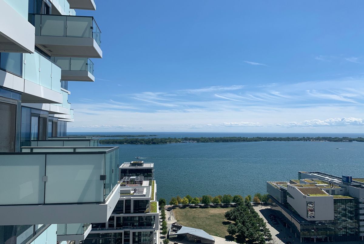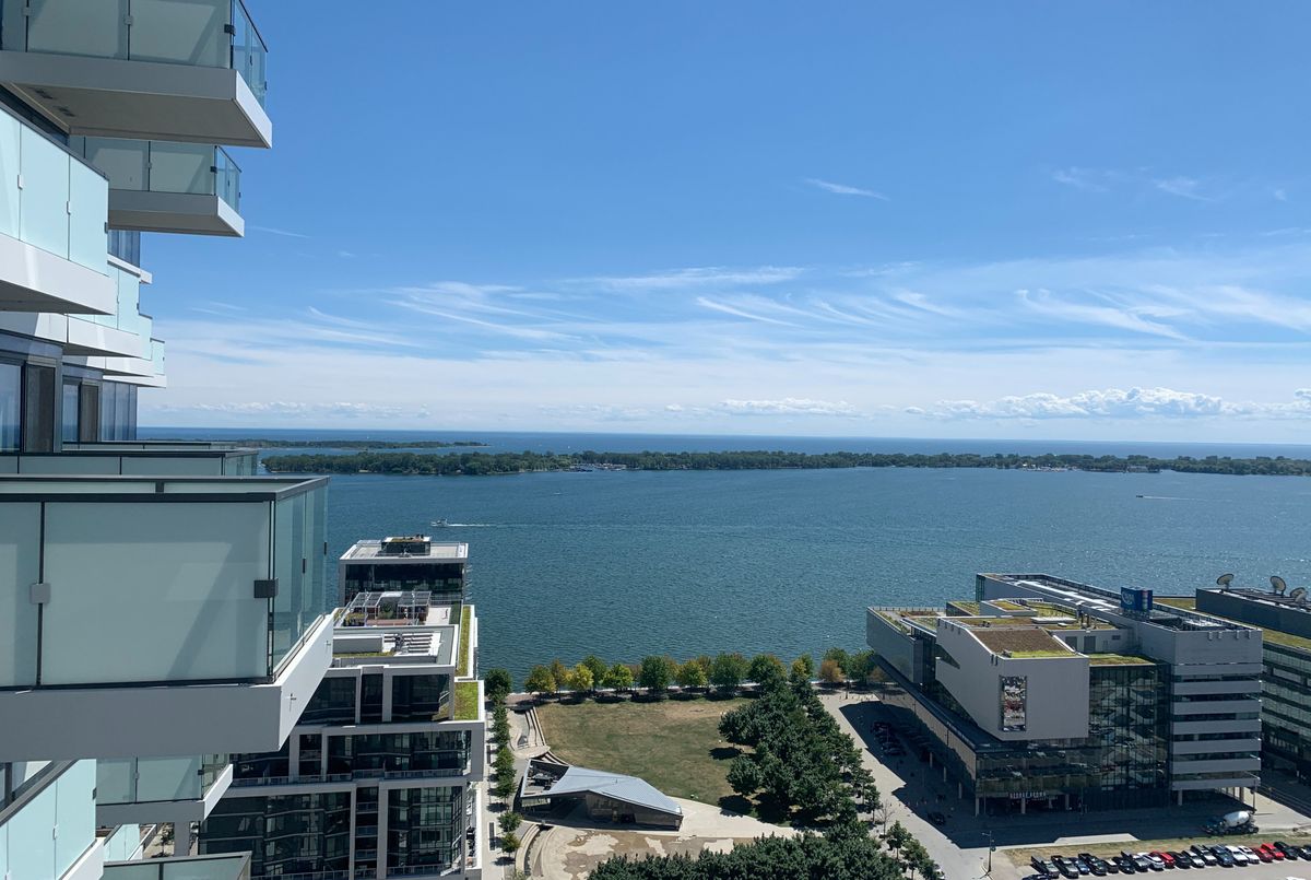 Immaculate unit in an award-winning green living building! This stunning condo sides onto a beautiful park and is just steps from the lake. Enjoy a free shuttle to Union Station and 24/7 concierge service. Exceptional 10th-floor amenities include yoga and weight studios, hot plunge pool, his and hers saunas and steam rooms, dining bar/lounge, indoor/outdoor fireplaces, billiards room, cabana deck, infinity pool, guest suite, and more. Featuring high-end finishes, 9' smooth ceilings, wraparound windows, and a walk-out balcony with breathtaking views of the lake, park, and downtown skyline. Den can be used as a second bedroom. Approximately 677 sq. ft. + 59 sq. ft. balcony. The unit is listed at $2,700 without parking and $2,850 with parking.