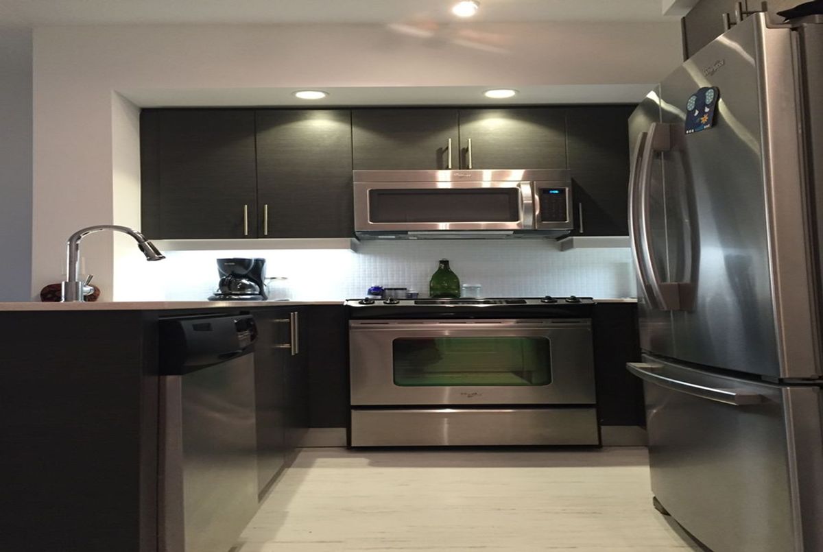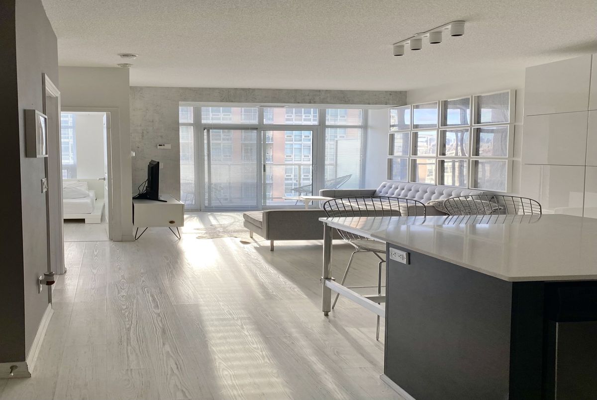 Luxury Living in Liberty Village! Experience upscale downtown living at King West Plaza Corp located in one of Toronto's most vibrant and connected communities. This bright and spacious 1 bedroom, 1 bath suite offers a functional open-concept layout with no wasted space, high end finishes and a private locker for added convenience. The unit is filled with natural light and features stunning views of both the city skyline and Lake Ontario from its quiet courtyard-facing balcony - the perfect balance of energy and tranquility. Enjoy access to an impressive range of amenities including an indoor pool, hot tub, sauna, state-of-the-art gym, games room, theatre, badminton court, virtual golf, bowling lanes, party room, rooftop deck, guest suites, 24 hr. concierge and plenty of visitor parking. Unbeatable location situated in the heart of Liberty Village, this condo is just steps from trendy cafes, boutique shops, restaurants, grocery stores, parks and the waterfront. Convenient access to TTC, Go transit, King West, BMO field, Exhibition place and the Gardiner Expressway make commuting and exploring the city effortless. Ideal for professionals seeking a modern, stylish and well-connected lifestyle in one of Toronto's most desirable neighborhoods.