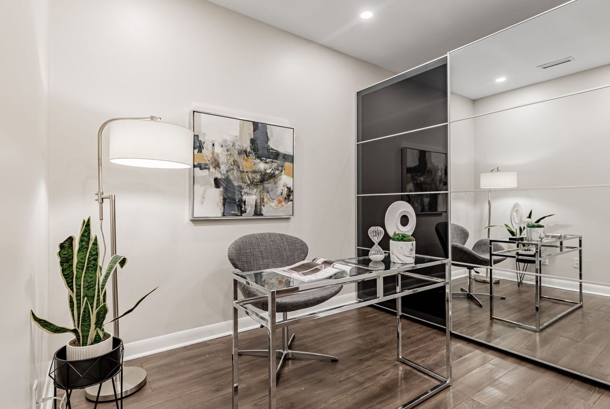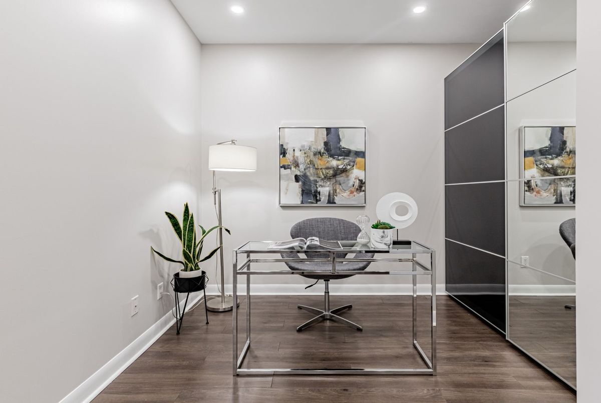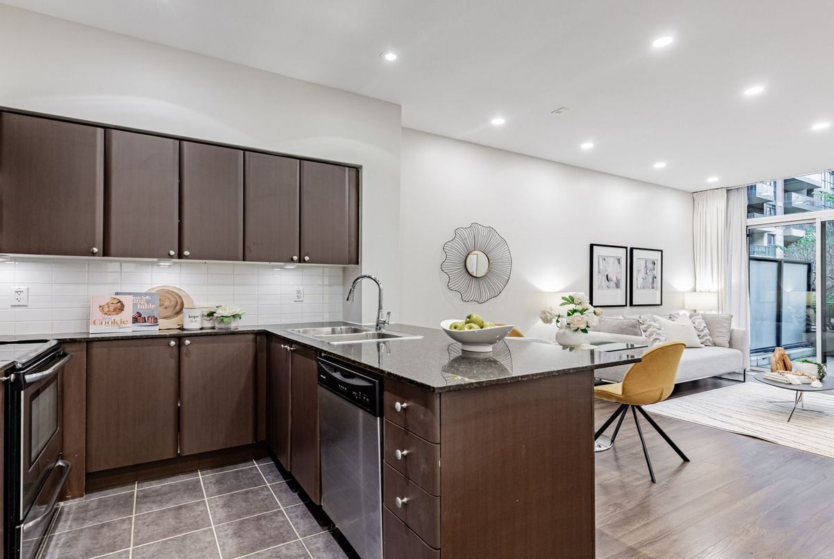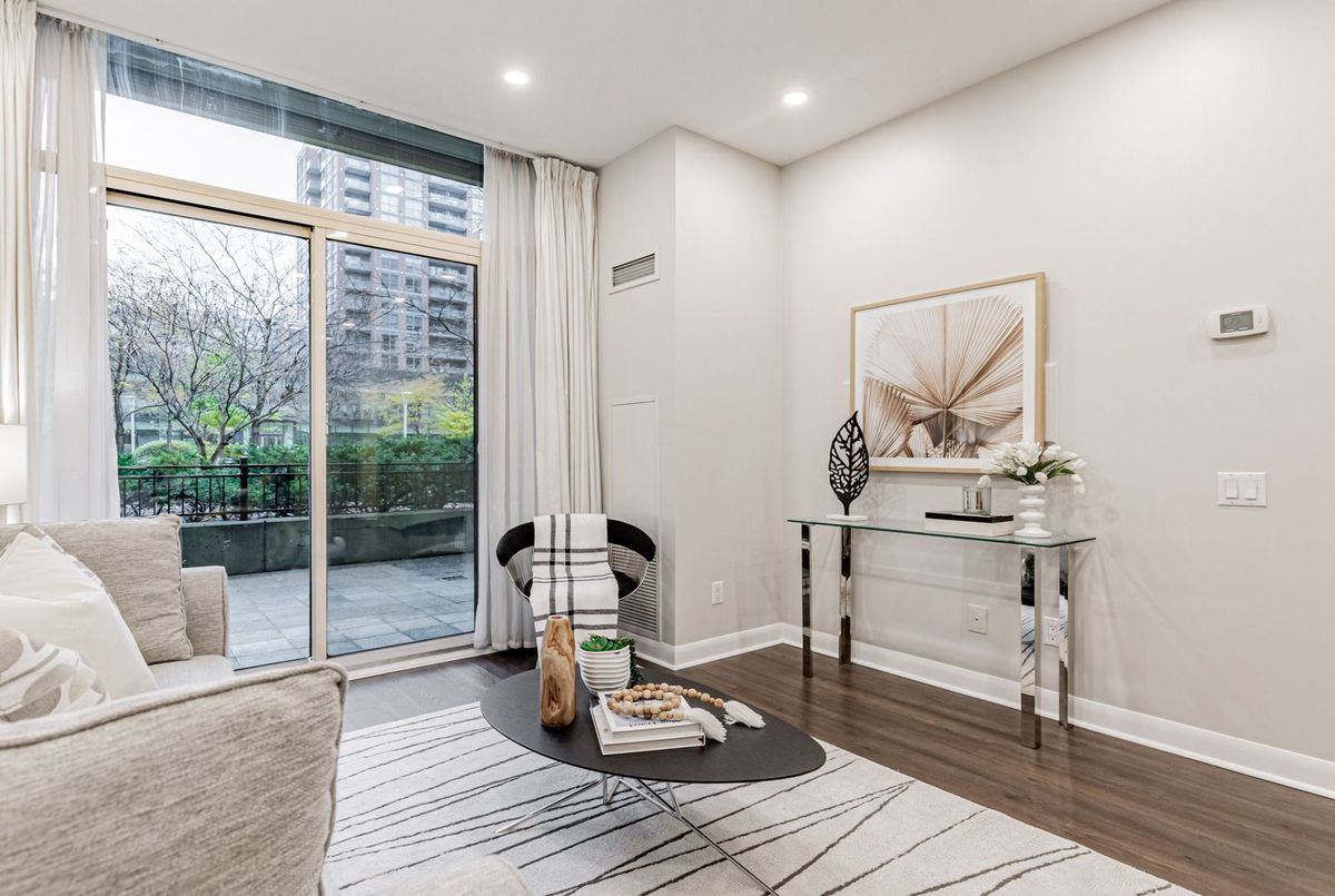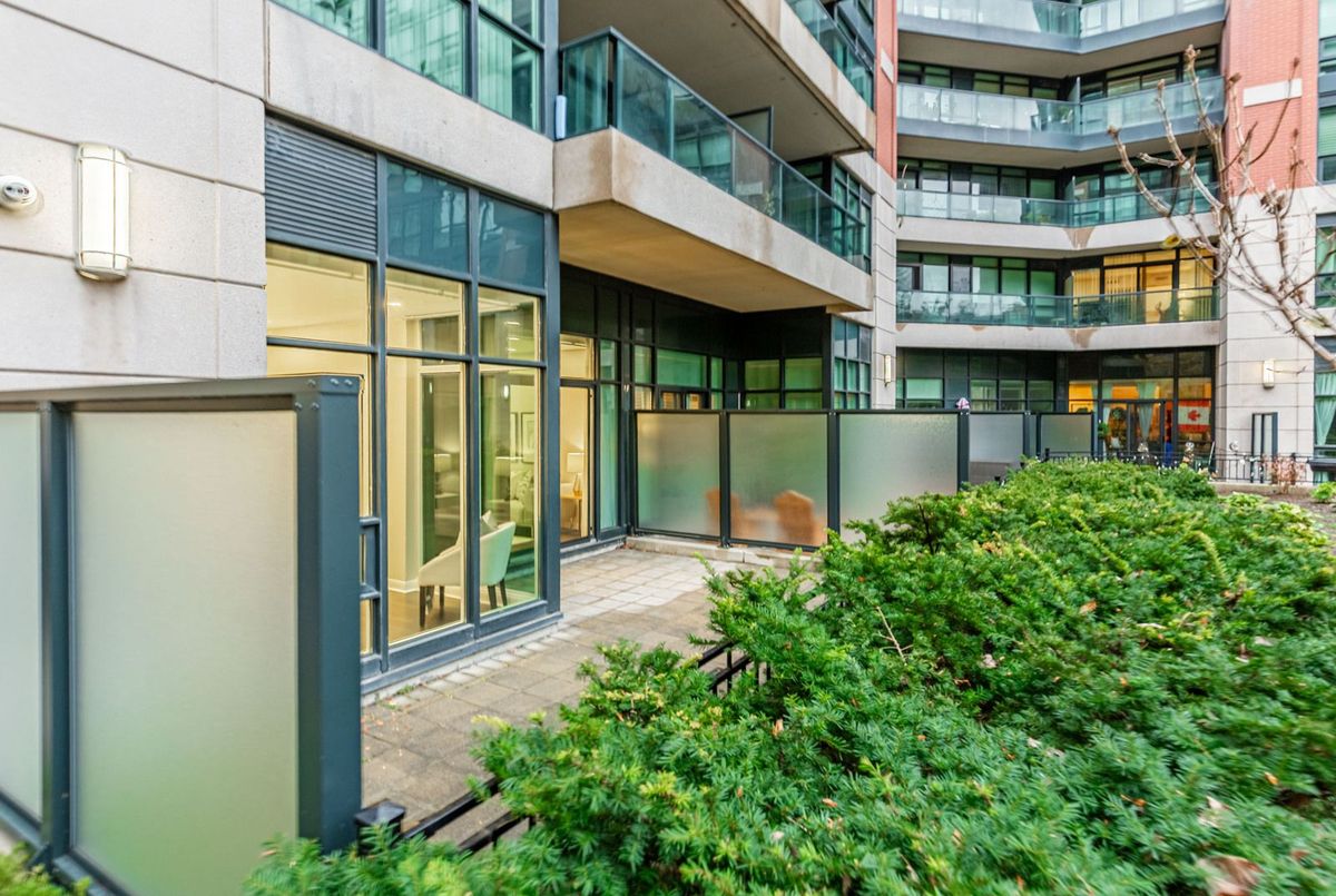 Welcome to the Gramercy Park Lifestyle, just steps away from Wilson Subway Station. This unique 1 Bedroom + Large Den + a coveted, expansive Terrace unit on the ground floor is a rare gem. The unit is spacious & bright with a very functional layout and no wasted space. (Unit ~659 sqft + Terrace / Patio ~220 sqft). The very usable terrace overlooks a private & serene courtyard/ gardens and is perfect for entertaining guests outdoors. This unit is located in the quieter part of the building, with easy access to Wilson Ave and transit without needing to use an elevator or to exit through the lobby. The soaring 9 feet ceilings, large glass doors / windows and the coveted south exposure floods the unit with natural light! The primary bedroom has ample storage, more floor to ceiling windows and enough space for a large bed + office desk. The den can be a dedicated office space or it can do double duty as a guest bedroom with a double bed. The kitchen has a lot of cabinet space for storage, full size Stainless Steel Appliances, a Granite Countertop and a space saving Breakfast Bar. This turnkey unit is freshly painted and comes with pot lights galore! Gramercy Park is served by multiple bus routes, the subway and is just minutes from Yorkdale, Costco and lots more shopping along with easy access to Hwy 401 and Allen Rd.