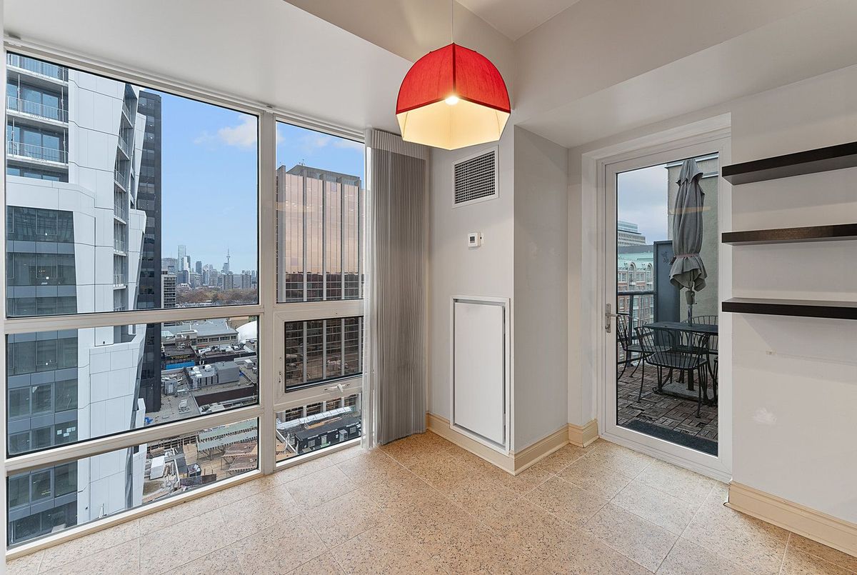 Experience elevated urban living in this expansive 1,500 sq. ft. suite, perfectly positioned in the prestigious Yonge & St Clair neighborhood. Flooded with natural light from southeast exposures, the home's soaring ceilings create a bright, airy ambiance throughout. Enjoy the rare luxury of two private balconies with unobstructed views-ideal for relaxation or entertaining. The sophisticated layout includes a split two-bedroom plan with two full bathrooms and an elegant eat-in kitchen. Beyond the suite, this prime location offers immediate access to top-rated schools, boutique shops, and premier city amenities, all just steps from major transit routes and key thoroughfares. Parking is included, completing a truly refined urban lifestyle