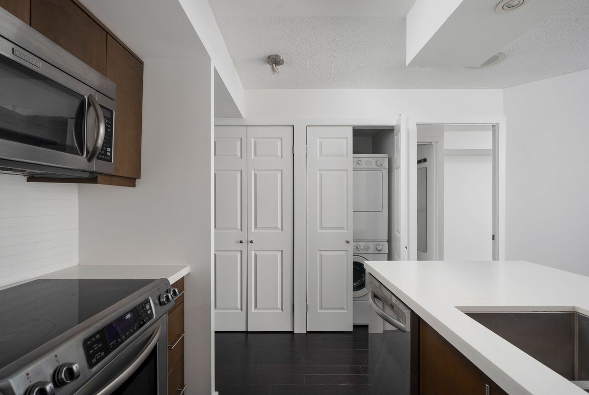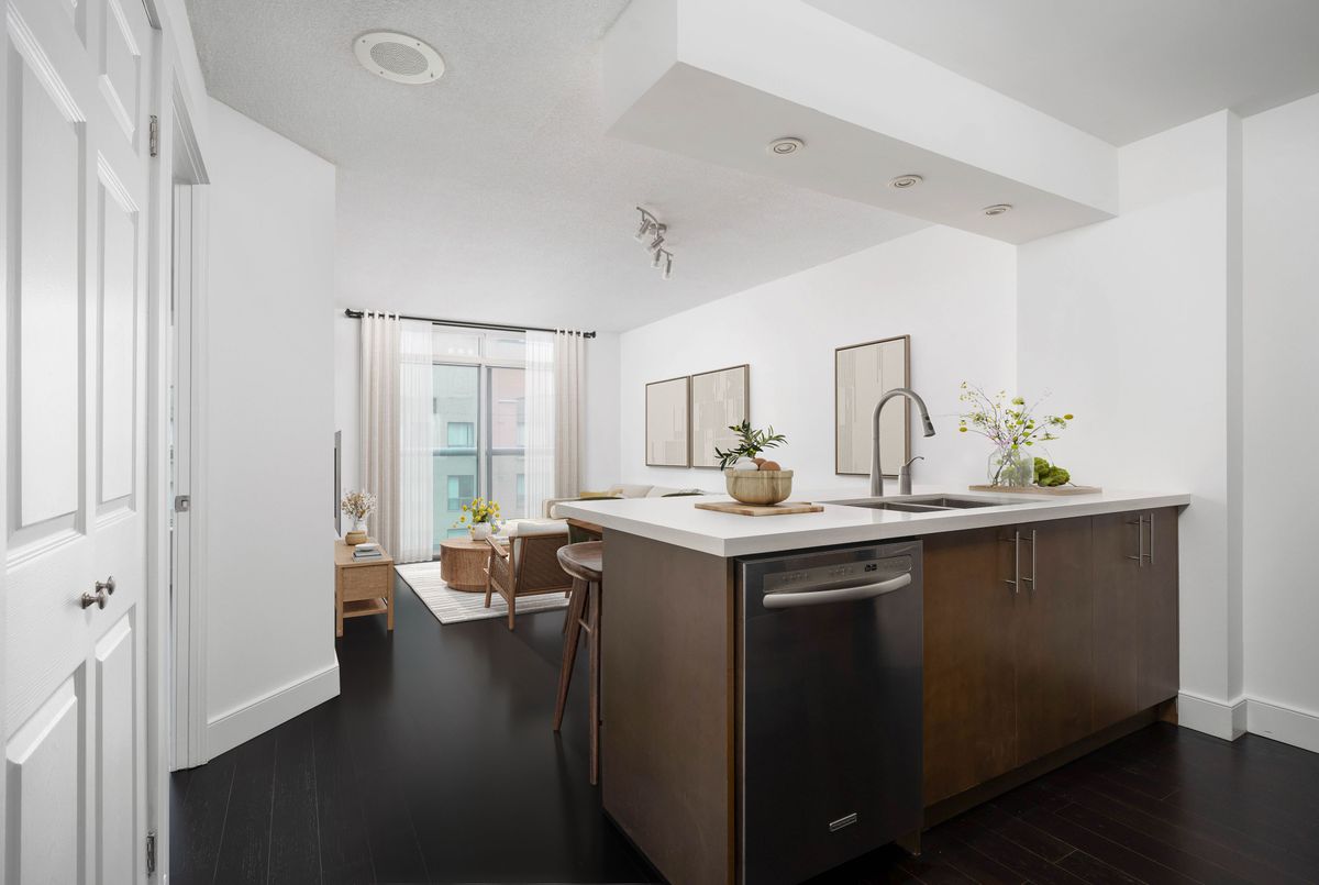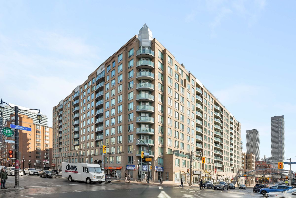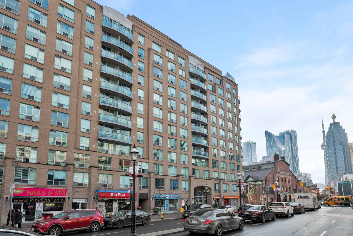 A one-bedroom plus den that punches above its weight class! Apartment 1023 is St. Lawrence Market living with the training wheels off. A functional floor plan that knows weekdays from weekends, designed for the way people actually live & work today. Over 620+ square feet that knows precisely what to do with itself, including a Juliette balcony for that quick hit of fresh air, a walk-in closet that earns the title, rich flooring, en-suite laundry, extra storage, clean, effortless lines and light, airy walls in crisp gallery white. Not to mention, an updated kitchen that gets it. A peninsula built for chopping, chatting and late-night leftovers. Full-sized appliances, a real dishwasher (no Betty Crocker easy-bake ovens here) and a double sink prepped for anything. Ready on day one, ripe for personality on day two. Wallpaper, custom millwork and a statement light? Go for it. The building sets the tone (and it's a good one). All-inclusive maintenance fees are $488 per month. A rooftop terrace built for summer evenings & BBQs. A community that shows up, with frequent social events and a friendly, familiar feel. We all know that the location does the heavy lifting. Steps from St. Lawrence Market. Transit at the door. Restaurants, cafés & gym options in every direction. Berczy Park for your morning reset. Sugar Beach for your weekend unwind. Market Street for long summer lunches & your holiday strolls. George Brown College is around the corner for baking classes on a whim and a short commute on foot to the Financial District, Scotiabank Arena & Rogers Centre. A downtown space that delivers. Practical. Thoughtful. Zero fluff. Just the kind of home that keeps Toronto feeling easy. Settle in fast. Brag about it often.