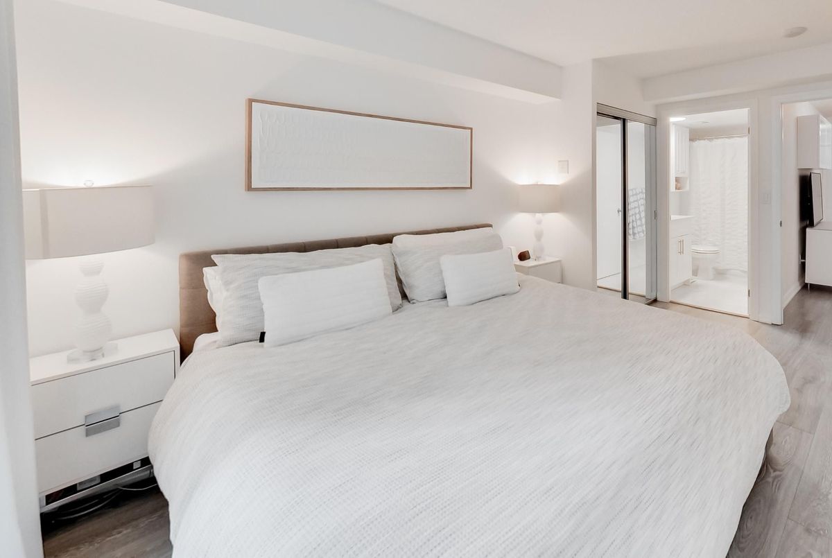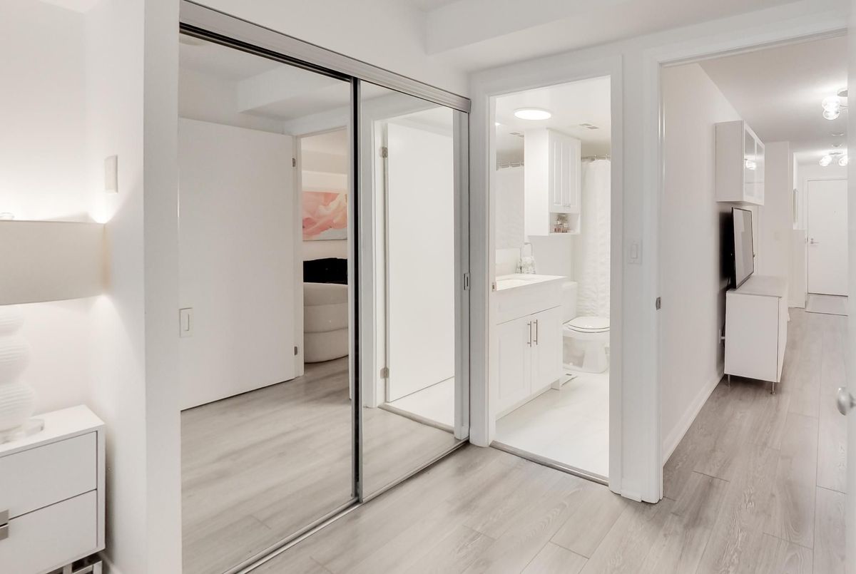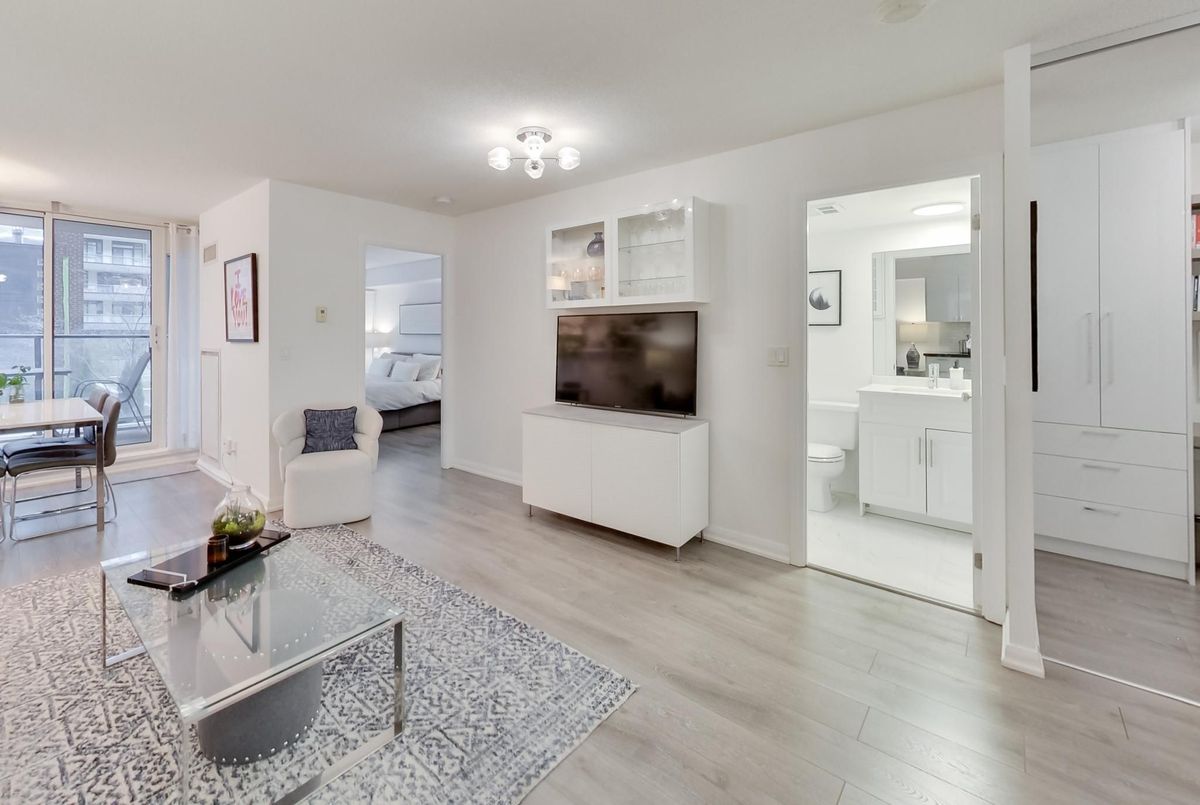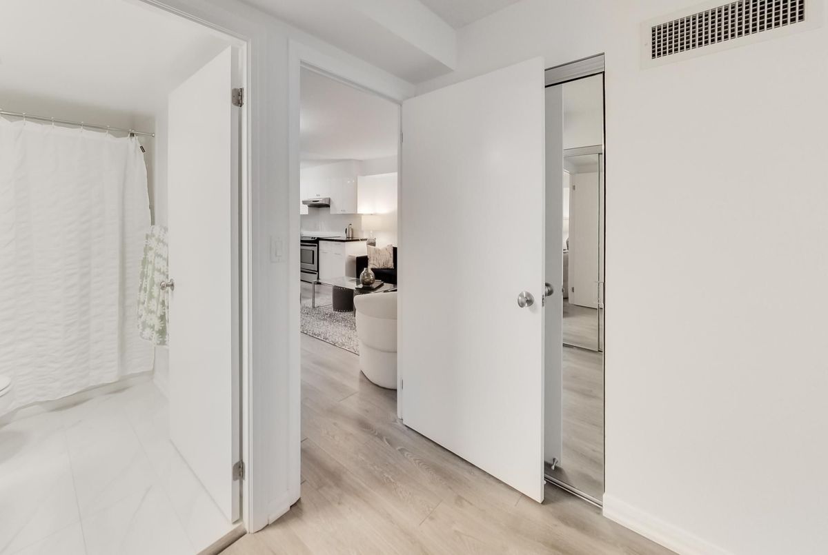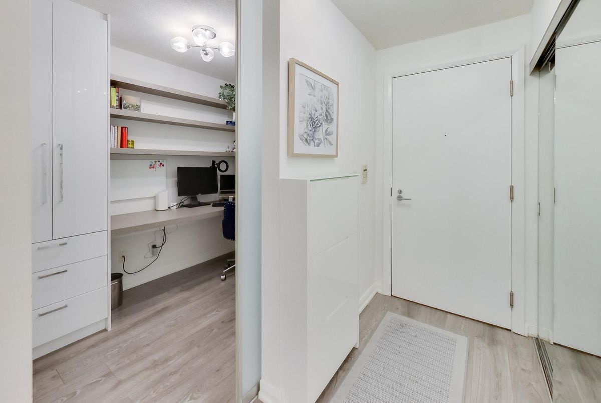 Discover the perfect blend of style and convenience in this renovated and spacious 1 bed + den, 2 bath unit offering an exceptional living experience in downtown Toronto. The bright and airy open-concept living space features floor-to-ceiling windows that fill the home with natural light, while the modern laminate hardwood flooring and sleek finishes add a touch of sophistication. The kitchen, equipped with stainless steel appliances and plenty of storage, is perfect for culinary enthusiasts and casual cooks alike. Overlooking the balcony, the primary bedroom has an ensuite bathroom, and two closets with organizers. The den provides an ideal space for a home office with built-in storage. One City Hall Place, offers an array of amenities including a gym, indoor pool, billiards room, party room, guest suites, concierge, and a rooftop patio. You'll be just steps away from shops, restaurants, breweries and some of Toronto's top attractions. With easy access to the Gardiner Expressway and TTC everything you need is within reach.