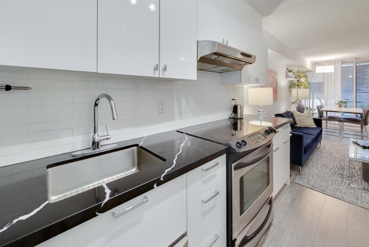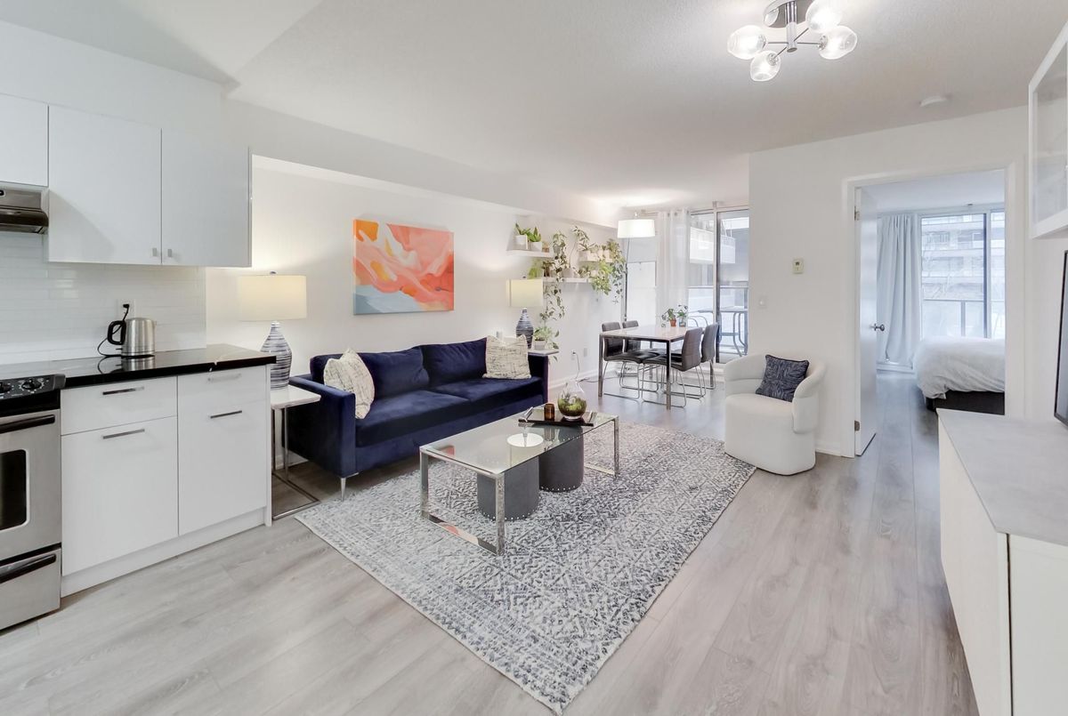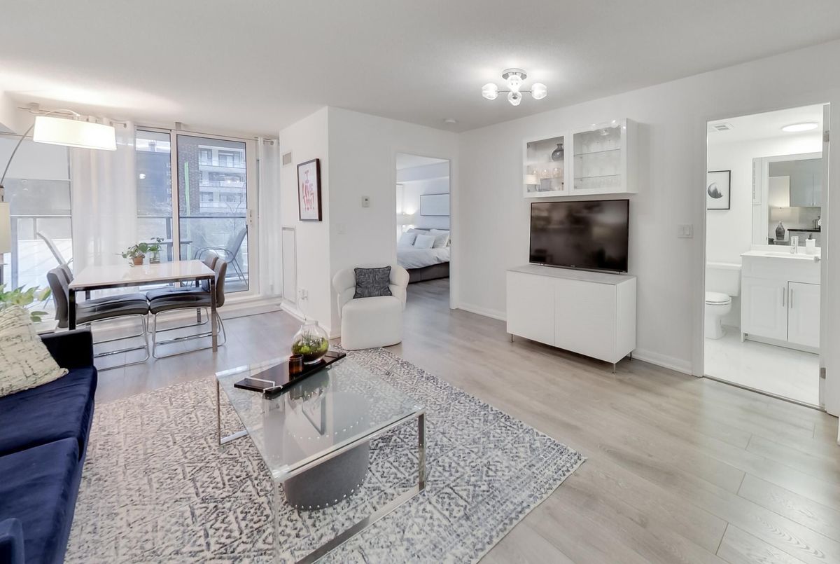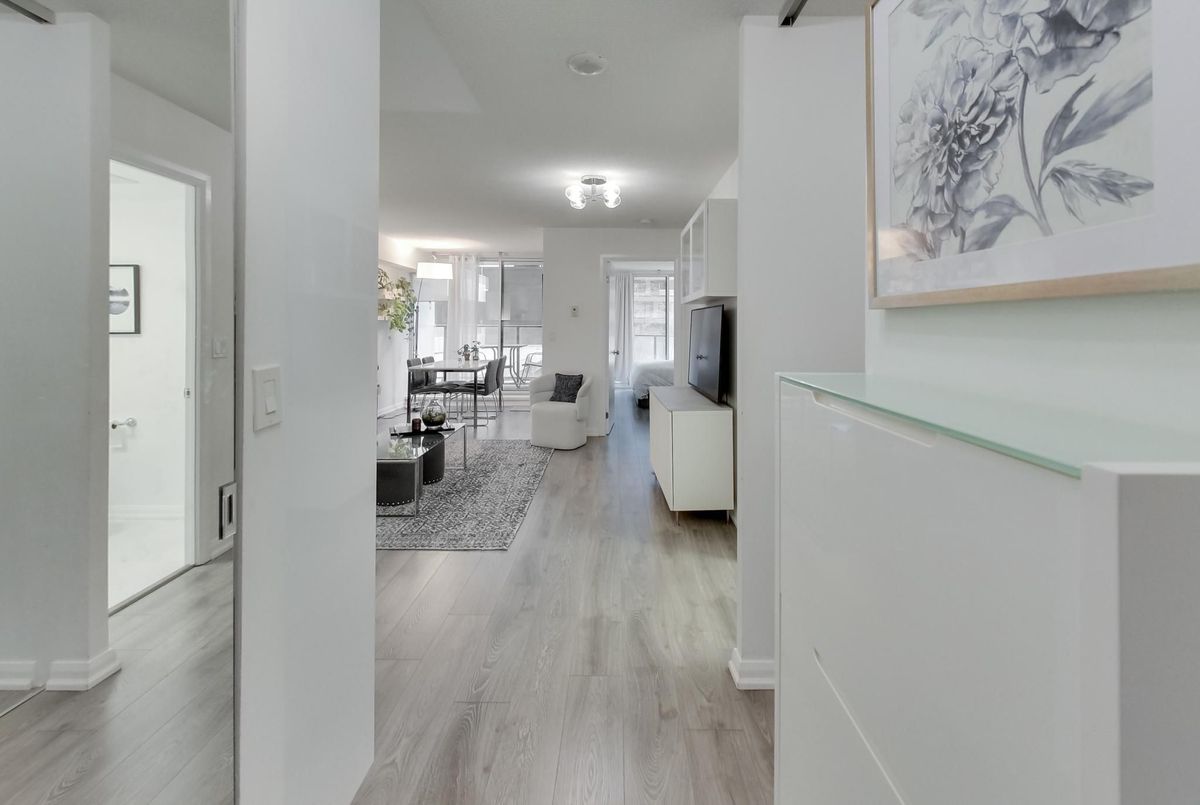 Discover the perfect blend of style and convenience in this renovated and spacious 1 bed + den, 2 bath unit offering an exceptional living experience in downtown Toronto. The bright and airy open-concept living space features floor-to-ceiling windows that fill the home with natural light, while the modern laminate hardwood flooring and sleek finishes add a touch of sophistication. The kitchen, equipped with stainless steel appliances and plenty of storage, is perfect for culinary enthusiasts and casual cooks alike. Overlooking the balcony, the primary bedroom has an ensuite bathroom, and two closets with organizers. The den provides an ideal space for a home office with built-in storage. One City Hall Place, offers an array of amenities including a gym, indoor pool, billiards room, party room, guest suites, concierge, and a rooftop patio. You'll be just steps away from shops, restaurants, breweries and some of Toronto's top attractions. With easy access to the Gardiner Expressway and TTC everything you need is within reach.