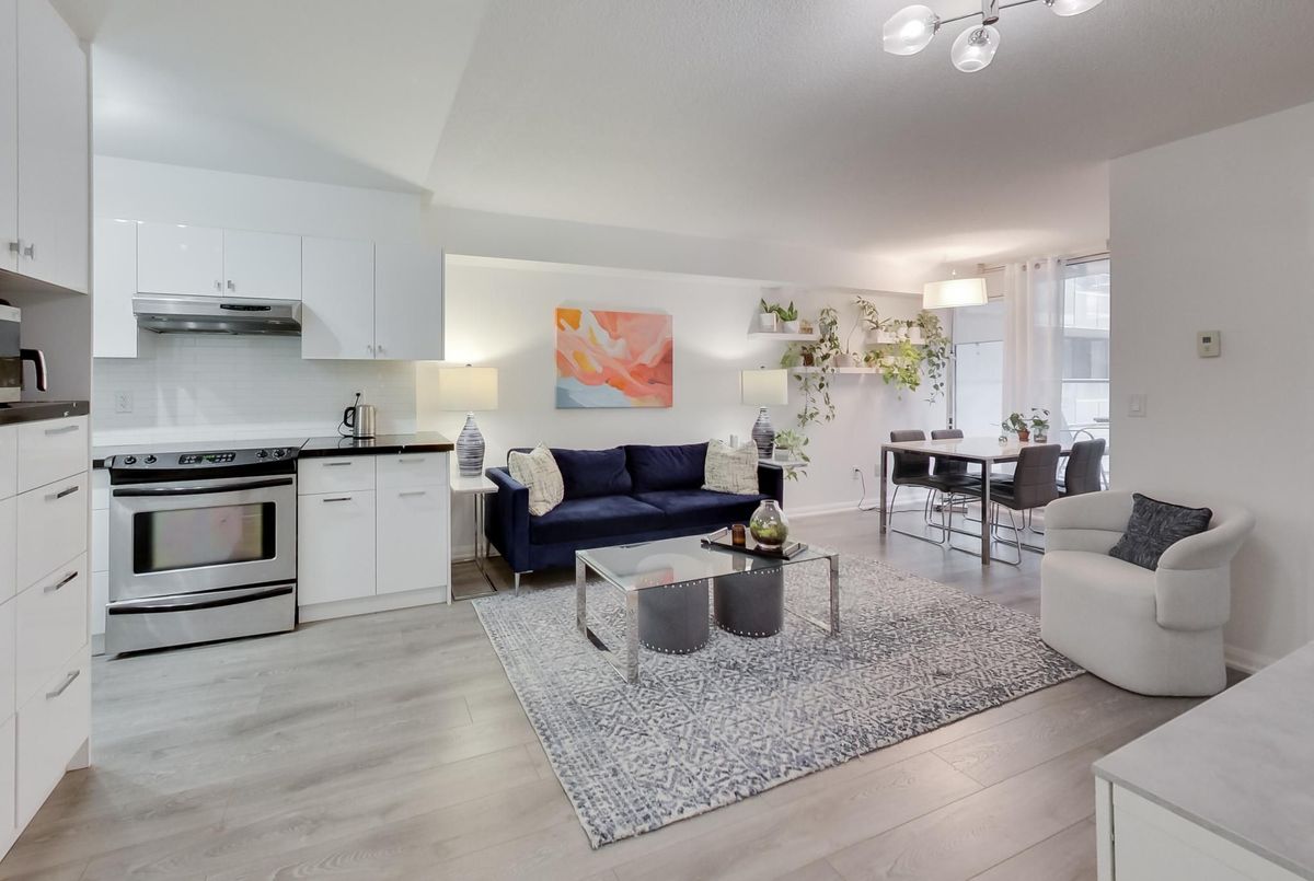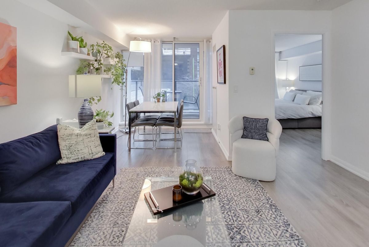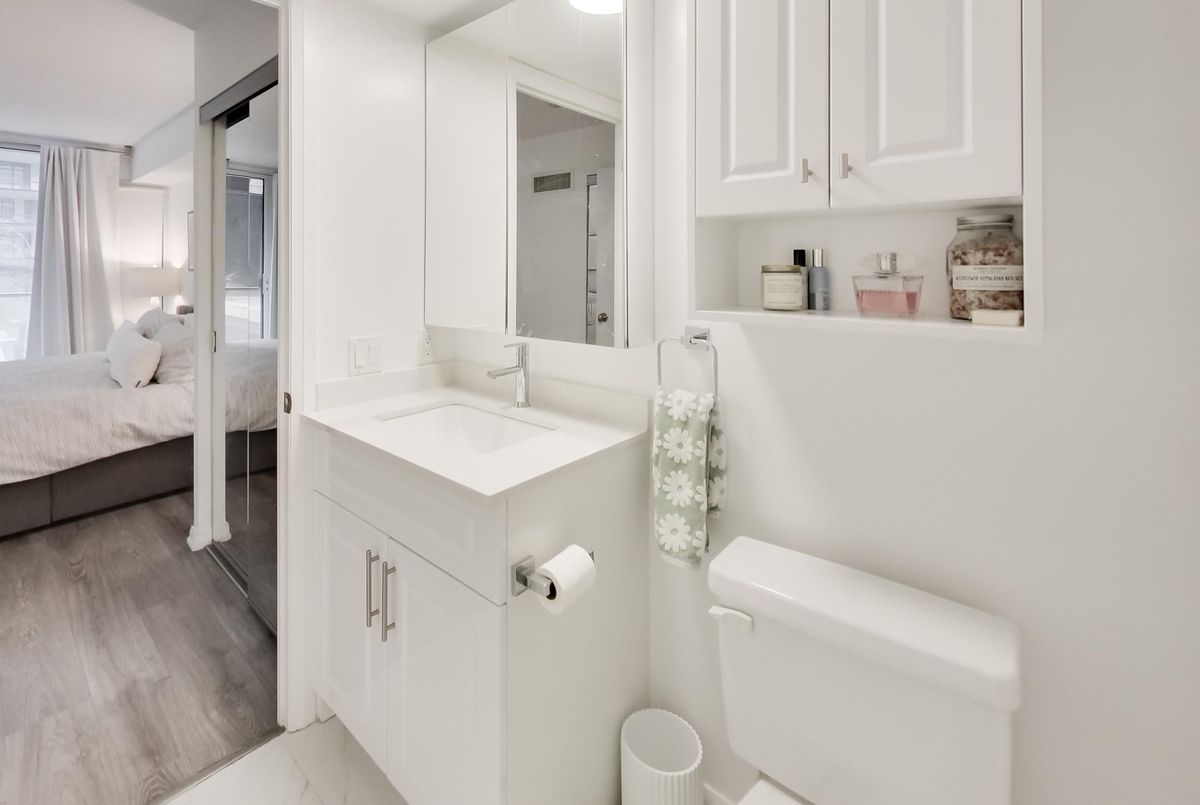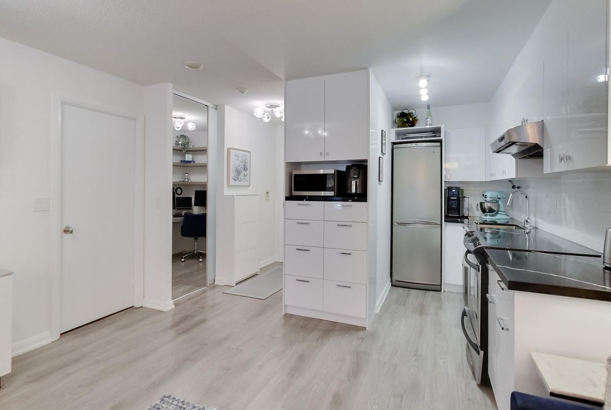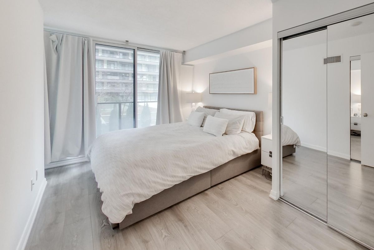 Discover the perfect blend of style and convenience in this renovated and spacious 1 bed + den, 2 bath unit offering an exceptional living experience in downtown Toronto. The bright and airy open-concept living space features floor-to-ceiling windows that fill the home with natural light, while the modern laminate hardwood flooring and sleek finishes add a touch of sophistication. The kitchen, equipped with stainless steel appliances and plenty of storage, is perfect for culinary enthusiasts and casual cooks alike. Overlooking the balcony, the primary bedroom has an ensuite bathroom, and two closets with organizers. The den provides an ideal space for a home office with built-in storage. One City Hall Place, offers an array of amenities including a gym, indoor pool, billiards room, party room, guest suites, concierge, and a rooftop patio. You'll be just steps away from shops, restaurants, breweries and some of Toronto's top attractions. With easy access to the Gardiner Expressway and TTC everything you need is within reach.