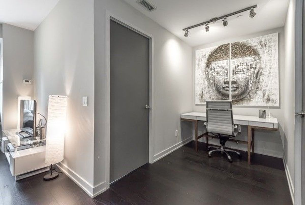 Live in the vibrant King West/Liberty Village community at the highly sought-after DNA3! This stylish, modern 1+1 offers an open-concept layout with soaring 9' ceilings, sleek kitchen, and spacious den that can function as a 2nd bedroom or home office. Thoughtful upgrades throughout, including designer light fixtures and custom bathroom closet space. Enjoy a large northeast-facing balcony perfect for morning coffee. Locker conveniently located on the same level. Steps to TTC, CityMarket grocery, Tim Hortons, TD, Starbucks, dining, parks, and all the energy of downtown living. Ready to move in and enjoy! Unit will be painted and cleaned before closing! Premium Amenities Inc. 24Hr Concrg, Rain Rm, Exercise Rm, Party Rm, Yoga Studio, Lbry/Stdy And Theatre Rm. Old Pictures just for reference purpose only.