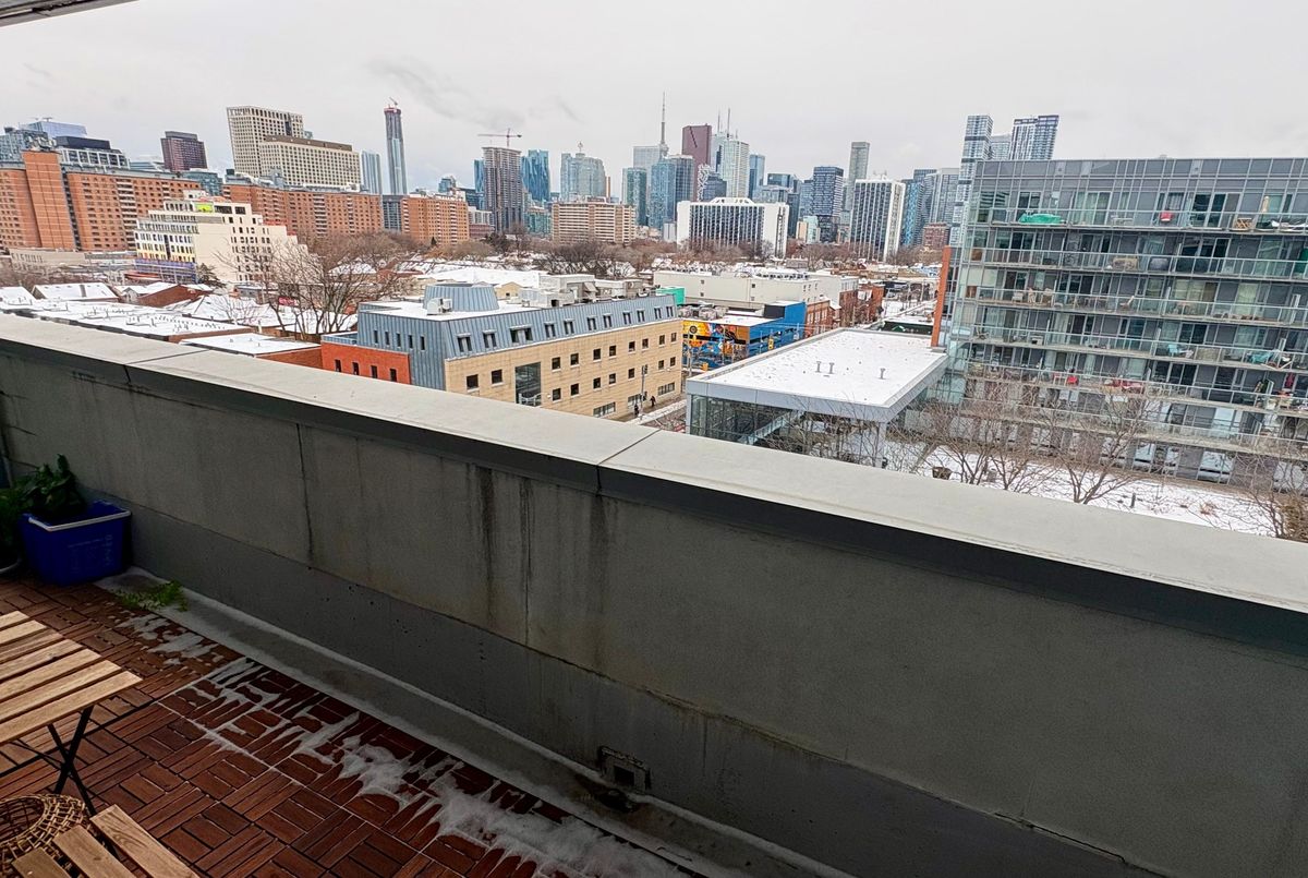 Bright and modern 1+1 unit with a parking and a locker. A great open unobstructed view of the city. Located in a well-known building with a strong owner presence, the unit features a smart and spacious layout and a functional den that works well as a home office. The balcony runs from the living room to the main bedroom, giving you lots of outdoor space to enjoy. Everything you need is close by-transit, gyms, grocery stores, schools, Eaton Centre, and plenty of restaurants and coffee shops. Freshco is even in the same building, so grabbing food is only a few steps away. The building has nice amenities, including a lounge, party room, and a 3rd-floor BBQ garden for gatherings with friends or family.