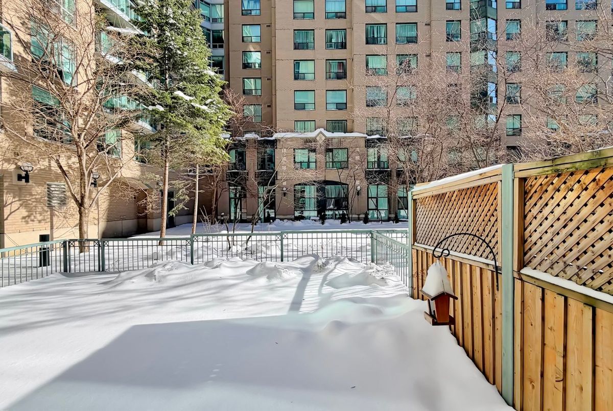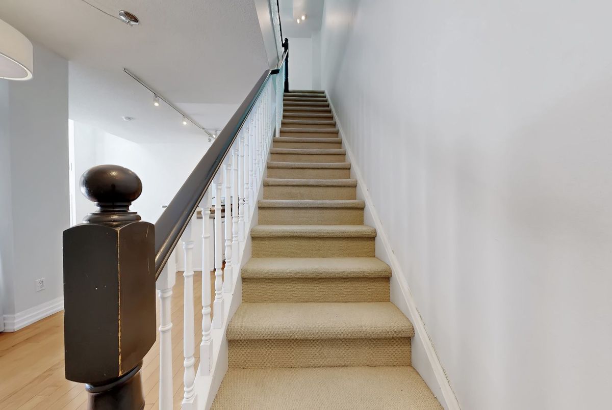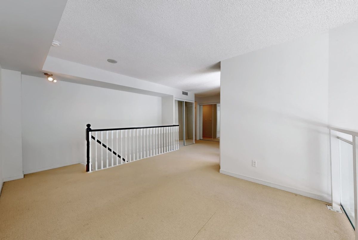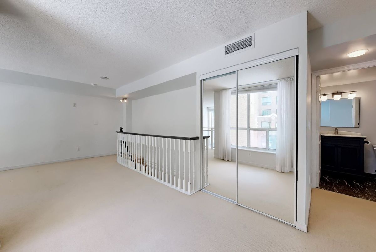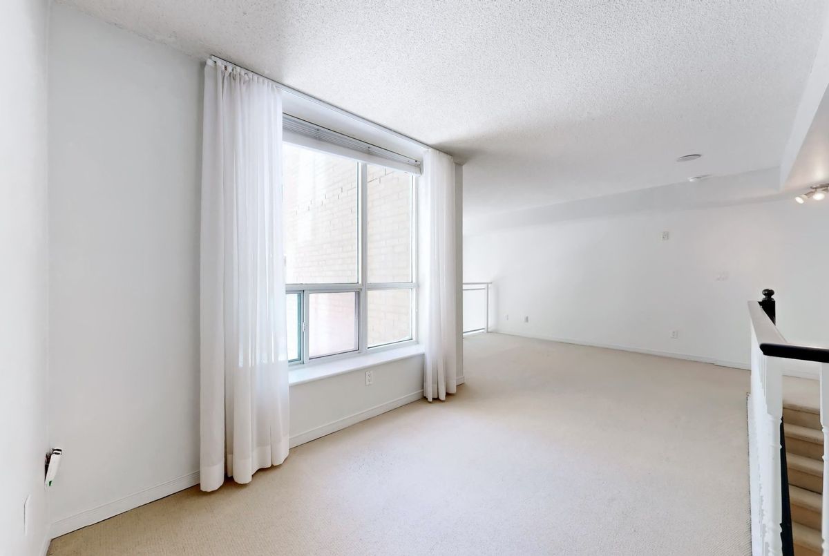 St. Lawrence Market Neighbourhood! Discover a rare two-level townhome (837 sq.ft) that offers a unique loft-like feel with two walkouts to a spacious private patio (539 sq.ft-BBQ allowed), a bright living area with 19 ft ceilings and floor-to-ceiling windows, a separate dining space and a built-in desk for a home office, ideally located across from St. Lawrence Market and minutes from the financial district and Union Station. With lots of windows, the interior offers lots of natural light. The kitchen is open concept with a breakfast bar, while the main floor features hardwood floors. The second floor includes a spacious bedroom, which will easily accommodate a king-sized bed plus space for a home office, two closets plus an ensuite washroom. Amenities include a concierge, gym, party room and stunning rooftop gardens with barbecues. Steps to local restaurants, cafes, shops and more. Easy access to the Gardiner Expressway and DVP. Walk score 100, transit 100, bike 98!