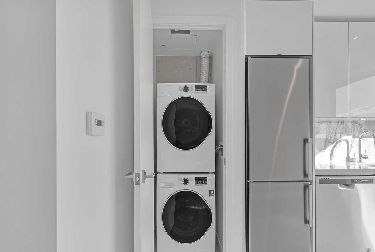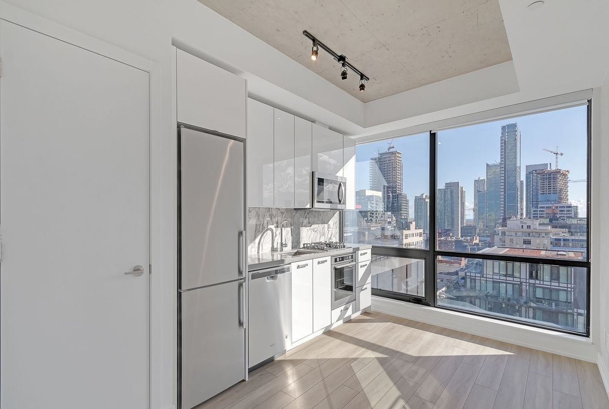 Extremely bright 1-bedroom unit available at The Woodsworth, located perfectly located in the heart of Toronto's lively Fashion District! South-facing floor-to-ceiling windows provide stunning views and allow this unit to bask in constant sunlight. Engineering wood floors throughout, 9' ceilings, exposed concrete ceilings, stainless steel appliances, custom backsplash/kitchen cabinetry, soaker tub, en suite washer/dryer and a gas stove complement this great layout. 1 locker included. Well-managed building features a gym, party room and is located steps to trendy restaurants, stylish boutiques, art galleries, and entertainment just steps from your door. Enjoy easy access to Queen West, King West, the Entertainment District, and Toronto's thriving tech and creative hubs, making this an ideal location for professionals and city lovers alike. ...