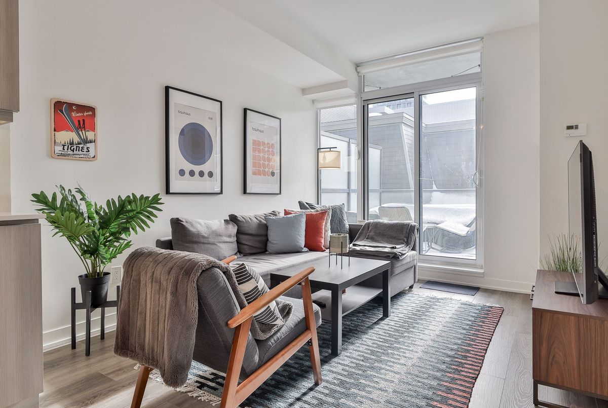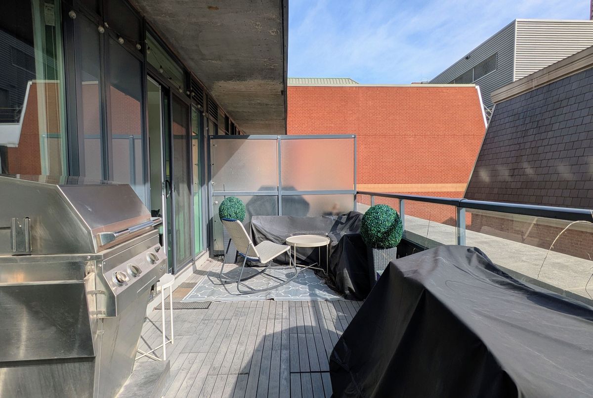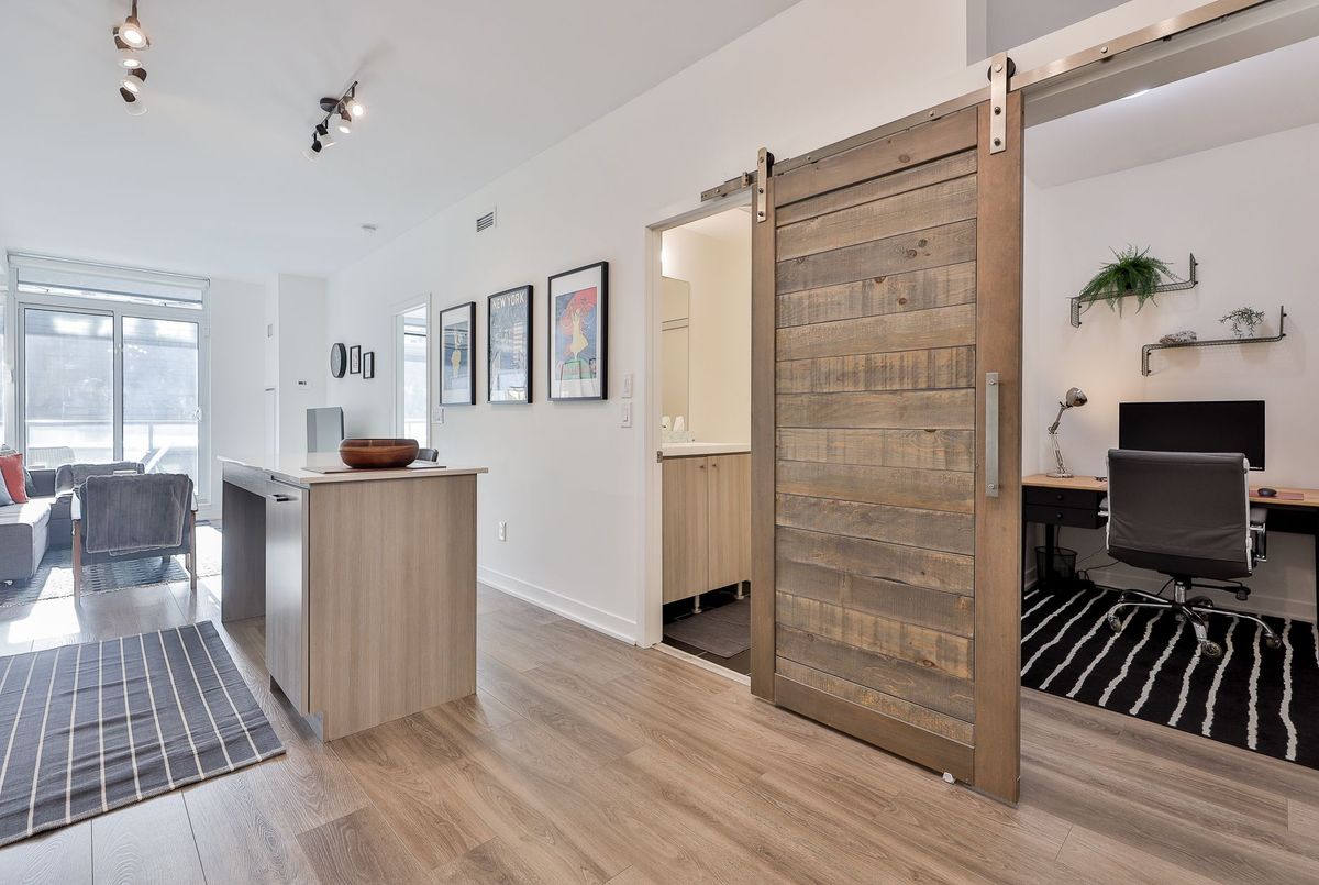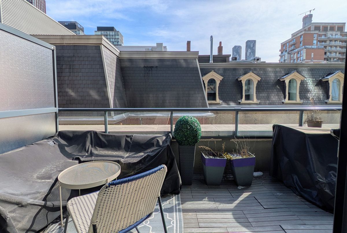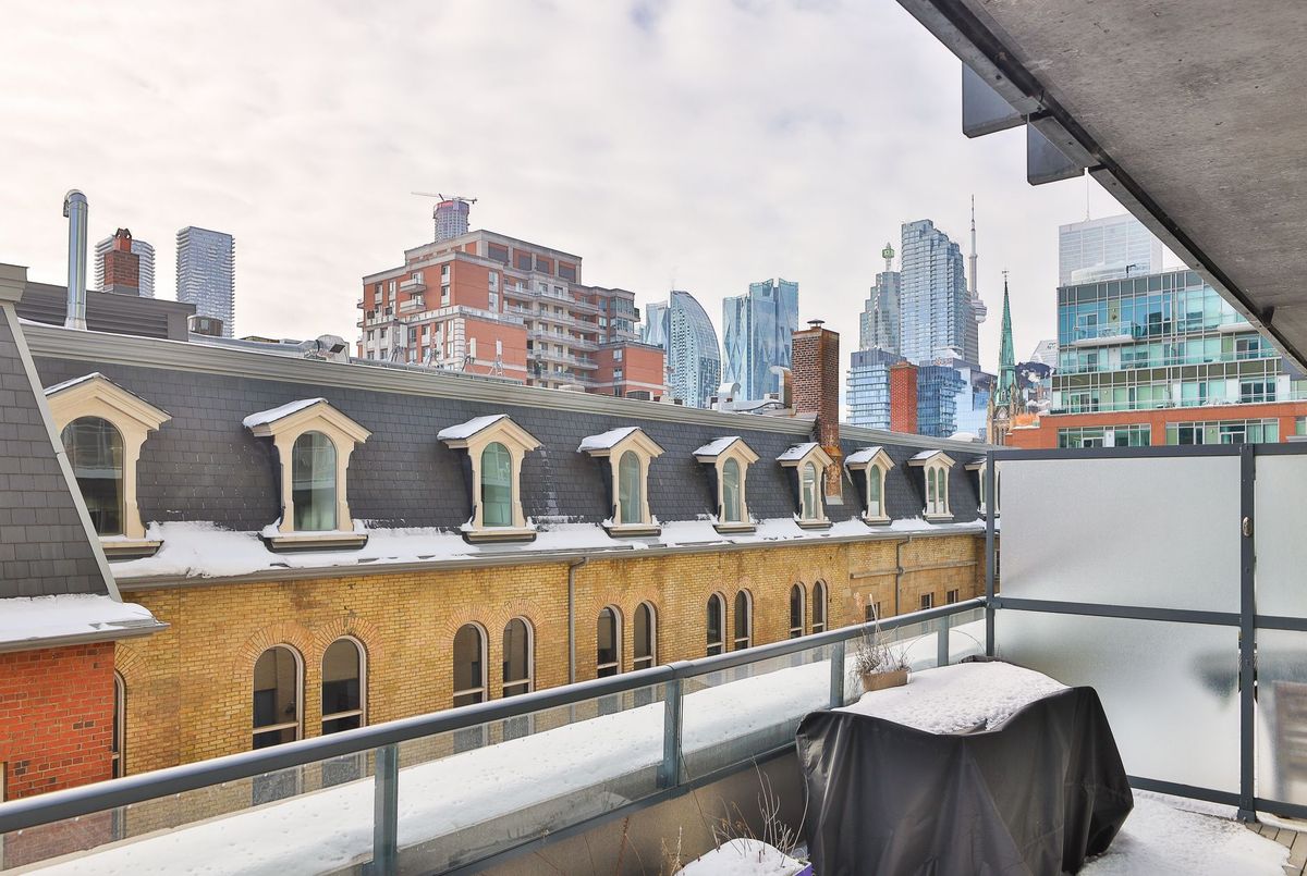 Welcome to Post House Condos! This spacious 1 bedroom plus den suite with a 200 sq ft private terrace nestled behind Toronto's First Post Office, literally three blocks from St Lawrence Market has everything you could ask for - 9' ceilings, a bright spacious living area that comfortably fits real furniture, a slick kitchen with quartz counters, tons of tall cabinets, a centre island, and stainless steel appliances, a true bedroom that easily fits a queen-size bed with a private ensuite bathroom, a cozy den perfect for those work-from-home days with a sliding barn door for extra privacy, custom closet built-ins throughout, a bonus power room just for guests... And the best part? A nearly 200 sq ft South-facing private terrace complete with gas line for a BBQ overlooking a private courtyard! **All that plus a parking spot, a great sized locker for all your stuff, and a your own dedicated bike rack!** Fantastic building with great amenities - 24 hour concierge, gym, yoga studio, a sweet party room, billiard lounge, roof deck with BBQs, sauna, a guest suite, and visitor parking. And just a quick stroll to the Financial District, Eaton Centre, King or Queen station, Distillery District, St James Park mere steps away, King and Queen streetcars, and super easy access to the DVP and Gardiner. And walking distance to a new Ontario Line station. The East side is where it's at!