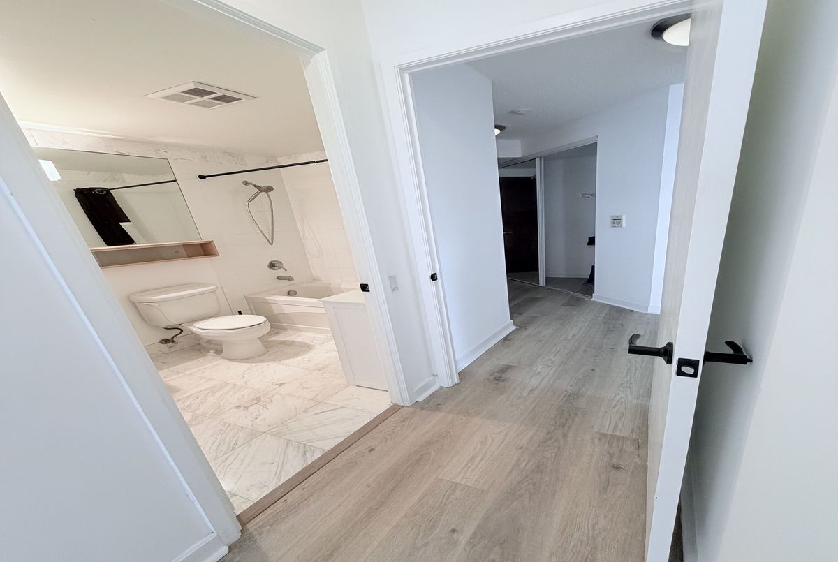 Located in the heart of Downtown Toronto's Fashion District, this 805 Square foot unit with 2 Bedrooms and 2 washrooms offers the ideal setup for a professional seeking a dedicated home office where everything around is at reach at your convenience. Enjoy an exceptional collection of amenities, including a fully equipped fitness centre, stylish media room, bicycle storage, and a rooftop patio with community BBQ perfect for entertaining or taking in the breathtaking city views. Includes one parking space and is walking distance to the Yonge and Bloor Subway Station. Recently renovated vinyl flooring throughout the unit making it carpet free. New Dishwasher and toilet recently installed.