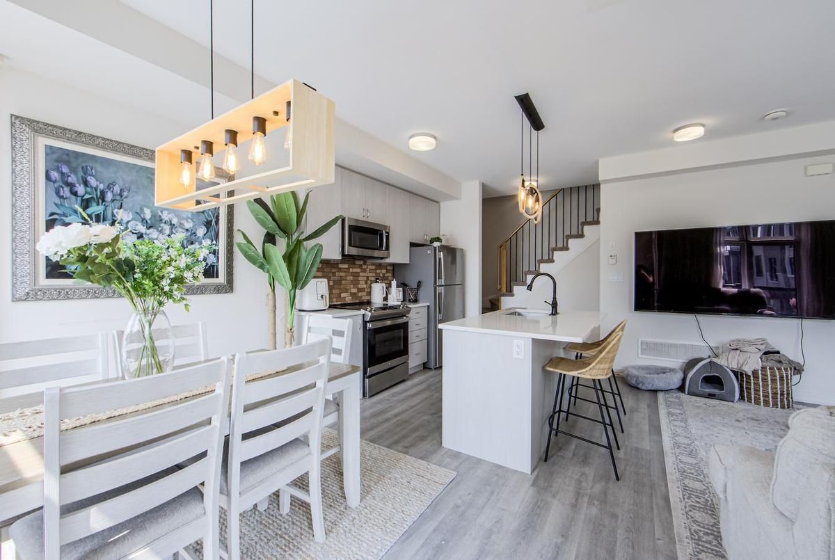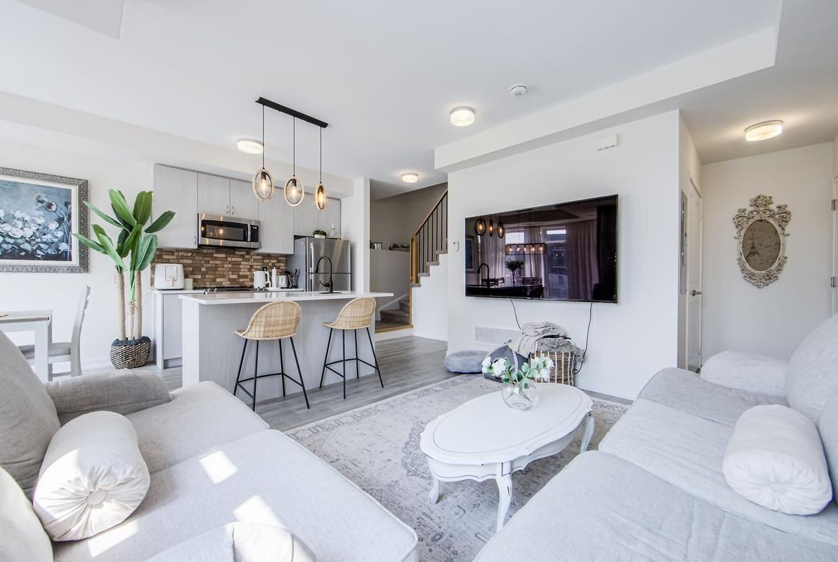 Welcome To This Stunning Condo Townhouse Located in North Pickering's Popular Duffin Heights Neighbourhood, Offering Modern Living With Exceptional Design And Convenience. This Home Features 2 Bedrooms & 2.5 Bathrooms The Main Floor Boasts A Spacious Living & Dining Room With A Walkout To A Charming Balcony, As Well As A Modern Kitchen With Sleek Finishes And Ample Storage Space. Upgraded Light Filled End Unit Townhome In The Desired Dufferin Heights Community. Spacious Two Level 1200 Sqft Modern Open Concept Layout. Kitchen With Stainless Steel Appliances And Center Island. Large Living Area With W/O To Balcony. Primary Bedroom With 4Pc Ensuite And W/I Closet. Second Bedroom With 3Pc Ensuite. One Owned Surface Parking. Mins To 401/407/Go Station, Shops, Restaurants, Golf Course & Parks!Located In A Fantastic Area, You'll Have Access To Several Excellent Shopping Centers, Including Pickering Mall, Pickering Village, And The Pickering Parkway Center. | Nature Enthusiasts Will Appreciate The Beautiful Surroundings, Such As The Greenwood Conservation Area & Duffins Bay. | Additionally, Residents Enjoy Convenient Access To The Pickering GO Station, Hwy 407 & Hwy 401, Which Are All Just Under 10 Minutes Away.