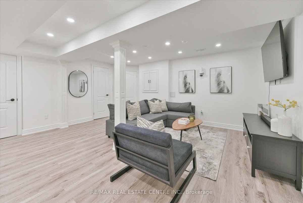 With Over 2200 Total Sqft This Gorgeous End Unit feels bigger than most Semis , $$$$ Spent In Top-To-Bottom Renovations,This Fully Updated, Move-In-Ready 3-Bedroom, 4-Bathroom Home Offers The Finest In Craftsmanship, Materials And Design. Featuring An Open-Concept Living And Dining Area With High Ceilings, Sleek Hardwood Floors,Large Windows, Natural Gas Double sided Fireplace, And The Dream Kitchen Has Built -InStainless Steel Oven, B/I S/S Dishwater (2023),Counter Top Stove,Stainless Steel Counter Depth Fridge ,Custom Cabinetry, Granite Counters, A Focal Granite Centre Island, Coffee/Wine Station, And Upgraded Lighting, Opens To A W/O Deck for your entertaining Connecting The Indoor And Outdoor Spaces.The Front and the Backyard has Professional Interlocking (2022),and A double Car Garage ,with 2 extra car parking on the driveway. Upstairs Offers A Luxurious Primary Retreat With Hardwood floors (2021) in all room, Harwood Stairs with upgraded spindles (2021). Walk-In Closet, And A Spacious, Spa-Inspired Ensuite Bathroom.The Grand Second Bedroom Boasts A Beautiful Window, Vaulted Ceiling. A newly professionally Finished Basement(2023) with provides additional space for your entertainment and Includes a 3 Pc Bathroom And Plenty Of Storage.Basement space can be used as an additional In- law suite .Truly a Spectacular home that your clients would like to call Home!!!! POTL fees includes Water,Snow Removal ,Garbage Removal and Maintenance of Common Areas -Grass cutting.