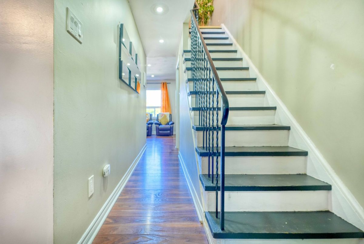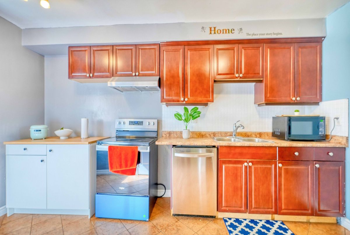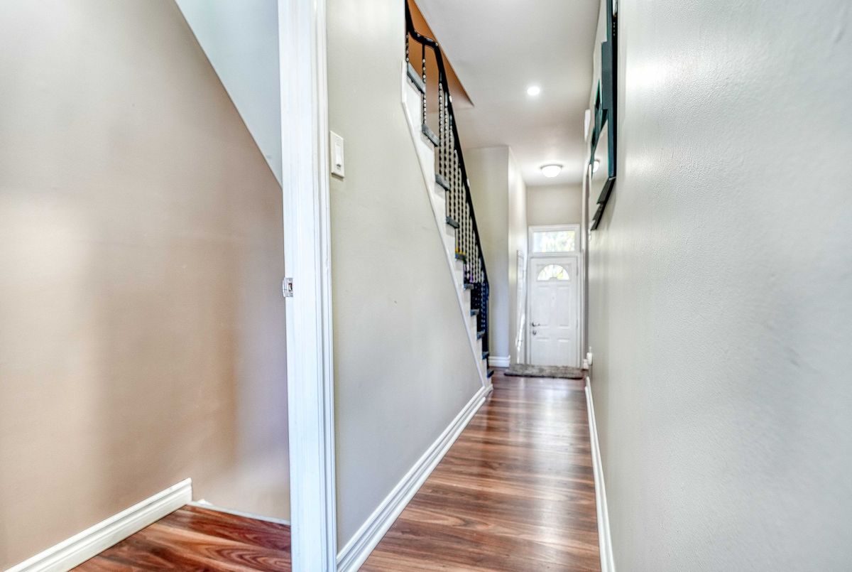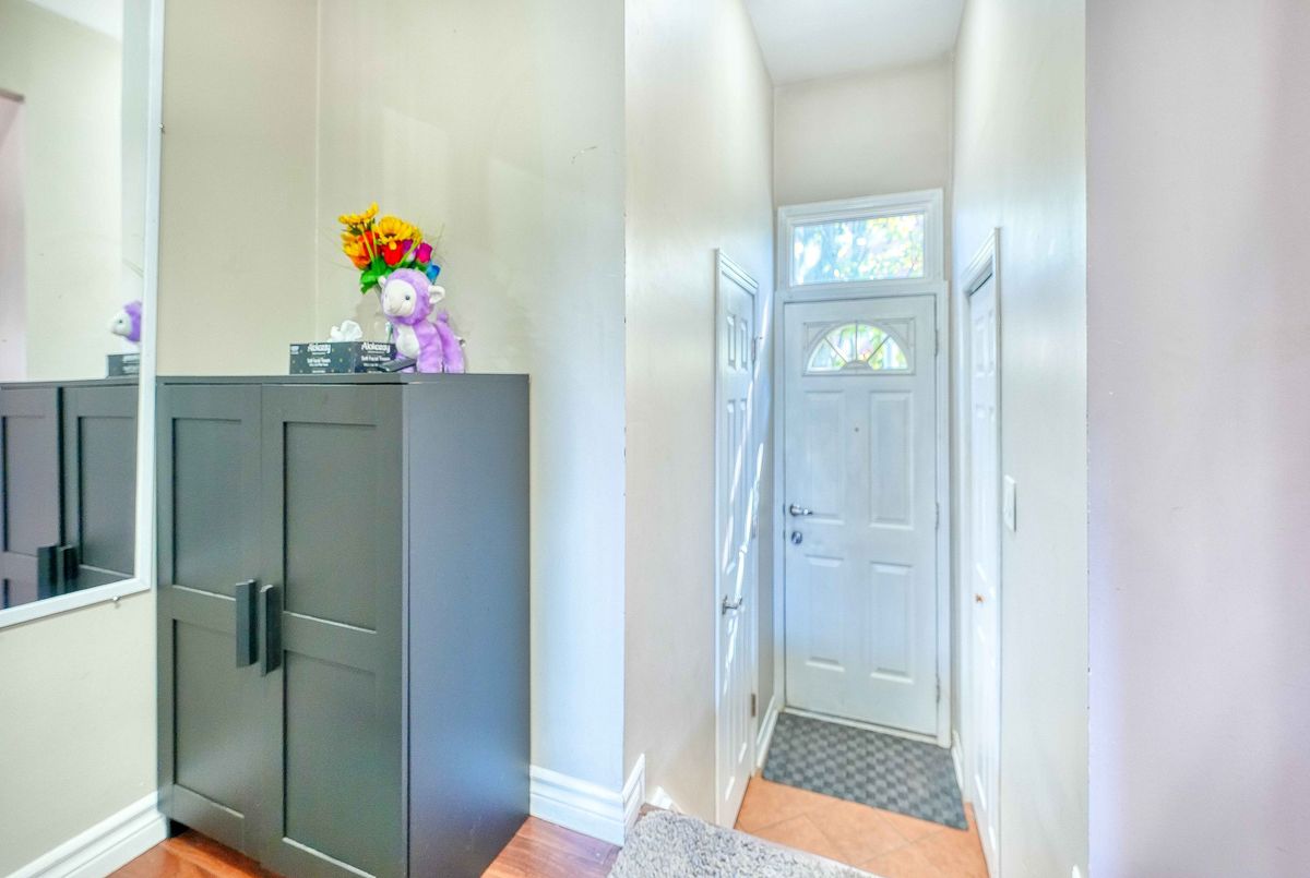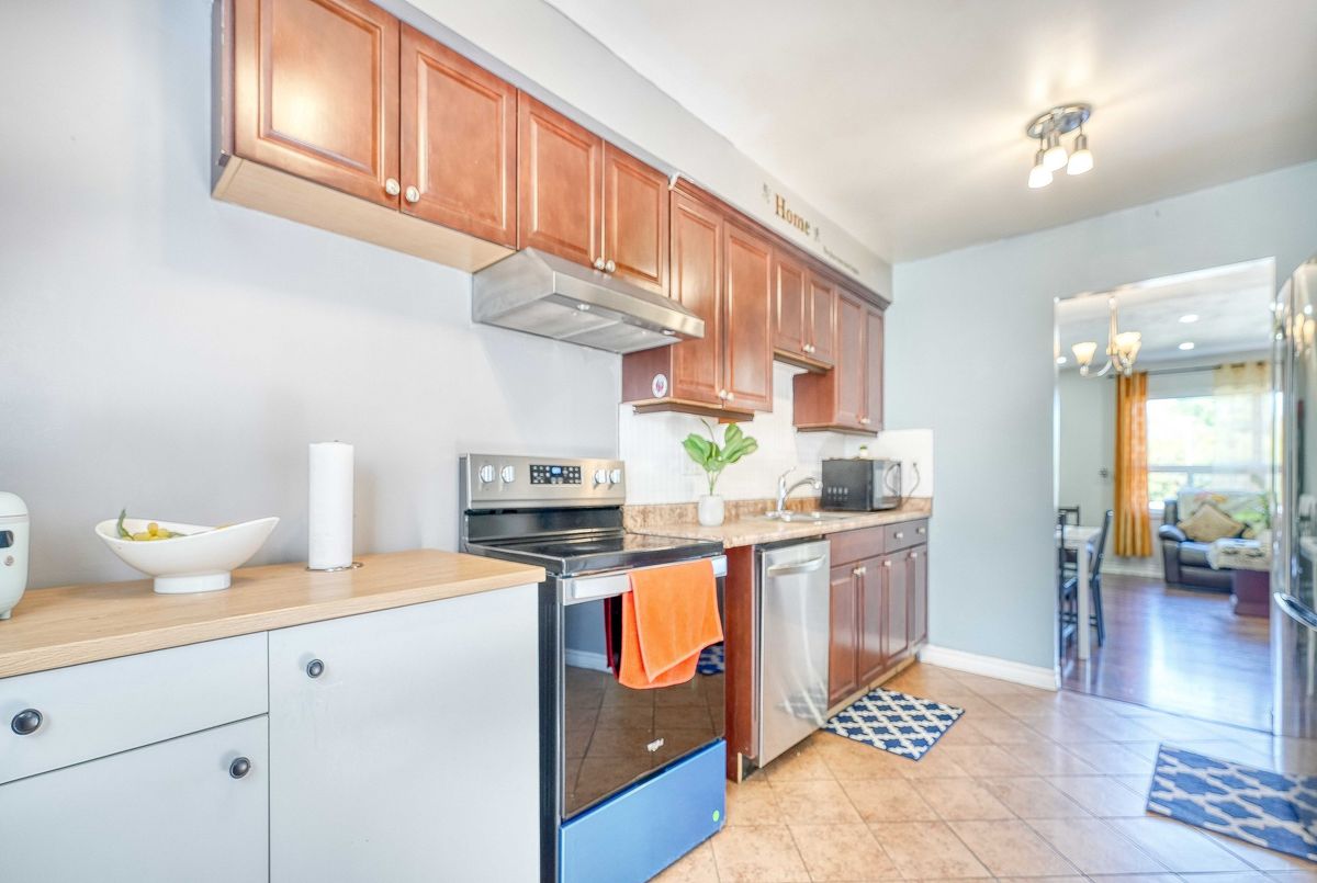 Welcome to this bright, spacious townhome in one of Pickering's most sought-after neighborhoods. Featuring carpet-free laminate flooring throughout, it offers a clean, modern aesthetic. The large eat-in kitchen and sun-filled L-shaped living/dining area create an inviting space for everyday living. Upstairs, the primary bedroom boasts his-and-hers wall-to-wall closets, while the walk-out basement adds extra living space and abundant storage.The garage is equipped with EV charging.