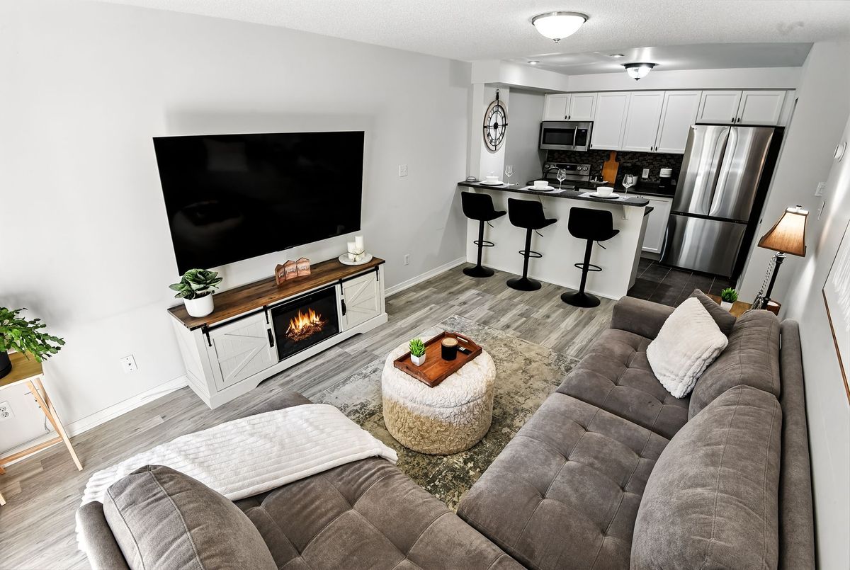 Welcome to 124 Aspen Springs Drive in the vibrant community of Bowmanville. Unit 310 is amove-in ready 2-bedroom condo apartment with a private east-facing balcony. Perfect for a firsttime buyer or small family. This 3rd floor unit owns one private parking space and has nearbyguest parking available. Let in your guests using the intercom system in the main entrysecurity features. Make your way up to the 3rd floor and experience the peace and quiet ofcondo living. Entering the unit, you'll find tile floor, double closets, plus stacking in-suitelaundry facilities. Next, begin your journey in the main living area. The open concept kitchenis outfitted with new stainless steel appliances, the cabinetry is freshly painted for you tobegin your own culinary adventures. Looking into the main living room, you'll feel right athome as you entertain or relax for a cozy movie-night. Want to start your day enjoying yourmorning coffee on the private balcony? Fire up that espresso machine! Venture back inside andyou'll find 2 spacious bedrooms and a 4-pc bathroom for your every need. Convenience isessential to the enjoyment of Aspen Springs Drive, as it offers residents access to schools,parks, shopping amenities, and transit routes. Those working professionals benefit from a shortdrive to the Highway 401 or Highway 2, making it a commuters dream. For those seeking topurchase their first home or investment property, unit 310 at 124 Aspen Springs Drive is theone for you!