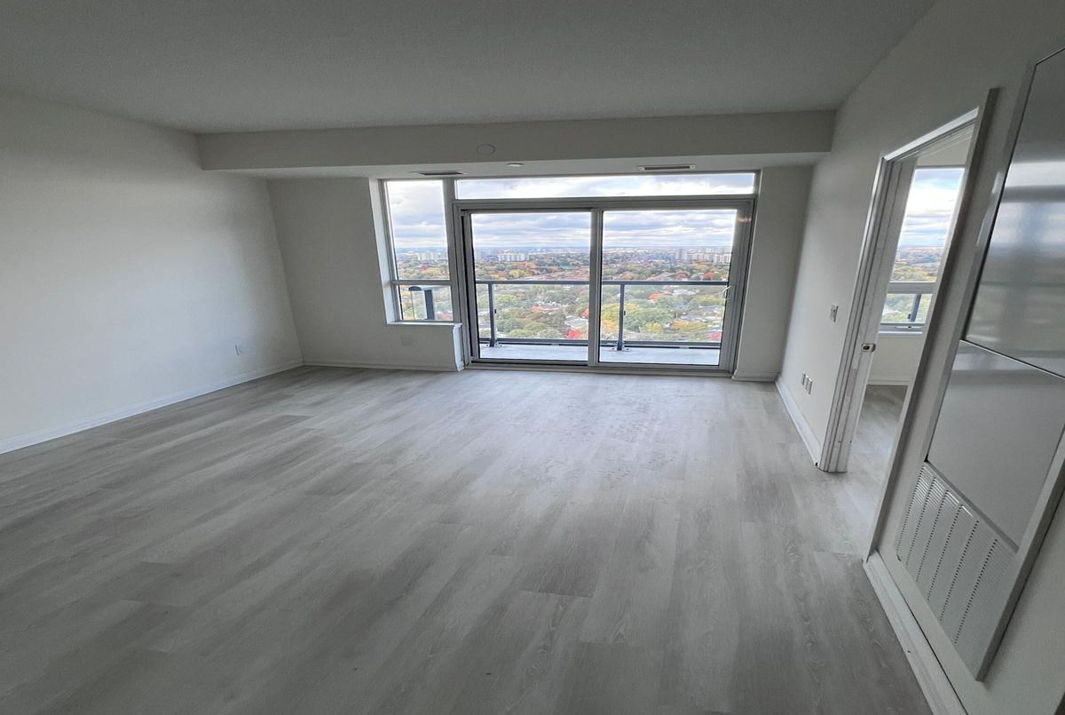 Bright and Spacious 1+1 bedroom condo on the 24th floor with stunning unobstructed views. Functional open- concept layout with a large primary bedroom and a separate den ideal for a home office or study area. Modern kitchen with ample storage, combined living/dining space, and a walk-out to a private balcony. In-suite laundry and one underground parking spot included. Prime location with TTC at your doorstep, close to grocery stores, schools. restaurants, and easy access to Hwy 401 and 404. Perfect for professionals, couples or small families looking for convenient city living.