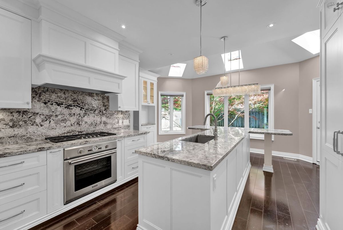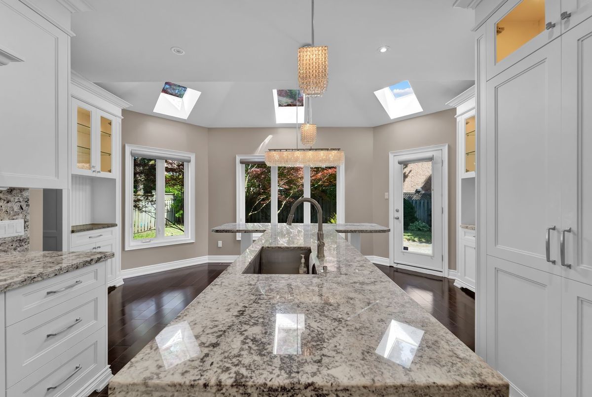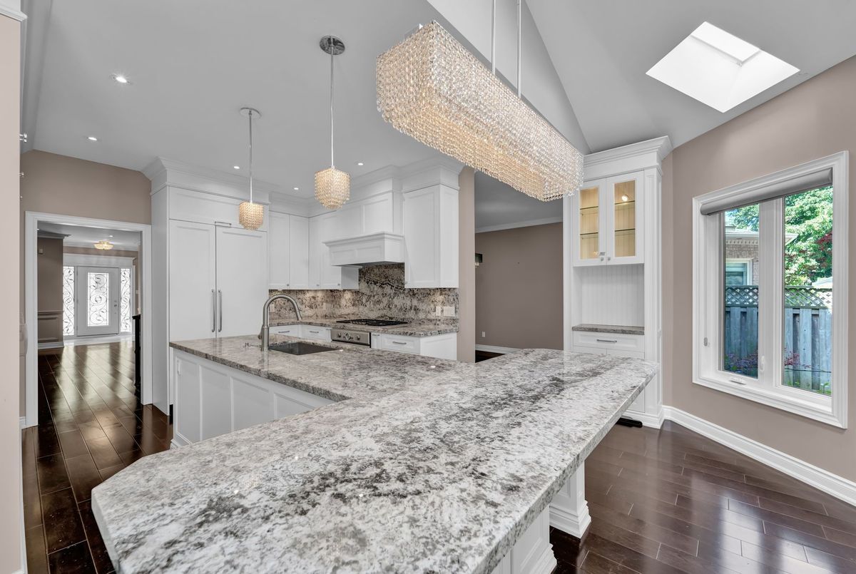 Discover this exceptional 3300 sq ft above-grade home, perfectly situated in Thornhill's most desirable Beverley Glen neighborhood. Boasting an impressive 50 frontage with a double car garage and total parking for 4 vehicles, this property offers both space and convenience, Step inside to a grand foyer and spacious hallway, leading to an elegant spiral staircase. The heart of this home is its sleek, modern kitchen, featuring pristine white cabinetry, luxurious marble-granite countertops, and a sun-drenched breakfast area - ideal for casual dining. Entertain with ease in the bright living room with its large windows, or host formal gatherings in the dedicated dining room. Unwind in the cozy family room, complete with a charming fireplace, perfect for intimate evenings, Upstairs, you'll find three generously sized bedrooms and two beautifully appointed bathrooms. The primary suite is a true retreat, offering a large walk-in closet and a spa-like 5-piece ensuite. The substantial basement extends your living space with an additional bedroom and a full bathroom, providing ample room for guests or a growing family, This prime location offers unparalleled accessibility: just minutes from Promenade Shopping Mall, major grocery stores, Highway 407, beautiful parks, and top-rated schools. Don't miss this incredible opportunity to own a modern masterpiece in Thornhill's most coveted area!