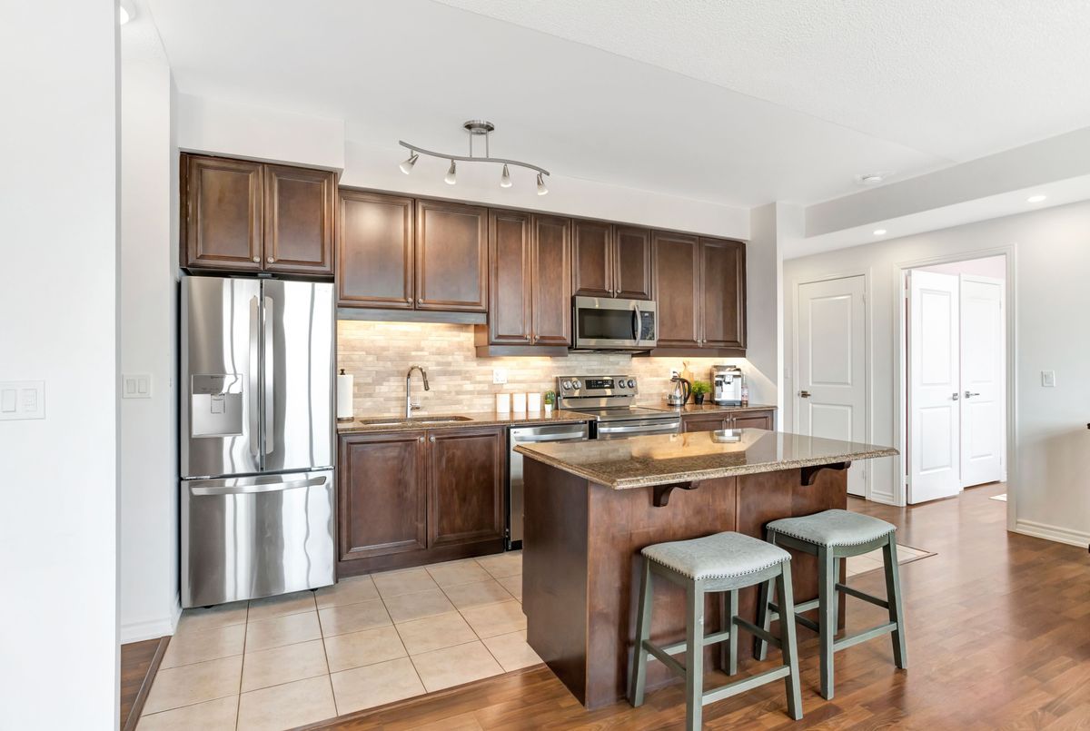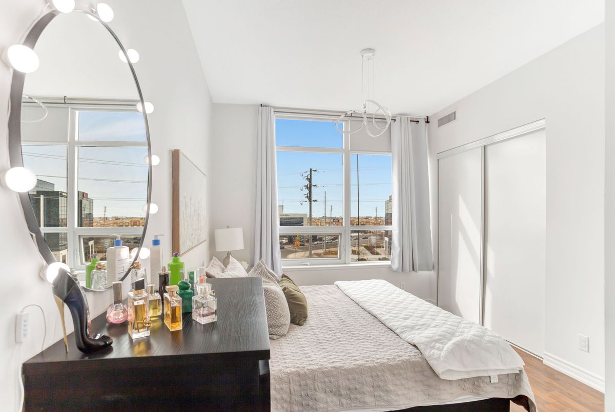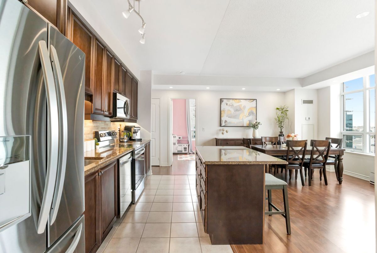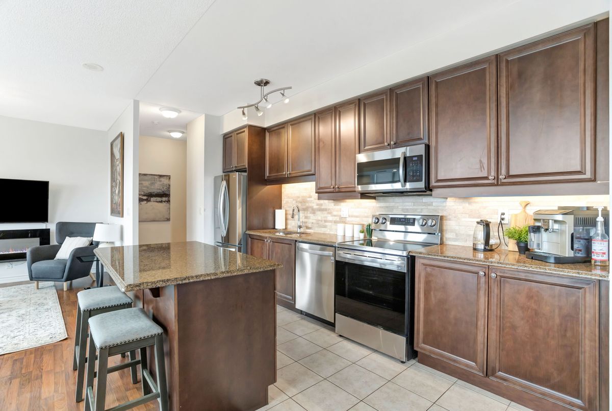 Is Solmar's stunning, sun-soaked open-concept, approx. 1000 sq. ft end unit mid-level 2 Bedrm/2 Washrm North/West-facing Condo unit that features extended galley kitchen w/large kitchen island, granite countertops, complimenting backsplash, recently installed SS appliances, hardwood flooring throughout, LED pot lighting, upgraded blackout blind systems, combined living & dining rooms that walks-out to a large balcony, 2 sizeable bedrooms w/closets that includes a large primary w/4 pc bath, double closets and so much more. There's plenty of storage space for this unit, that also includes a sizeable locker and 2 underground parking spot. The building itself has 24 hour concierge, pet wash, games room, party rooms, billiards room, guest suites, fitness/yoga centre, designated BBQ areas, 24 hour-concierge and so much more.