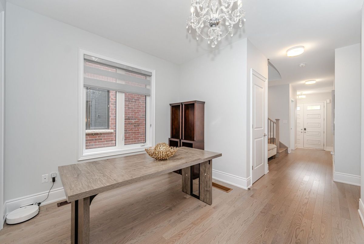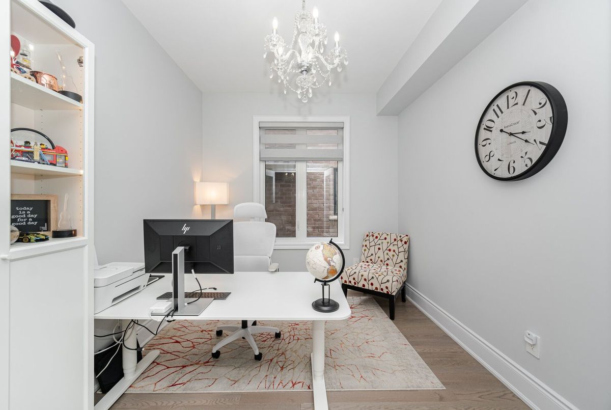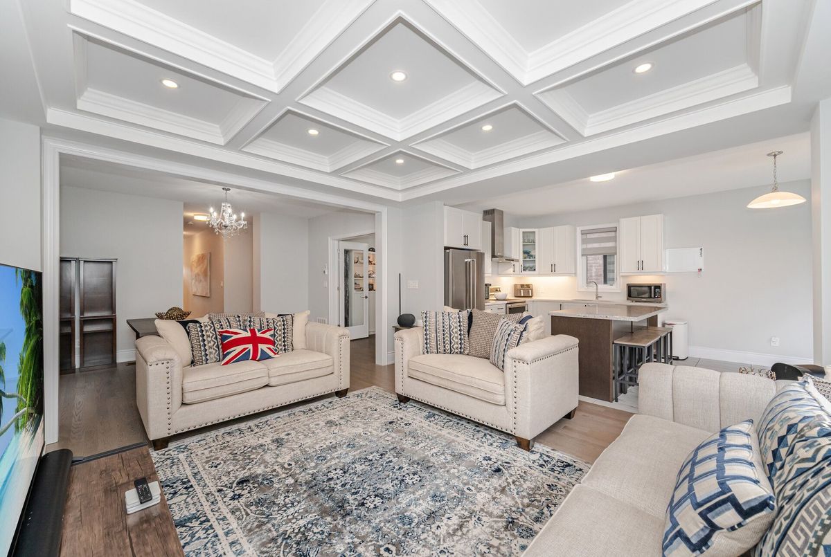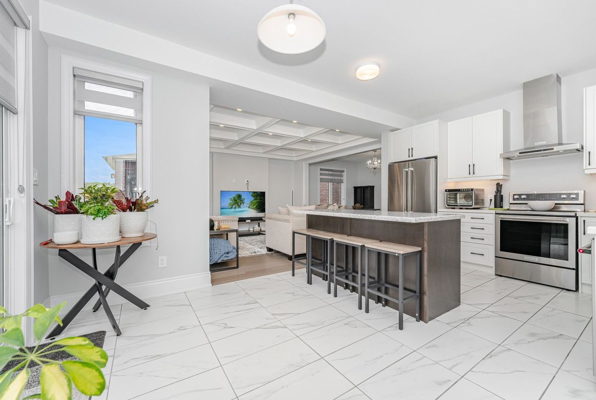 Luxury living in Midhurst Community with a grand front double door entry leading to a carpet-free, super-clean interior boasting high-end finishes, quartz countertops, sun-filled rooms, a cozy family room with fireplace and coffered ceiling, modern roll-up window blinds, a sleek kitchen with central island, hardwood floors throughout, a main-floor office, soaring 9-foot ceilings on both levels, basement separate entrance door, garage door openers with built-in cameras, a primary bedroom with a 6-piece ensuite, an upper-level entertaining den, a separate laundry room and move-in-ready perfection just steps from Hickling recreational trails, a golf club and Snow Valley ski resort.