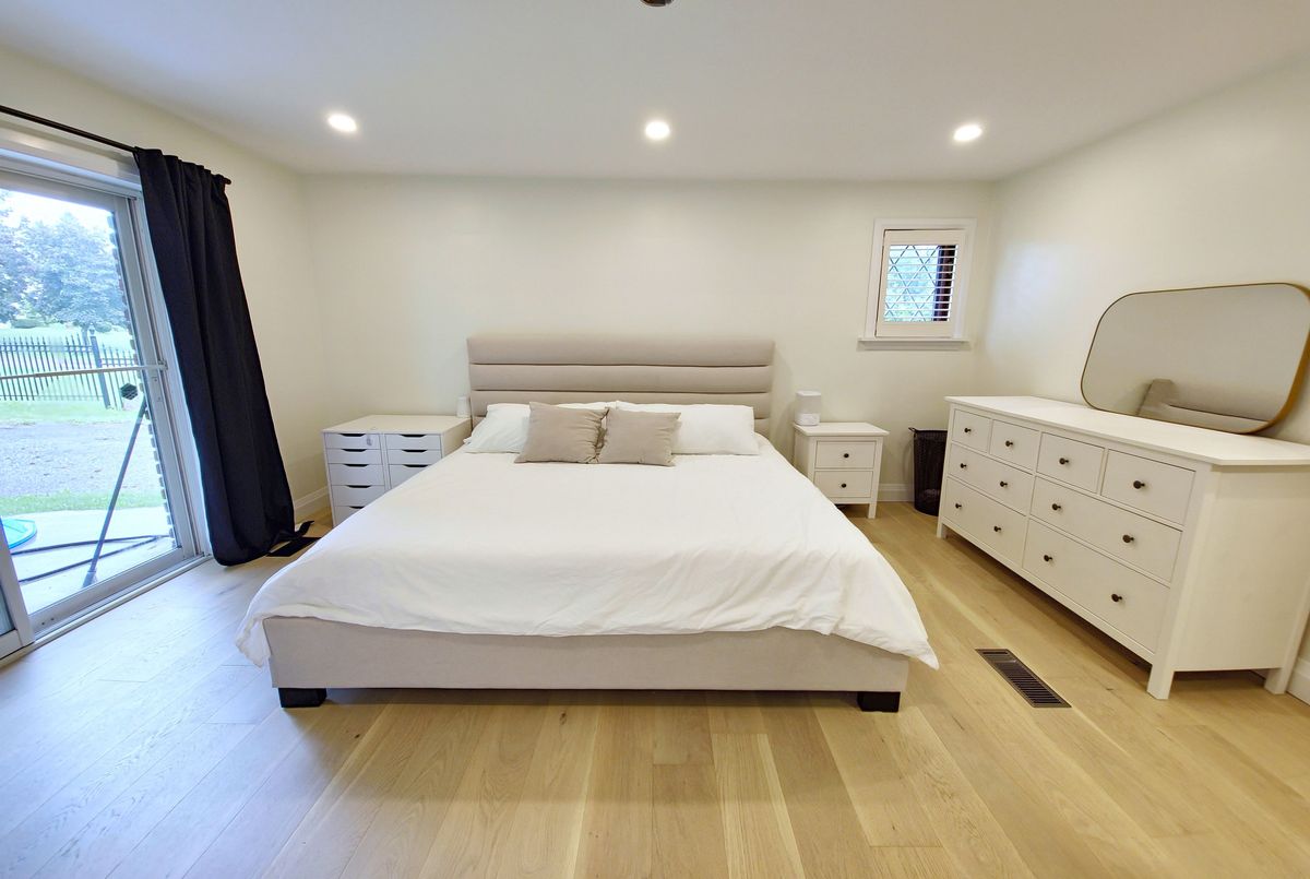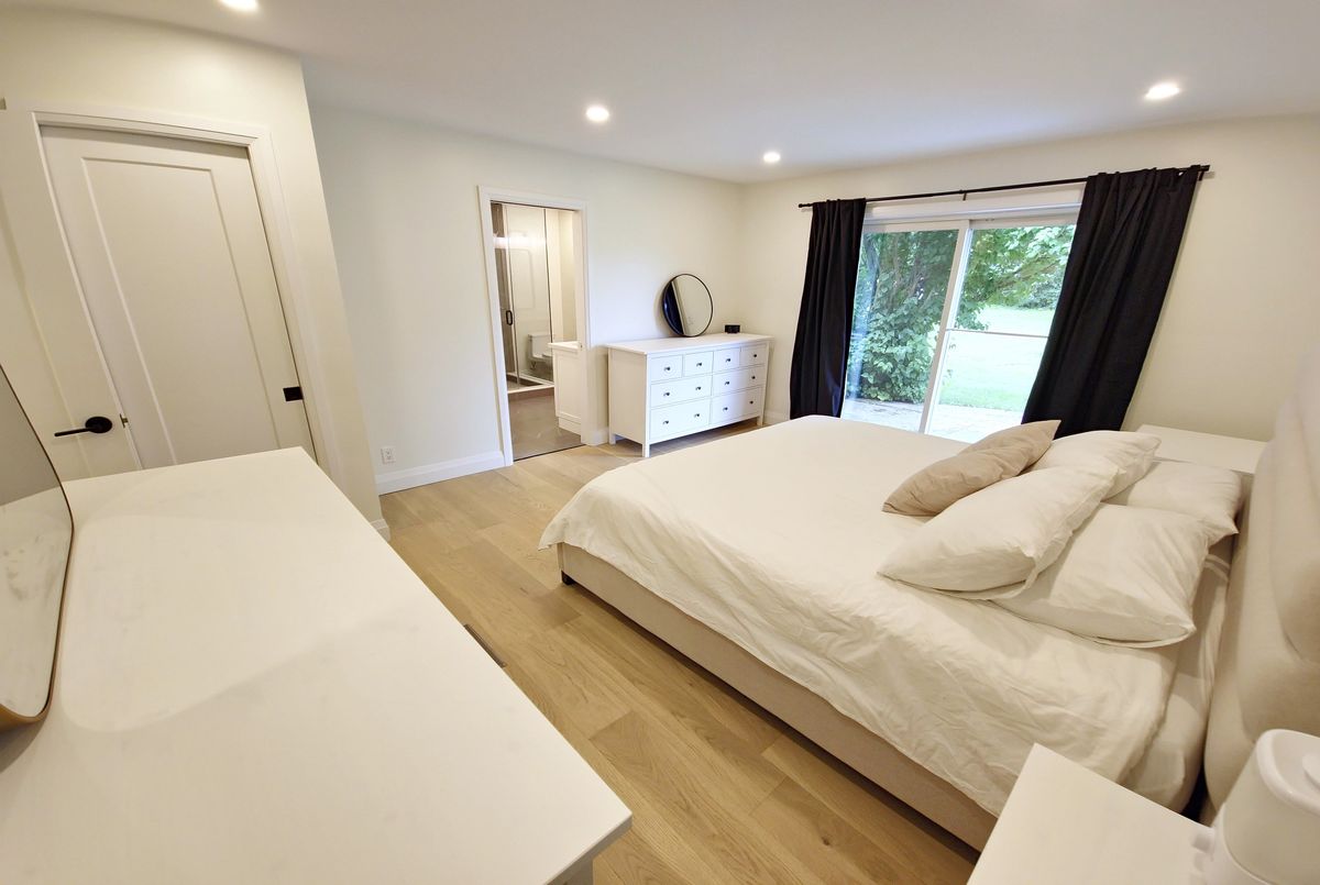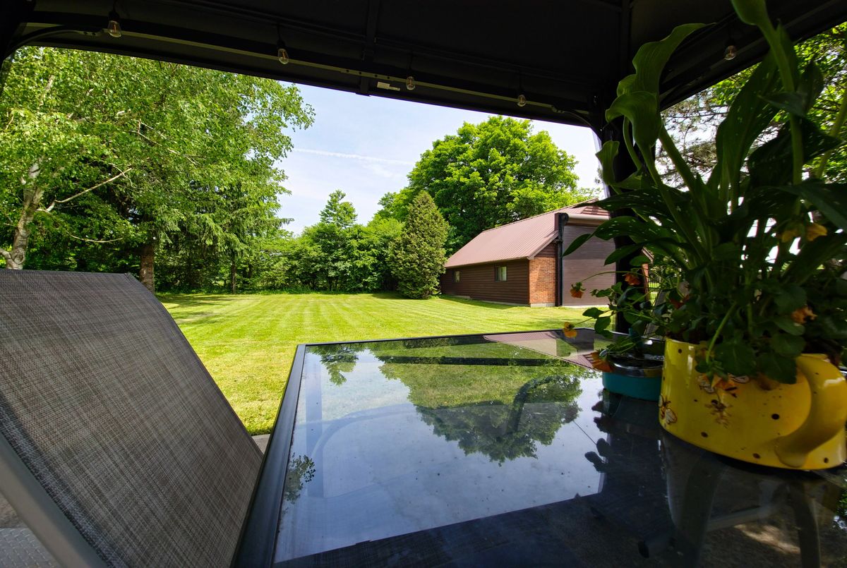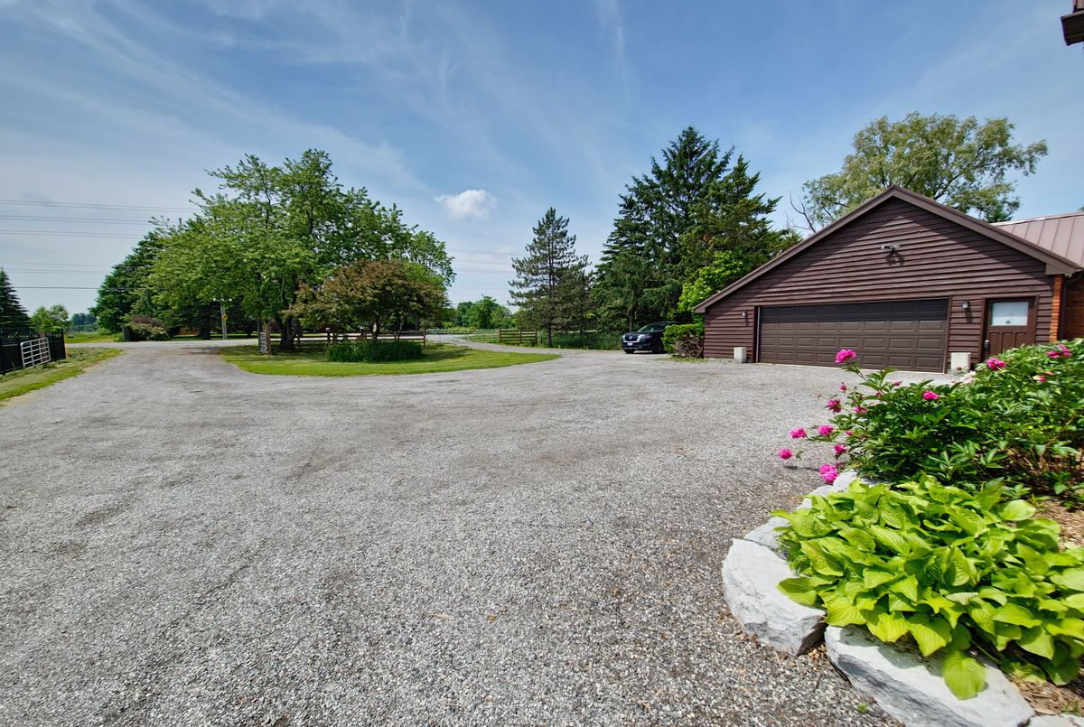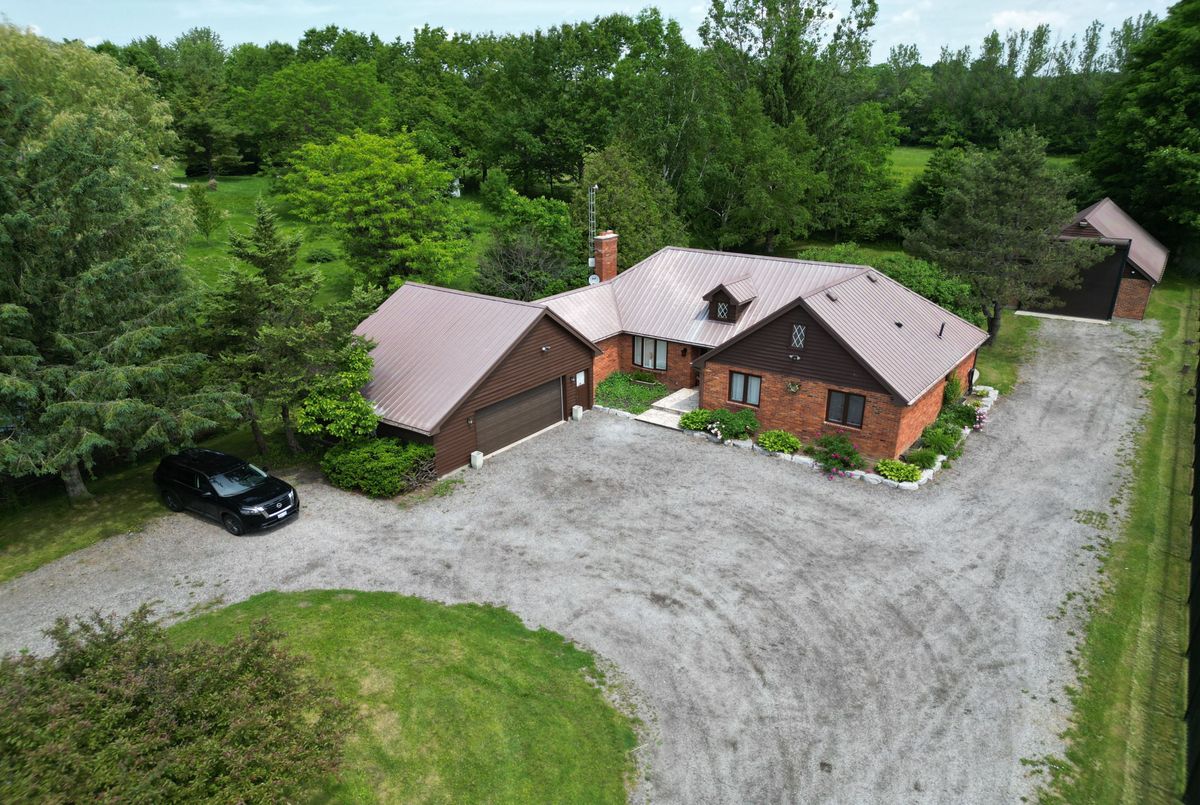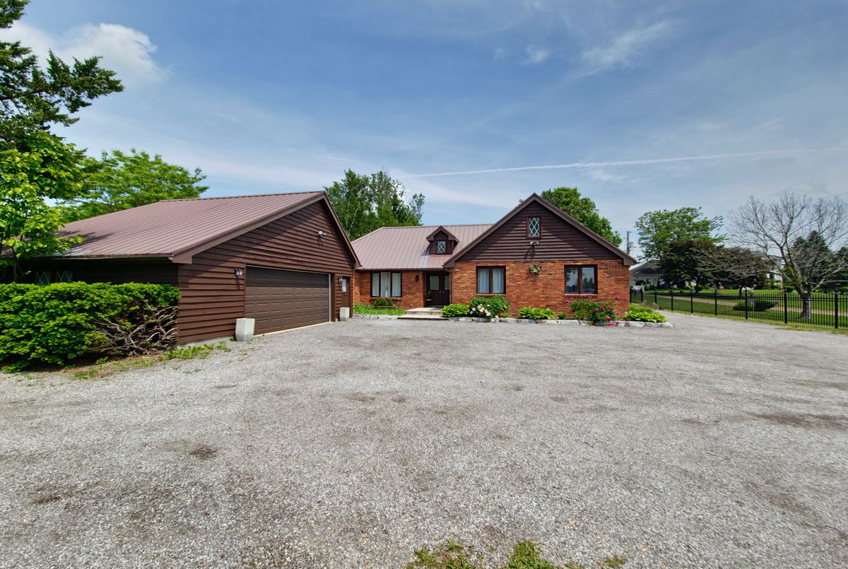 Welcome to your dream home! This stunning brick bungalow, set on a spacious lot just over half an acre, seamlessly blends rural tranquility with modern luxury. Featuring three bedrooms on the main floor and an additional bedroom in the basement, this home offers ample space for your family. The primary bedroom is a haven of natural light, complete with walkout patio doors and an ensuite bathroom featuring in-floor heating. Every inch of this home has been meticulously updated with luxurious, modern finishes. Beautiful new hardwood flooring runs throughout the main floor, adding elegance and warmth. The gourmet kitchen is a chefs delight, boasting quartz countertops, an 8-foot long island perfect for entertaining, and all-new stainless steel appliances, including an oversized fridge and freezer. Modern amenities abound, with a new washer and dryer, security cameras for peace of mind, and a large rec room in the basement for leisure activities. For those needing extra space, the property includes a large, separate shop that is insulated and heated, featuring a 14-foot bay door ideal for oversized vehicles. Ample parking is available with two gated driveway entrances, plus a double car garage attached to the house. The spacious private backyard is perfect for family gatherings or simply enjoying the peace and quiet. Located just 7 minutes from highway 401, this property offers easy access to city amenities while providing a peaceful retreat from the hustle and bustle. This property is a rare find, combining the charm of a brick bungalow with top-of-the-line modern amenities. Dont miss out on the opportunity to make this house your home. Schedule a viewing today and experience this exceptional property for yourself.
