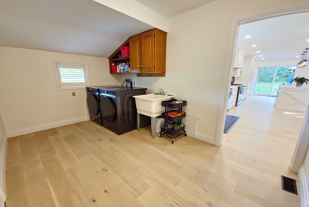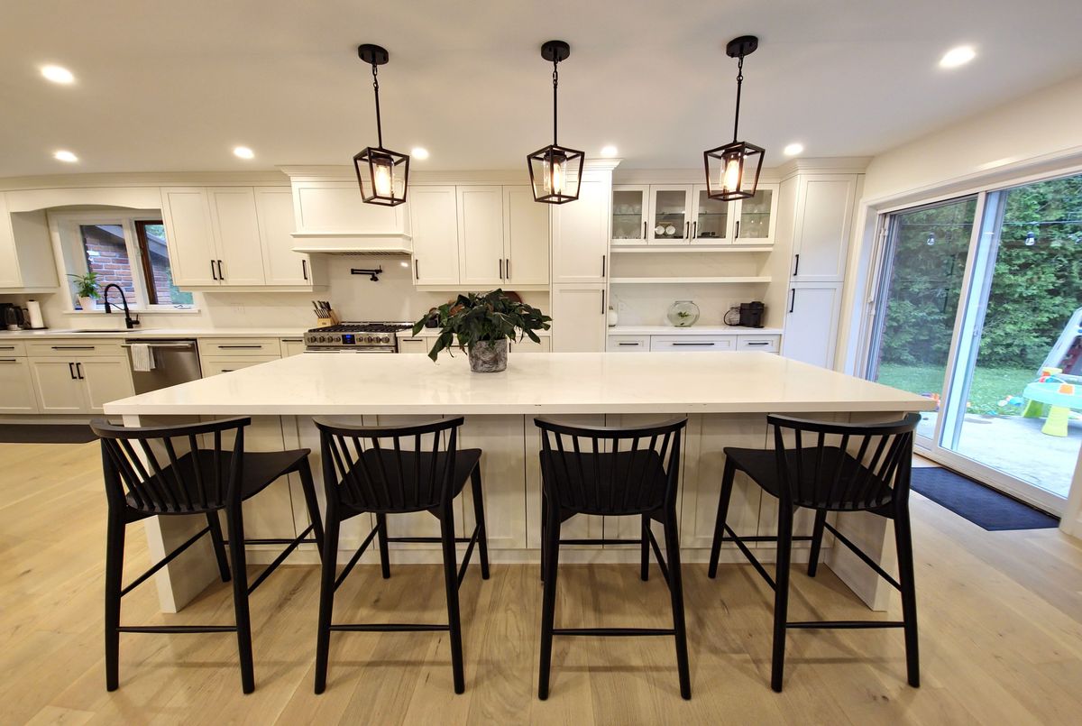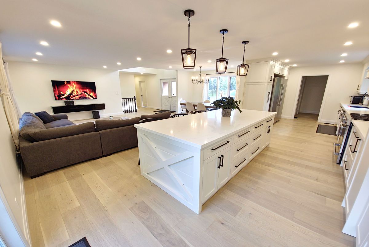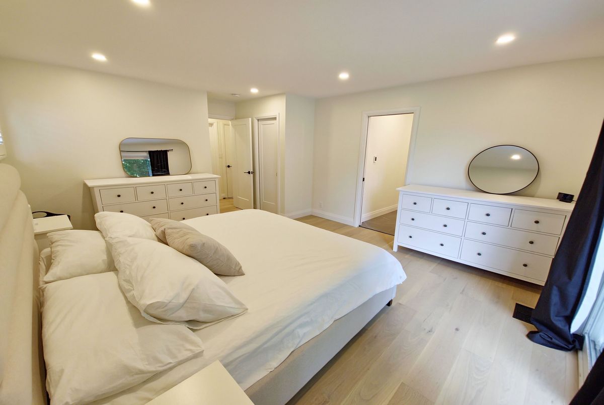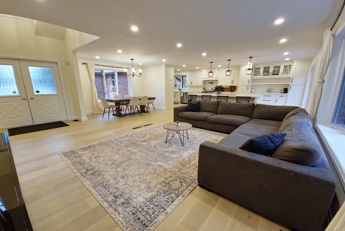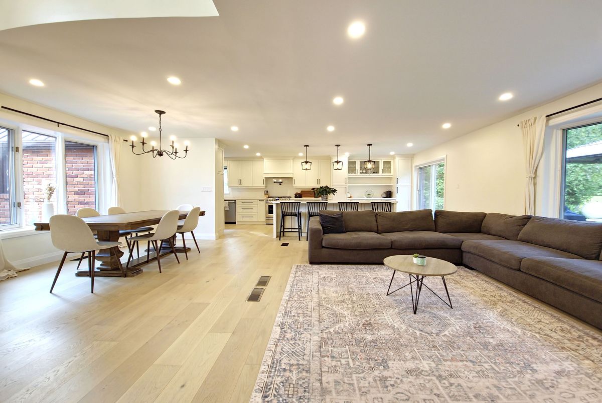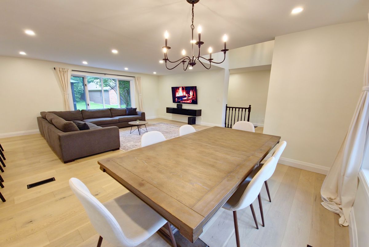 Welcome to your dream home! This stunning brick bungalow, set on a spacious lot just over half an acre, seamlessly blends rural tranquility with modern luxury. Featuring three bedrooms on the main floor and an additional bedroom in the basement, this home offers ample space for your family. The primary bedroom is a haven of natural light, complete with walkout patio doors and an ensuite bathroom featuring in-floor heating. Every inch of this home has been meticulously updated with luxurious, modern finishes. Beautiful new hardwood flooring runs throughout the main floor, adding elegance and warmth. The gourmet kitchen is a chefs delight, boasting quartz countertops, an 8-foot long island perfect for entertaining, and all-new stainless steel appliances, including an oversized fridge and freezer. Modern amenities abound, with a new washer and dryer, security cameras for peace of mind, and a large rec room in the basement for leisure activities. For those needing extra space, the property includes a large, separate shop that is insulated and heated, featuring a 14-foot bay door ideal for oversized vehicles. Ample parking is available with two gated driveway entrances, plus a double car garage attached to the house. The spacious private backyard is perfect for family gatherings or simply enjoying the peace and quiet. Located just 7 minutes from highway 401, this property offers easy access to city amenities while providing a peaceful retreat from the hustle and bustle. This property is a rare find, combining the charm of a brick bungalow with top-of-the-line modern amenities. Dont miss out on the opportunity to make this house your home. Schedule a viewing today and experience this exceptional property for yourself.