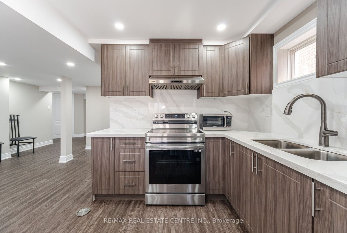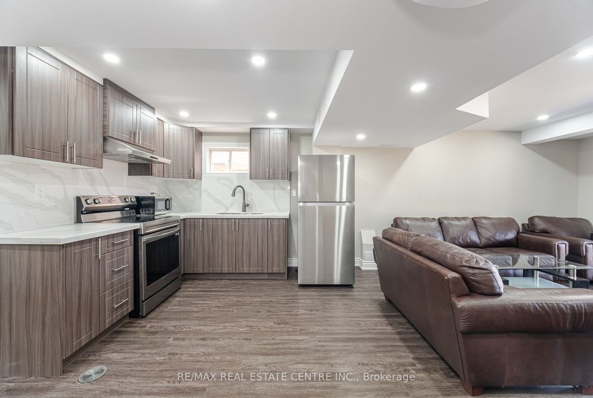 Newly constructed, legal walk out basement with separate entrance with 3 large bedrooms with 2 full washrooms, Large windows & lots of natural light. Open concept kitchen with Stainless Steel Appliances and Quartz countertop & Spacious living room. Separate Laundry for the tenant, with 1 parking available on the driveway, modern and open-concept design. Fully Furnished with tenant having access to backyard. Prime location proximity to all major highways 401/410/407/403, Heartland Town Centre, Go Station, Malls, Parks, Religious Places. Tenant pays 40% of the utilities, no smoker, no pets.