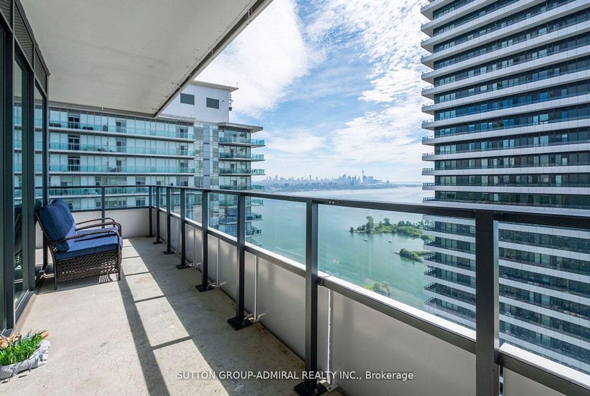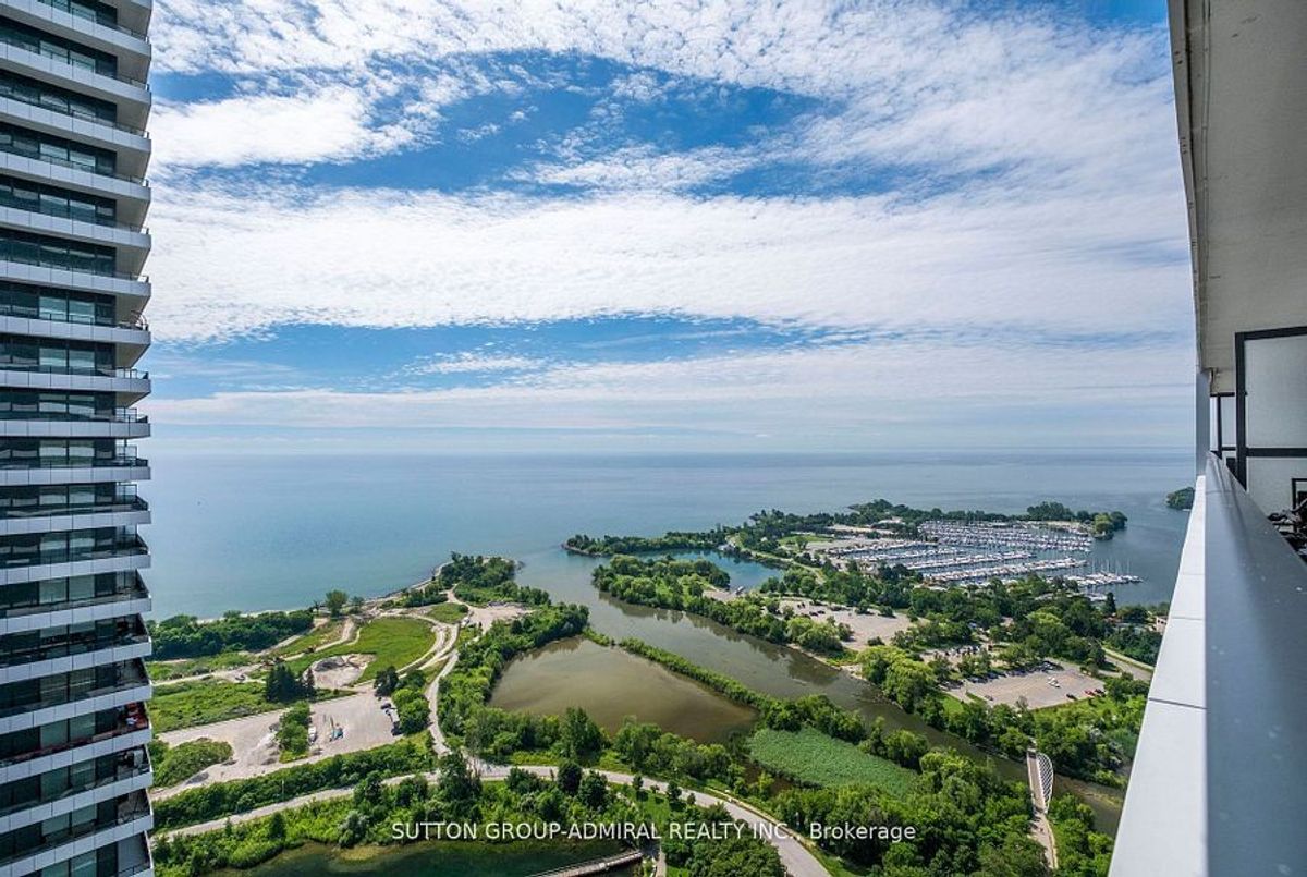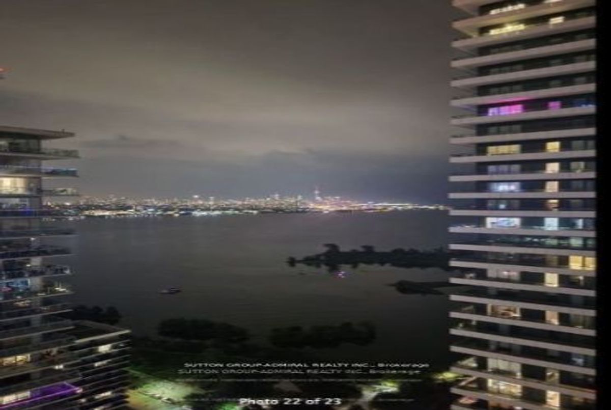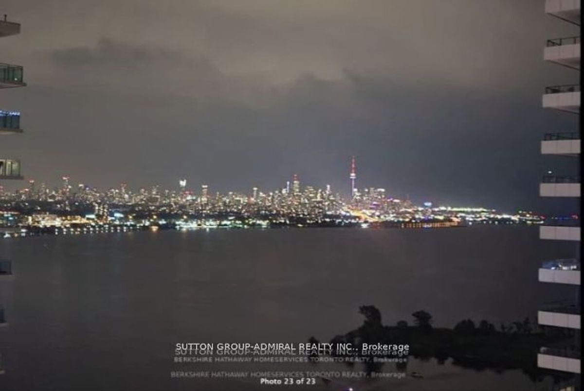 Stunning 2-bedroom, 2-bathroom corner unit in the prestigious Waterfront Sky Tower. This bright and spacious condo features high-end modern finishes, including granite countertops, engineered hardwood flooring, and stainless steel appliances. With 9-foot ceilings and upgraded window coverings, every detail is designed for luxury. Enjoy breathtaking, unobstructed views of the lake, marina, and the Toronto skyline from the expansive wrap-around balcony. The building offers top-tier amenities such as a state-of-the-art gym, yoga room, indoor pool and hot tub, outdoor terrace, games room, party room, visitor parking, and 24-hour concierge service **EXTRAS** Appliances (Fridge, cooktop, oven, Dishwasher, Microwave) Washer And Dryer, All Light Fixtures included Storage Locker and parking included