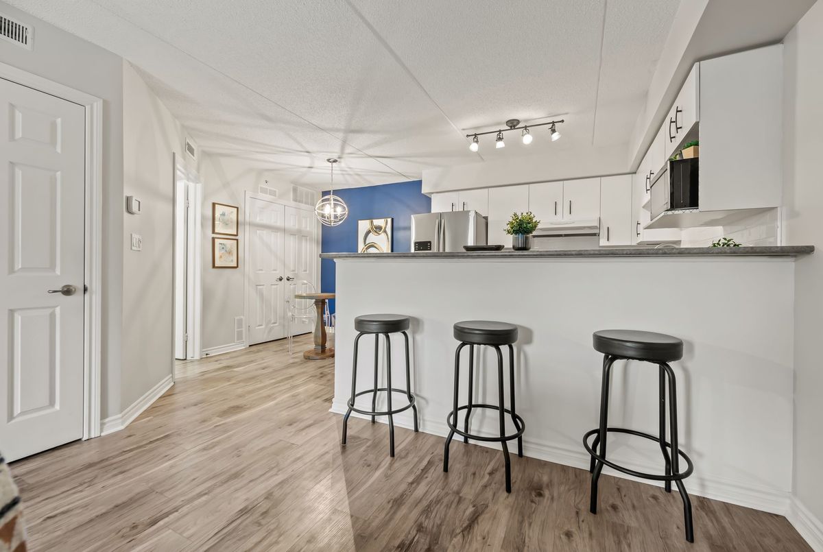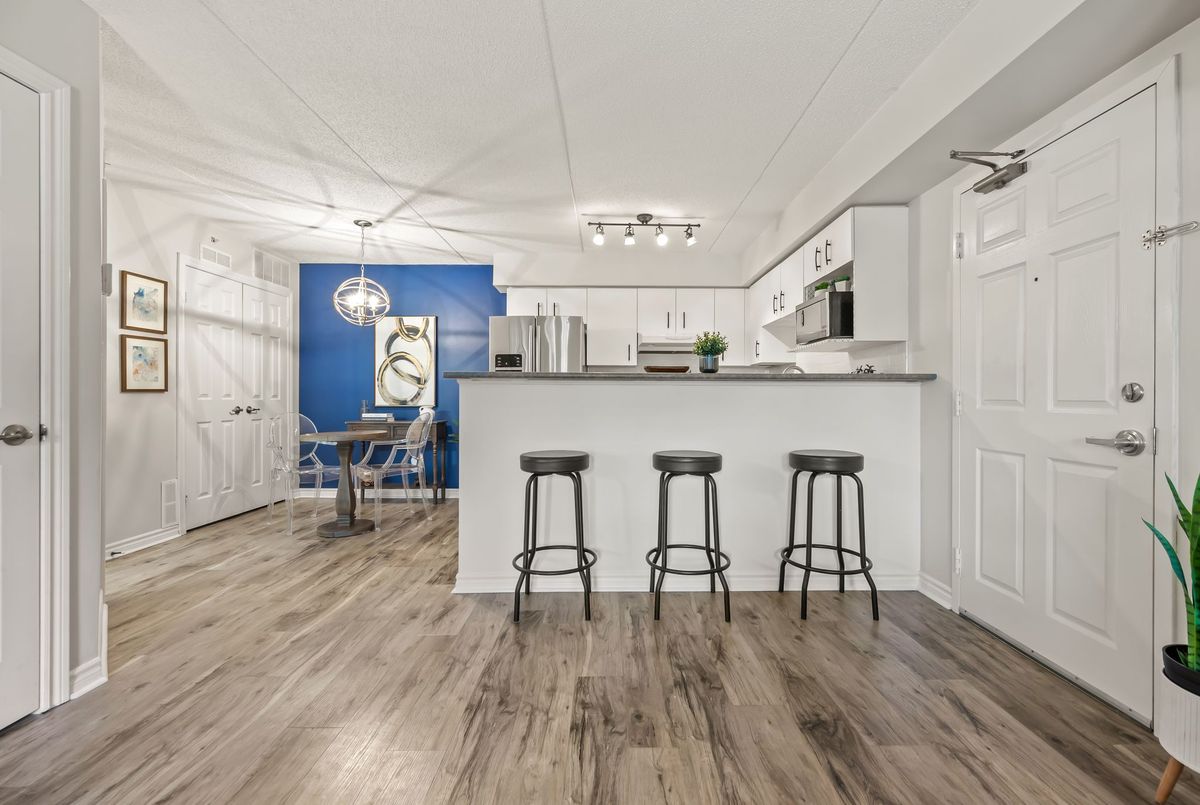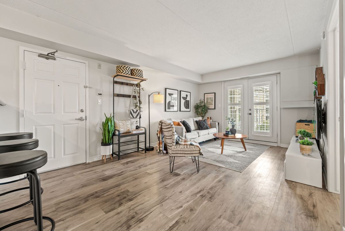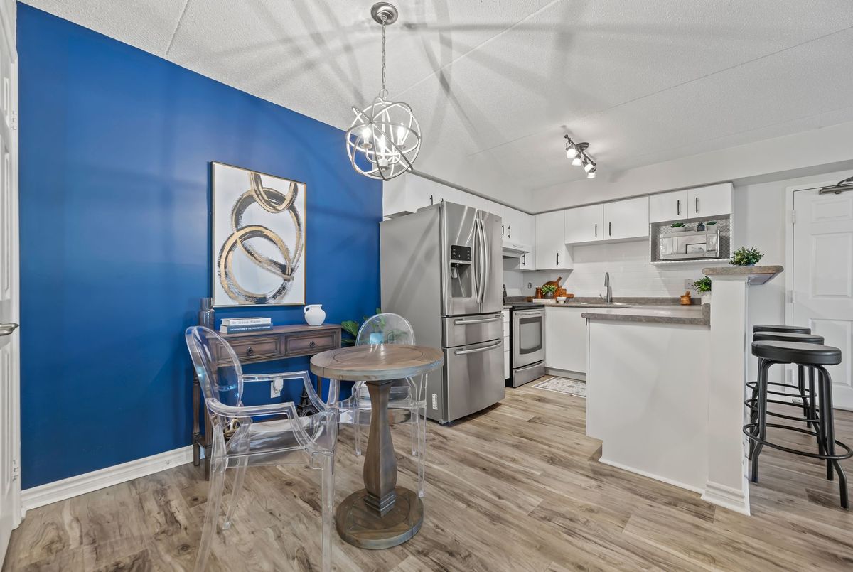 Discover exceptional value in this beautifully maintained 1-bedroom condo, perfectly situated in the sought-after Glen Abbey community! The bright, open-concept layout features luxury vinyl plank flooring throughout, seamlessly connecting the kitchen, dining, and living areas. French doors lead to a private balcony overlooking a peaceful courtyardan ideal spot to relax or fire up the BBQ. Enjoy the convenience of in-suite laundry, ample visitor parking, and premium amenities, including a newly renovated party room, sauna, fully equipped fitness center, car wash bay, and pet-friendly policies. Located just steps from shopping, restaurants, coffee shops, and scenic trails, this condo is also close to top-rated schools, Oakville Hospital, a recreation center, parks, and world-class golf courses. With easy access to the GO Station, QEW, and 403, commuting is a breeze. Complete with one underground parking space and a storage locker, this is a rare opportunity to own in one of Oakvilles most desirable neighborhoods.