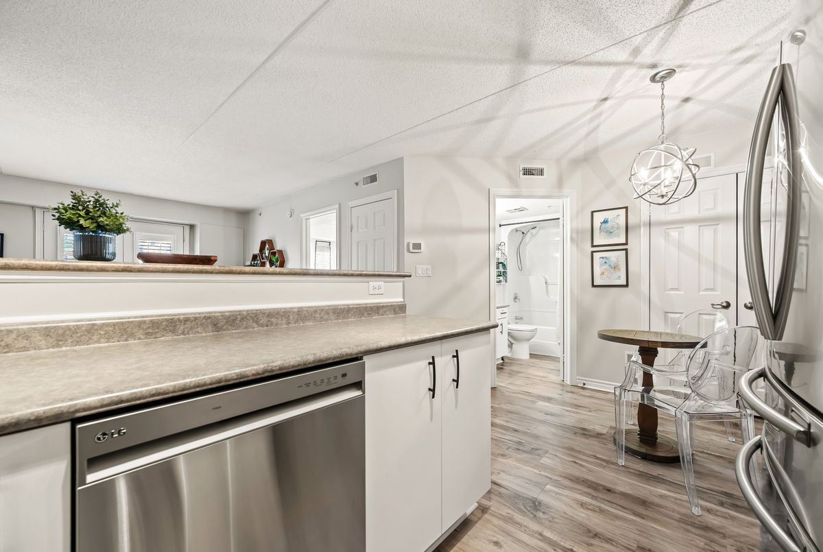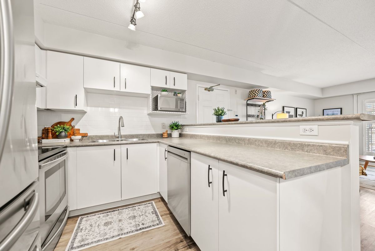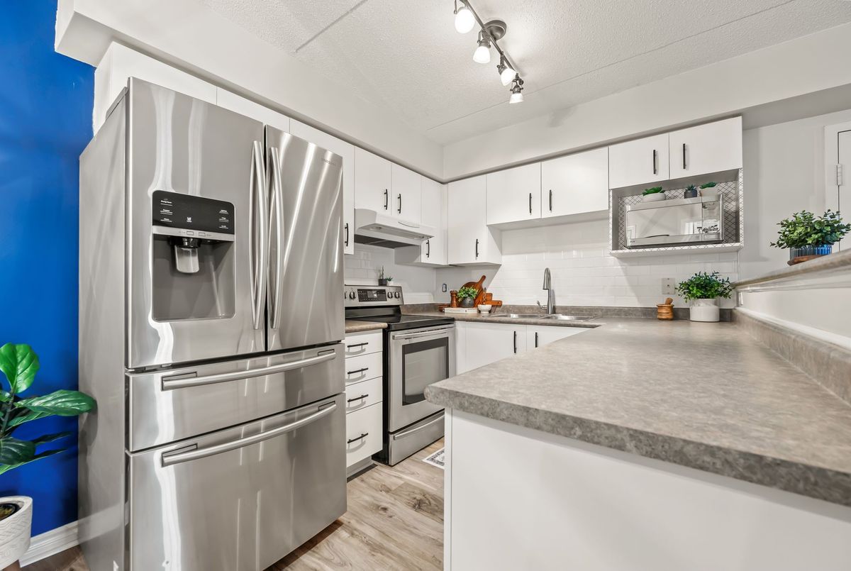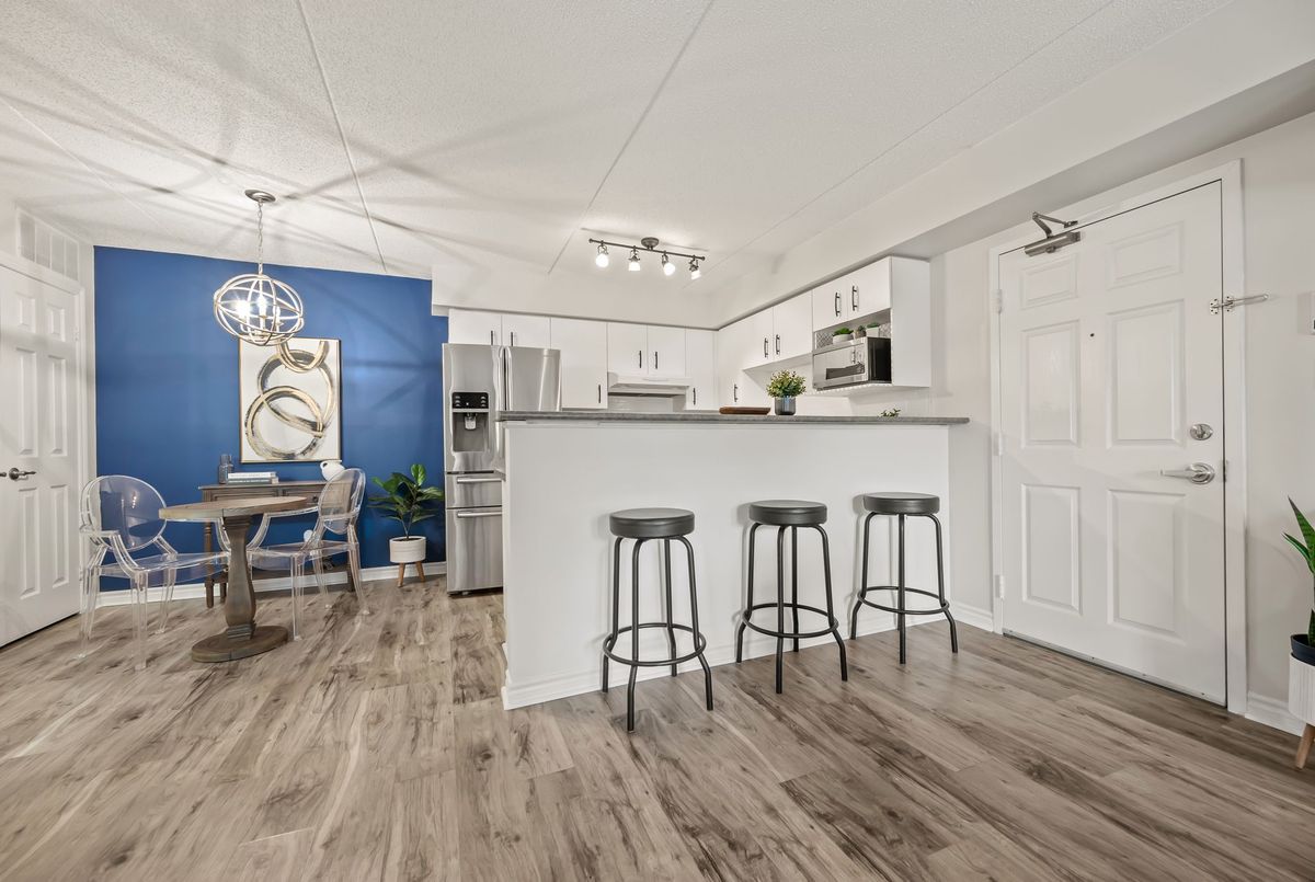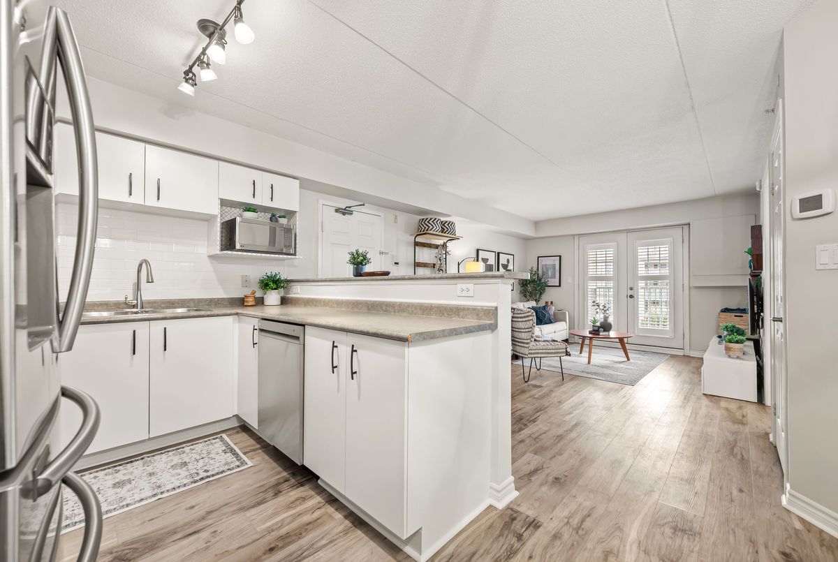 Discover exceptional value in this beautifully maintained 1-bedroom condo, perfectly situated in the sought-after Glen Abbey community! The bright, open-concept layout features luxury vinyl plank flooring throughout, seamlessly connecting the kitchen, dining, and living areas. French doors lead to a private balcony overlooking a peaceful courtyardan ideal spot to relax or fire up the BBQ. Enjoy the convenience of in-suite laundry, ample visitor parking, and premium amenities, including a newly renovated party room, sauna, fully equipped fitness center, car wash bay, and pet-friendly policies. Located just steps from shopping, restaurants, coffee shops, and scenic trails, this condo is also close to top-rated schools, Oakville Hospital, a recreation center, parks, and world-class golf courses. With easy access to the GO Station, QEW, and 403, commuting is a breeze. Complete with one underground parking space and a storage locker, this is a rare opportunity to own in one of Oakvilles most desirable neighborhoods.