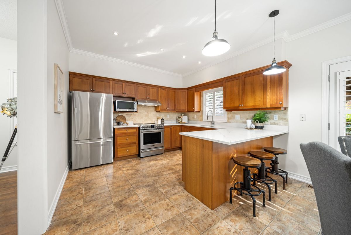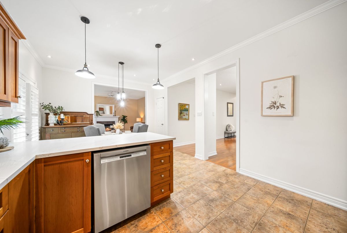 Nestled on a tranquil street in Burlingtons highly coveted Orchard community, this beautifully updated, move-in-ready 4-bed, 3-bath home offers the perfect blend of style, comfort and functionality for modern family living. Boasting exceptional curb appeal, double car garage and welcoming foyer with soaring ceilings, this home impresses from the moment you arrive. Step into a bright & airy open-concept main floor featuring hardwood flooring, neutral tones and elegant finishes throughout. Spacious living and dining areas flow seamlessly into an updated, eat-in kitchen outfitted with quartz countertops, SS appliances, custom cabinetry, a stylish tile backsplash, and a large breakfast island, plus dinette areaideal for both casual meals and entertaining. The inviting family room, complete with cozy gas fireplace & expansive window, offers serene backyard views and a perfect place to unwind. A separate vaulted-ceiling living room is ideal as formal sitting area, den or home office. Convenient main-floor laundry/mudroom with inside access to the garage. Upstairs, retreat to the primary suite with a large walk-in closet and spa-like ensuite featuring soaker tub & walk-in shower. Three additional generously sized bedrooms and an updated full bathroom provide ample space for family or guests. The fully finished lower level expands your living space with a large recroom, bonus office or gym area and a rough-in for another bathroom for future customization. Step outside to your private, fully fenced backyard with a patio area for summer barbecues. Additional features include resurfaced driveway, owned hot water heater, Roof 2023, A/C 2023, Furnace 2020 and abundant storage throughout. Enjoy all the benefits of living in family-friendly Orchardjust steps from top-rated schools, parks, shopping and amenities. With direct access to Sixteen Mile Creek Trail and nearby Bronte Creek Provincial Park, outdoor enthusiasts will love the endless walking, hiking and biking options.