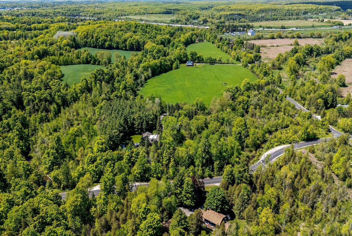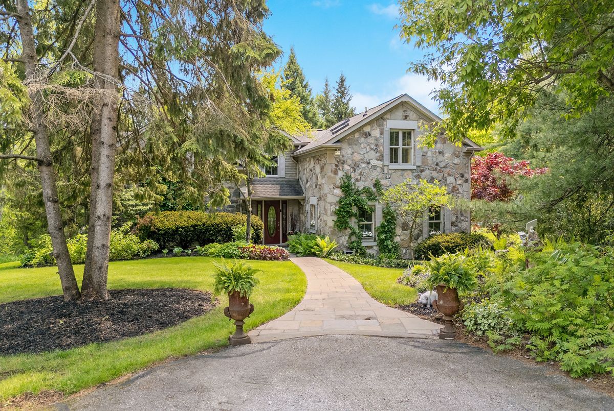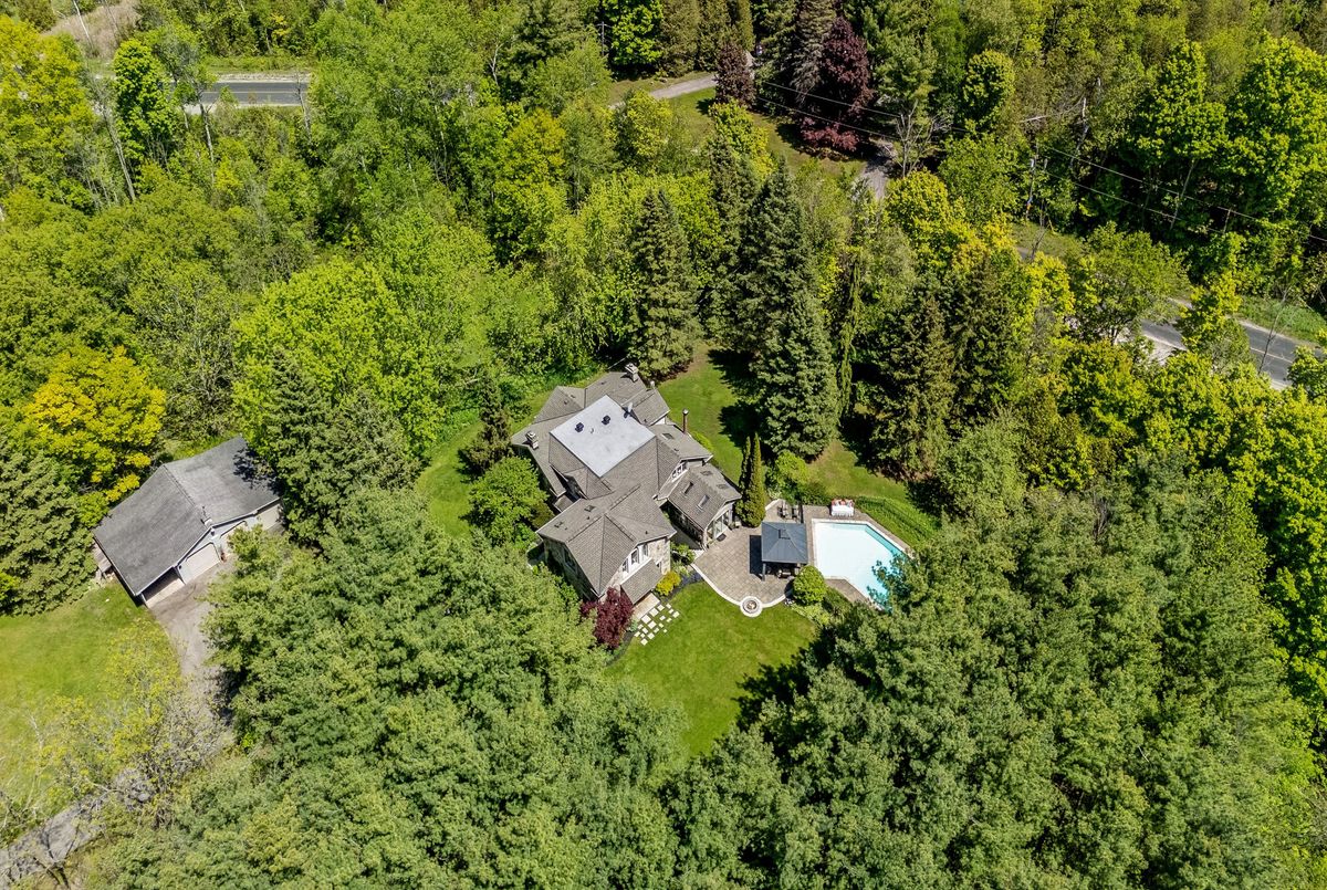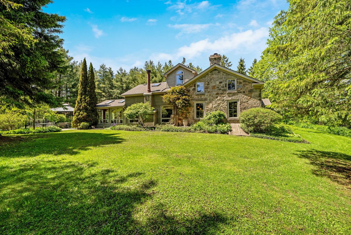 Escape to nature on this 7.96 acre private rural retreat, with close proximity to city amenities. Enjoy a tranquil, rural lifestyle without sacrificing convenience. This property oozes with charm inside and out. Set on almost 8 acres, the long winding driveway offers total privacy from the road and leads to a 4144 sq ft character home surrounded by mature trees and a meandering stream, a true nature-lovers paradise. This 2-storey home, originally built in 1860, had a 1424 sq ft stone addition added in 2002 (main floor great room + 2nd floor primary brm and ensuite) for the perfect blend of old and new. With too many updates to mention (see attached Addendum), this 4 bedroom, 4 bath home offers loads of living space inside and out. Interior features include an updated kitchen with island, main floor great room, large main floor office, 3-season sunroom, 3 fireplaces, heated floors, and main floor laundry. Two staircases lead to the upper level with 4 bedrooms including a lovely primary brm with vaulted ceilings, spacious ensuite and walk-through closet. The basement has a big rec room, 3-pce bath, lots of storage and a walk-up to the yard. The magnificent outdoor space boasts landscaped gardens, a huge stone patio with Gazebo & firepit, a fenced IG salt-water pool and plenty of usable grass area to entertain or relax in this peaceful private oasis. A large parking area at the top of the winding driveway and a separate oversized triple garage with workshop at rear offers ample room for multiple cars and recreational vehicles. Roof re-shingled 2018 (excl garage). Bonus low taxes of $3,032/yr due to Conservation Land Tax Incentive Program annual rebate. This distinctive rural property offers a rare blend of warmth, character and charm. Escape from the everyday without sacrificing the comforts of nearby amenities. Enjoy access to Bruce Trail off Canyon Rd and proximity to several conservation areas, Glen Eden ski hill, and golf courses. Less than 5 min drive to Hwy 401.