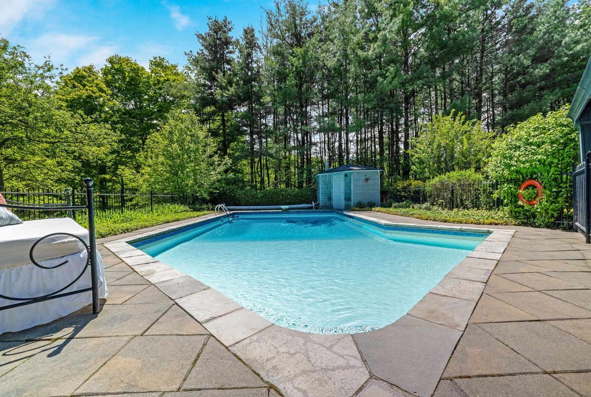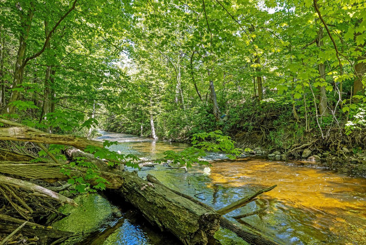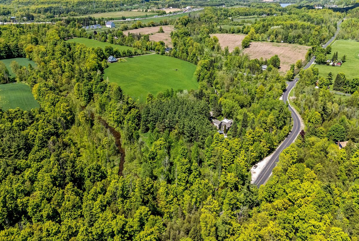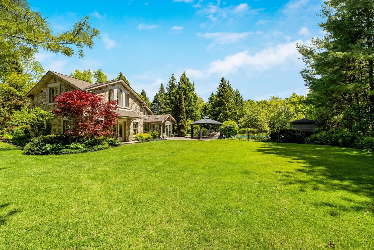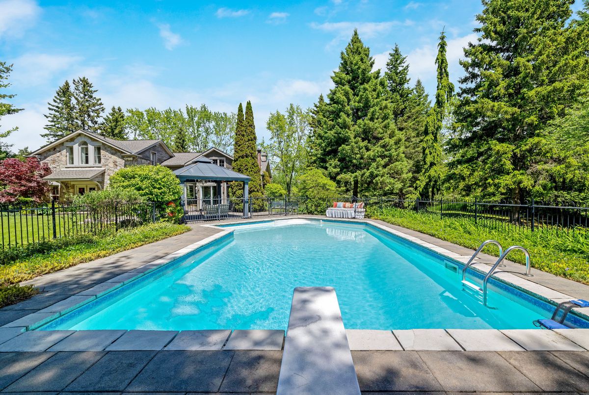 Escape to nature on this 7.96 acre private rural retreat, with close proximity to city amenities. Enjoy a tranquil, rural lifestyle without sacrificing convenience. This property oozes with charm inside and out. Set on almost 8 acres, the long winding driveway offers total privacy from the road and leads to a 4144 sq ft character home surrounded by mature trees and a meandering stream, a true nature-lovers paradise. This 2-storey home, originally built in 1860, had a 1424 sq ft stone addition added in 2002 (main floor great room + 2nd floor primary brm and ensuite) for the perfect blend of old and new. With too many updates to mention (see attached Addendum), this 4 bedroom, 4 bath home offers loads of living space inside and out. Interior features include an updated kitchen with island, main floor great room, large main floor office, 3-season sunroom, 3 fireplaces, heated floors, and main floor laundry. Two staircases lead to the upper level with 4 bedrooms including a lovely primary brm with vaulted ceilings, spacious ensuite and walk-through closet. The basement has a big rec room, 3-pce bath, lots of storage and a walk-up to the yard. The magnificent outdoor space boasts landscaped gardens, a huge stone patio with Gazebo & firepit, a fenced IG salt-water pool and plenty of usable grass area to entertain or relax in this peaceful private oasis. A large parking area at the top of the winding driveway and a separate oversized triple garage with workshop at rear offers ample room for multiple cars and recreational vehicles. Roof re-shingled 2018 (excl garage). Bonus low taxes of $3,032/yr due to Conservation Land Tax Incentive Program annual rebate. This distinctive rural property offers a rare blend of warmth, character and charm. Escape from the everyday without sacrificing the comforts of nearby amenities. Enjoy access to Bruce Trail off Canyon Rd and proximity to several conservation areas, Glen Eden ski hill, and golf courses. Less than 5 min drive to Hwy 401.
