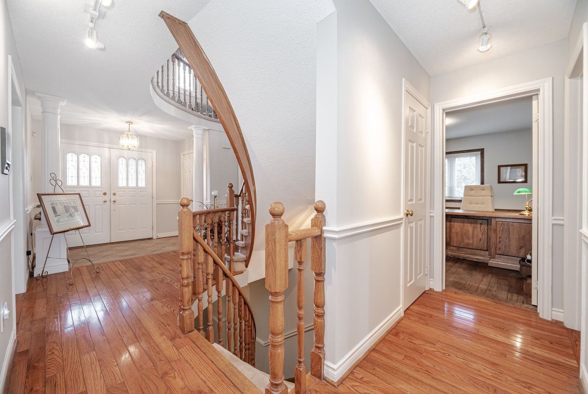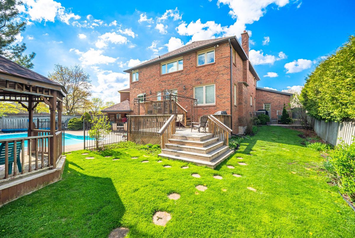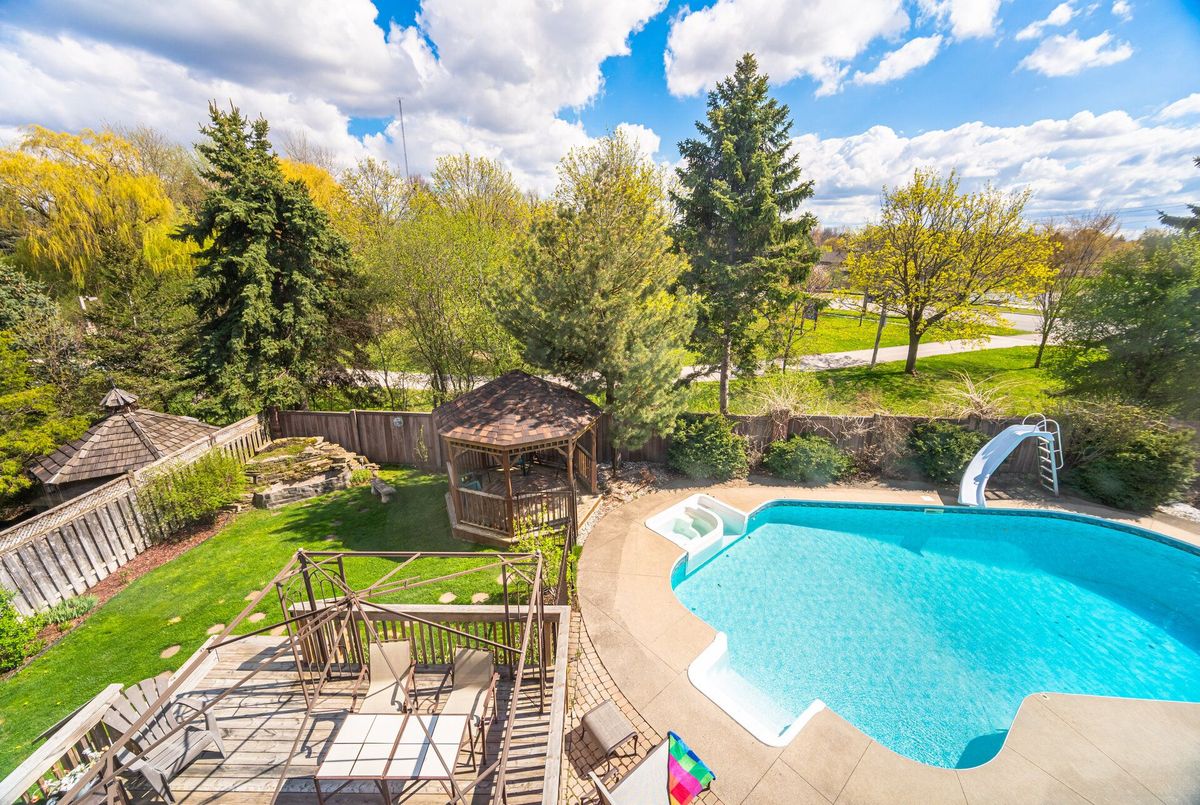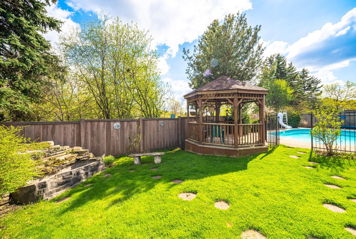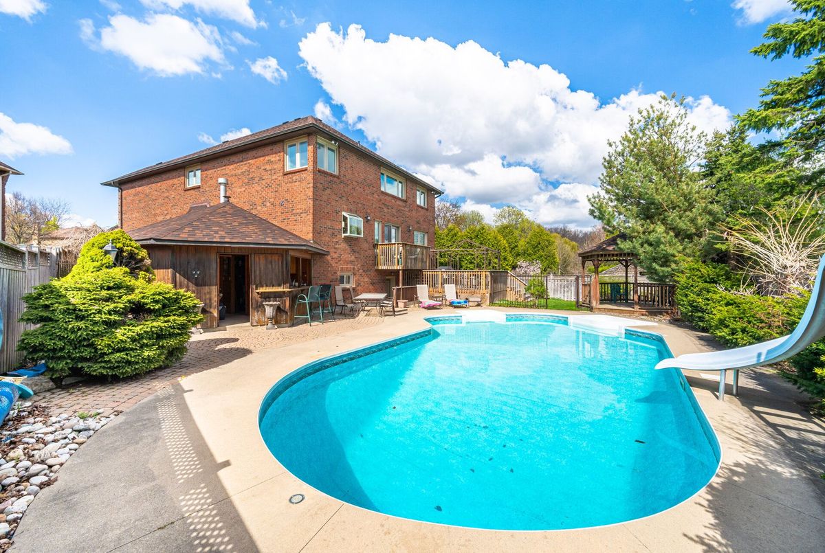 Welcome to premier family living in exclusive Stonegate community. This 4+2 bedroom home boasts over 5,000 of finished sqft and is being offered for the first time since being built. Its evident the original owners have had meticulous care for this home. The location at the end of quiet crescent has no through traffic, perfect for families with young children. 6 full parking spots in the driveway plus a triple car garage provide plenty of parking for you cars and activities. Walk in and be amazed with formal dining and family rooms with french doors. Unique and antique inspired 2 piece bath! No need to steal a bedroom for your office as this home as formal secluded office with oak built-ins! Open concept kitchen, breakfast and living area with convenient W/O to yard. Hardwood flooring throughout a well maintained spacious kitchen that is just waiting for your personal touches! Walk up spiral and elegant staircase to the second floor that boasts sitting area with tons of natural light! In all my years of real estate i haven't seen such a tremendous primary suite! Double doors open up to large bedroom area with dream W/I closet, large 5 piece ensuite with soaker tub and double vanity, and best of all a bonus space which works perfect for a newborn, additional office or if we are really dreaming, a second luxurious closet or make up room. On the second level there is 3 large additional bedroom and a secondary 5 piece bath, large enough to have multiple people getting ready in the morning at once! Finished basement with 9 ft ceilings has a full workshop, 2 additional rooms that could be bedrooms, full bathroom with marble flooring, and the perfect recreation space with built-in bar and fireplace. This bsmt has a walk-out and has tons of in-law suite potential! Stunning oasis backyard backing onto parkland with well maintained gardens, pool and pool house with 2 pce bath! This is where the fun happens! Dont miss out on this incredible opportunity!