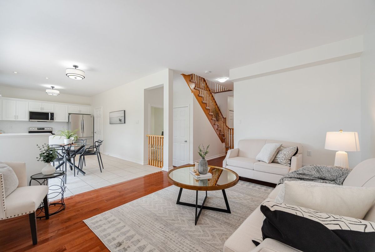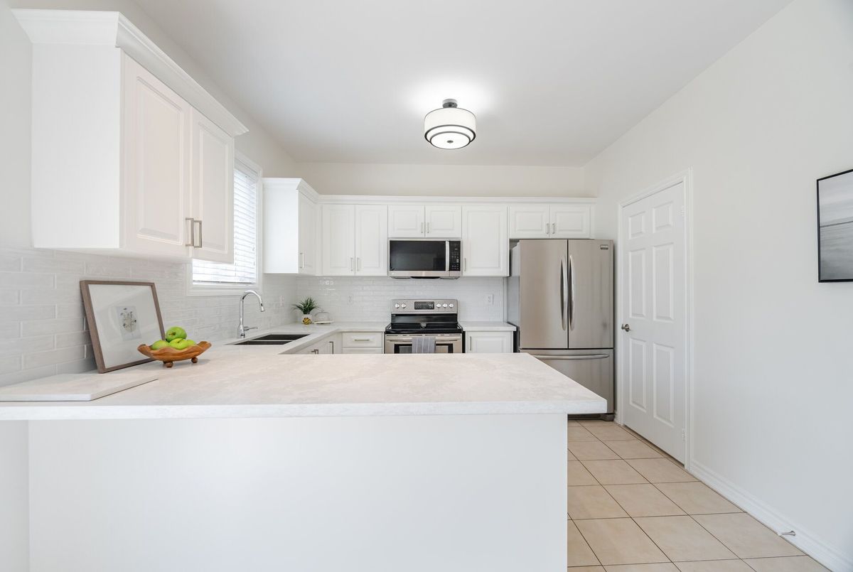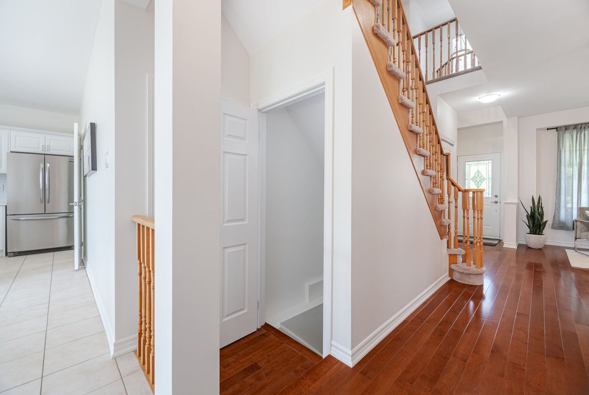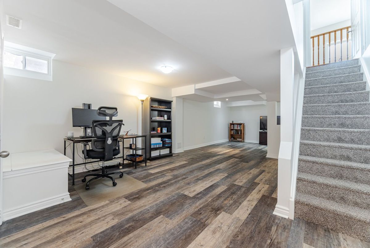 Welcome to this beautifully maintained all-brick home offering 2,105 square feet of thoughtfully designed living space, plus approximately 500 square feet in the finished basement. Situated on a quiet crescent and backing onto a tranquil pond, this home combines peaceful surroundings with unbeatable convenience. From the moment you arrive, you'll be greeted by a landscaped front yard and a welcoming front porch, the perfect spot to enjoy your morning coffee or unwind in the evening on this quiet, family-friendly street. Step inside to discover a bright open-concept layout with 9-foot smooth ceilings and hardwood floors throughout the main level. The spacious living room features a cozy gas fireplace, perfect for relaxing or entertaining. At the heart of the home, the renovated kitchen shines with quartz countertops, a stylish backsplash, and stainless-steel appliances, making it a true chefs delight. Upstairs, you'll find four generously sized bedrooms & 2 full bathrooms, including a huge primary suite with ensuite boasting a glass shower and soaker tub. The finished basement offers additional living space, ideal for a rec room, home office, or gym. Step outside to your private backyard retreat, where you'll enjoy an interlock patio perfect for summer BBQs, outdoor dining, or simply relaxing without looking at homes behind. Located just steps from Lions Park, with its splash pad, playground, and sports fields, this home is also close to schools, Milton Common Shopping Centre, and the GO Station, offering the perfect balance of family-friendly amenities and commuter convenience. Dont miss this rare opportunity to own a home that has it all: location, layout, and lifestyle!
