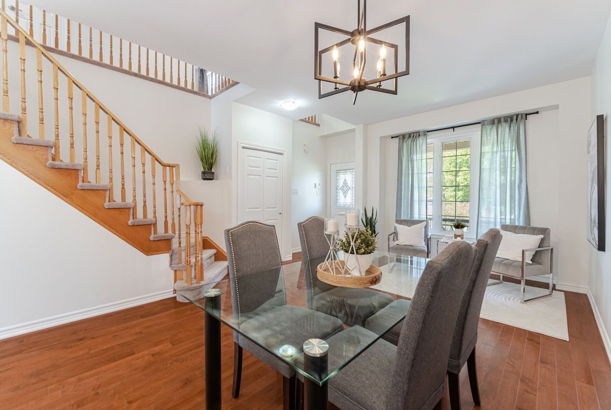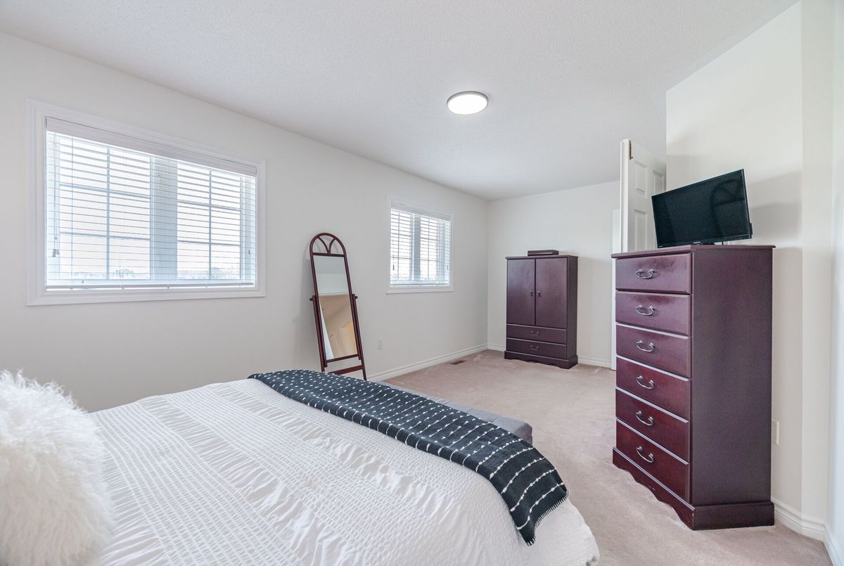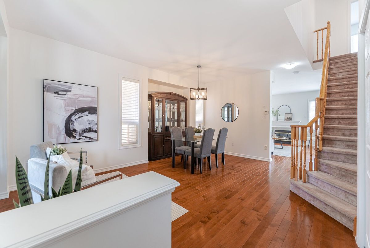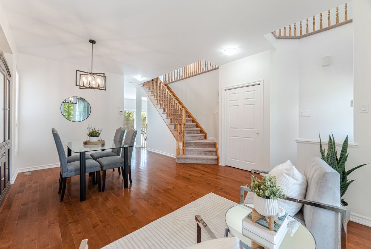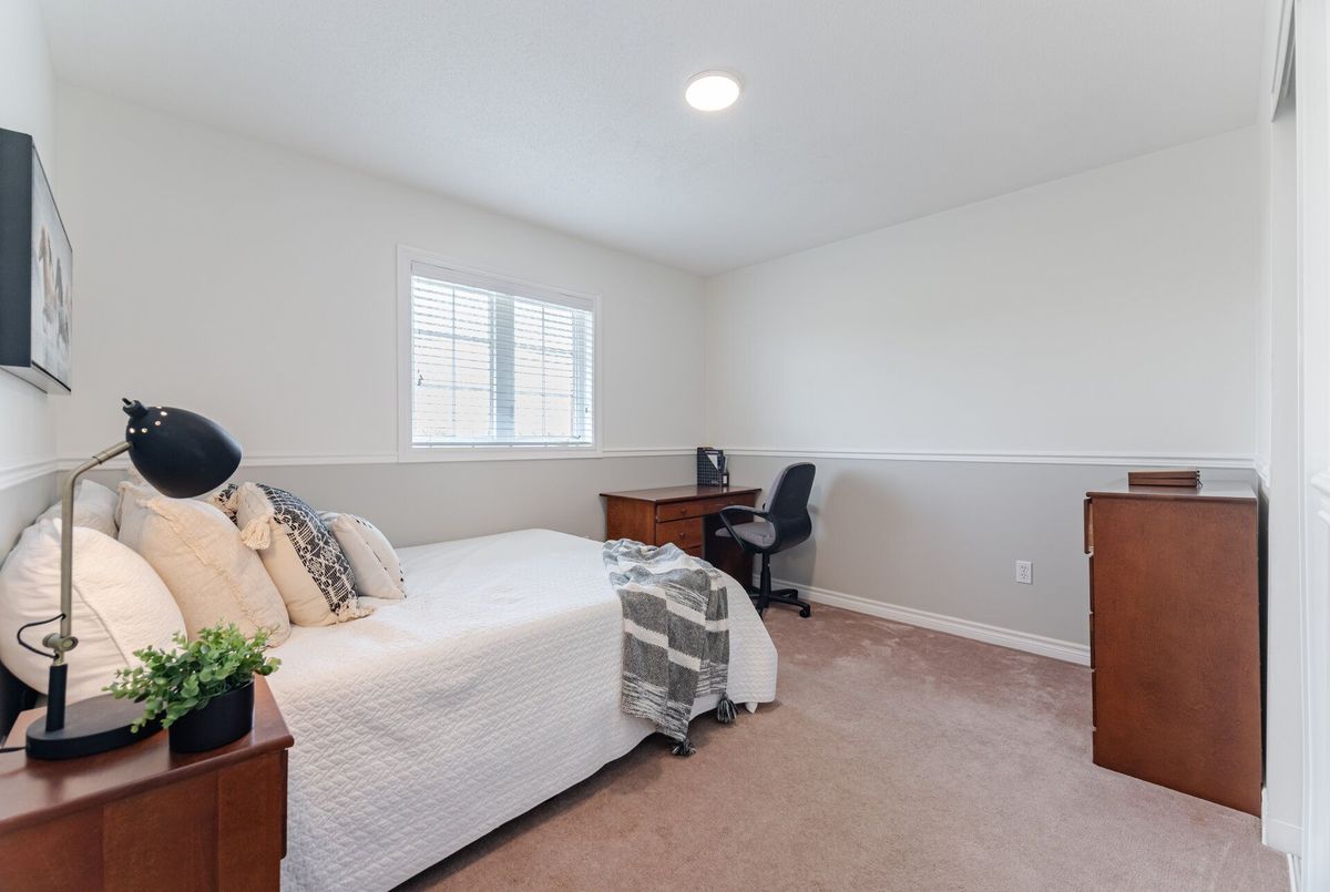 Welcome to this beautifully maintained all-brick home offering 2,105 square feet of thoughtfully designed living space, plus approximately 500 square feet in the finished basement. Situated on a quiet crescent and backing onto a tranquil pond, this home combines peaceful surroundings with unbeatable convenience. From the moment you arrive, you'll be greeted by a landscaped front yard and a welcoming front porch, the perfect spot to enjoy your morning coffee or unwind in the evening on this quiet, family-friendly street. Step inside to discover a bright open-concept layout with 9-foot smooth ceilings and hardwood floors throughout the main level. The spacious living room features a cozy gas fireplace, perfect for relaxing or entertaining. At the heart of the home, the renovated kitchen shines with quartz countertops, a stylish backsplash, and stainless-steel appliances, making it a true chefs delight. Upstairs, you'll find four generously sized bedrooms & 2 full bathrooms, including a huge primary suite with ensuite boasting a glass shower and soaker tub. The finished basement offers additional living space, ideal for a rec room, home office, or gym. Step outside to your private backyard retreat, where you'll enjoy an interlock patio perfect for summer BBQs, outdoor dining, or simply relaxing without looking at homes behind. Located just steps from Lions Park, with its splash pad, playground, and sports fields, this home is also close to schools, Milton Common Shopping Centre, and the GO Station, offering the perfect balance of family-friendly amenities and commuter convenience. Dont miss this rare opportunity to own a home that has it all: location, layout, and lifestyle!