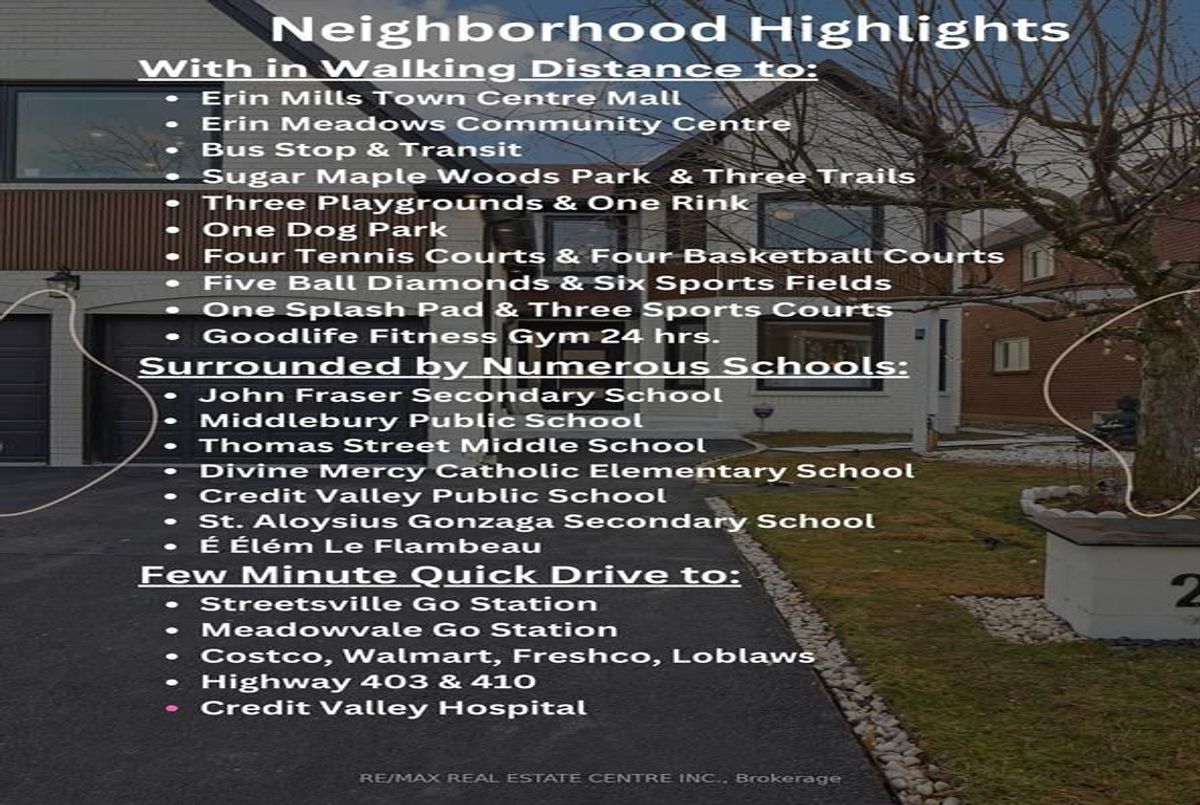 Offers Welcome Anytime. **With Over $ 350,000 in Upgrades** Welcome to This Fully Renovated 5 + 3 Bedroom Massive & Spacious Detach Home Boasting Close to 4,500 Square Feet of Luxury Living Space With An Unmatched Contemporary Modern Design. Walking Dist. To The Best Schools In Mississauga - John Fraser, Gonzaga, Middlebury Elementary, Thomas Middle, Divine Mercy. And To Complement the 8 Bedrooms, the Home consists of 5 Fully Renovated Washrooms. Starting With The Upper Level, It comes With 5 Huge Bedrooms with 3 Full Washrooms (of which 2 are Ensuites). A Fully Finished 3 Bedroom Basement. Talking about the Upgrades they are Endless in this House with Exquisitely Renovated Inside & Out. Home Boasts Contemporary Elegance, Spectacular Open Concept Layout W/ Remarkable Innovative Touches Throughout Including Stunning Chef's Kitchen With Built-In Appliances, Gorgeous Quartz Island, Abundant Elegant Custom Cabinetry Alongside With New Windows Overlooking Beautifully Fenced Backyard & Fountain. Other Luxury Features Include A Solid Wood Curved Staircase With Motion Sensor Lights, New Doors, New Energy Efficient Windows, Hardwood Floors, Main Floor Laundry, Fully Landscaped Front & Backyard, New Light Fixtures & Many More. Splendid Design Complemented By Huge Windows Allowing Ample Natural Light In Throughout The House. All the Stainless Steel Appliances are 1 Year Old and are Smart, Energy Efficient with Wifi Connectivity to Remotely Access Them. Talking About Location, this Home is Situated in the Highly Desirable Neighborhood of Central Erin Mill. The Location Cant be Any Better 2 Minutes Away from Erin Mills Mall Town Centre, Erin Meadows Community Centre & Library Highway 407, 403 Few Minute Drive. Walking Distance to Bus Stop. Square One is 15 min Drive Away. 10 Min Drive to Clarkson Go, Streetsville Go and Meadowvale Go. All Appliances on Upper Level are Stainless Steel are 1 Year (Stove , Dishwasher, Fridge, Microwave, Rangehood, Washer & Dryer).