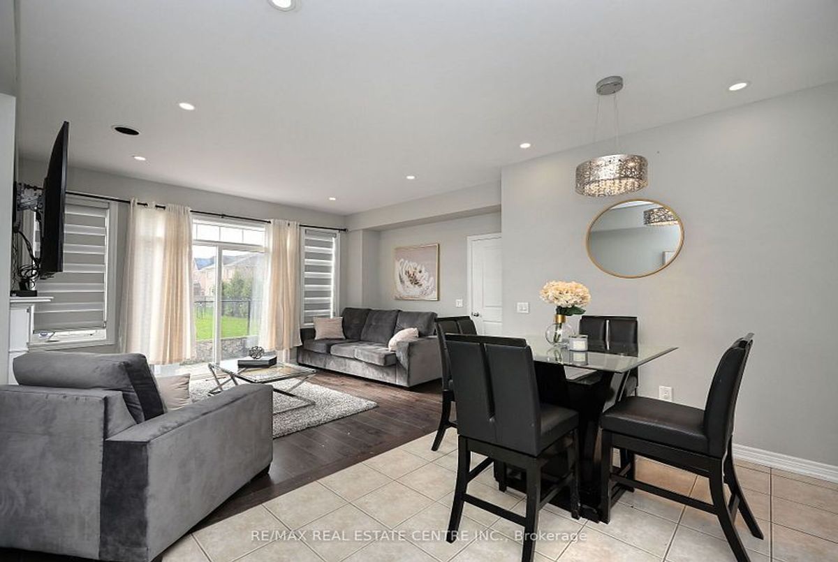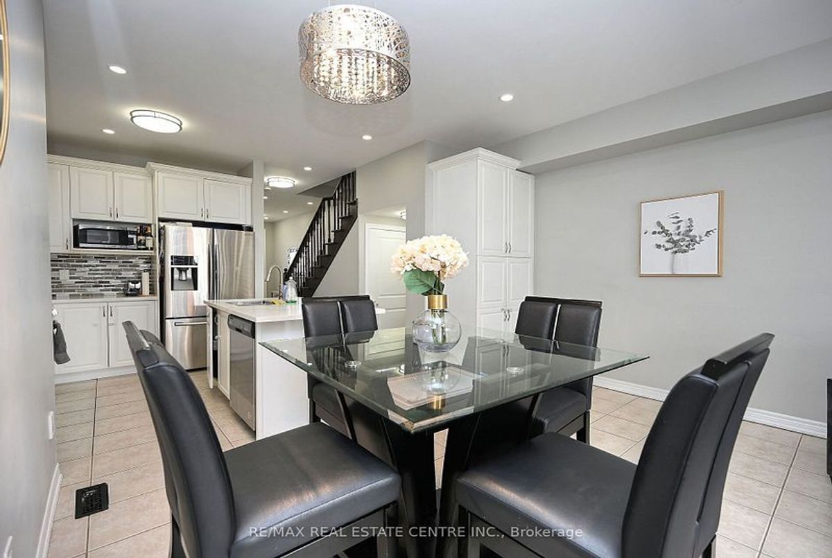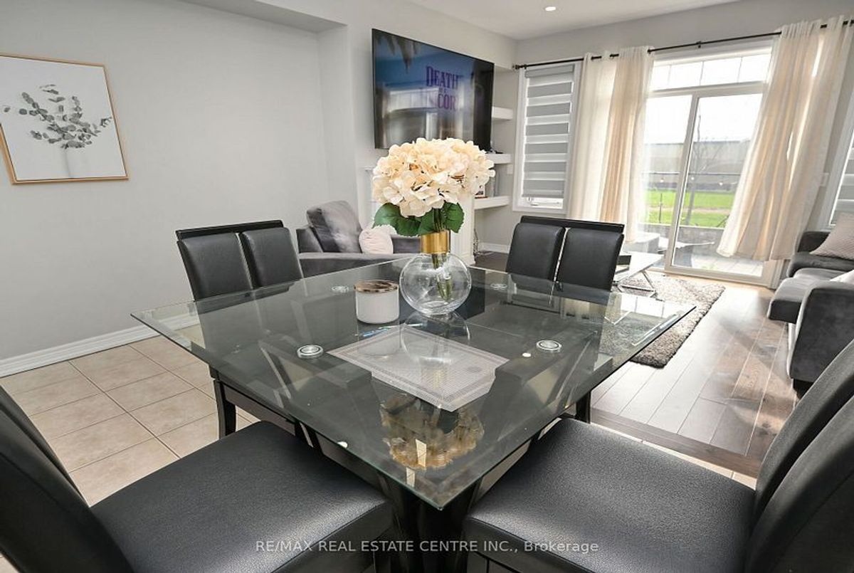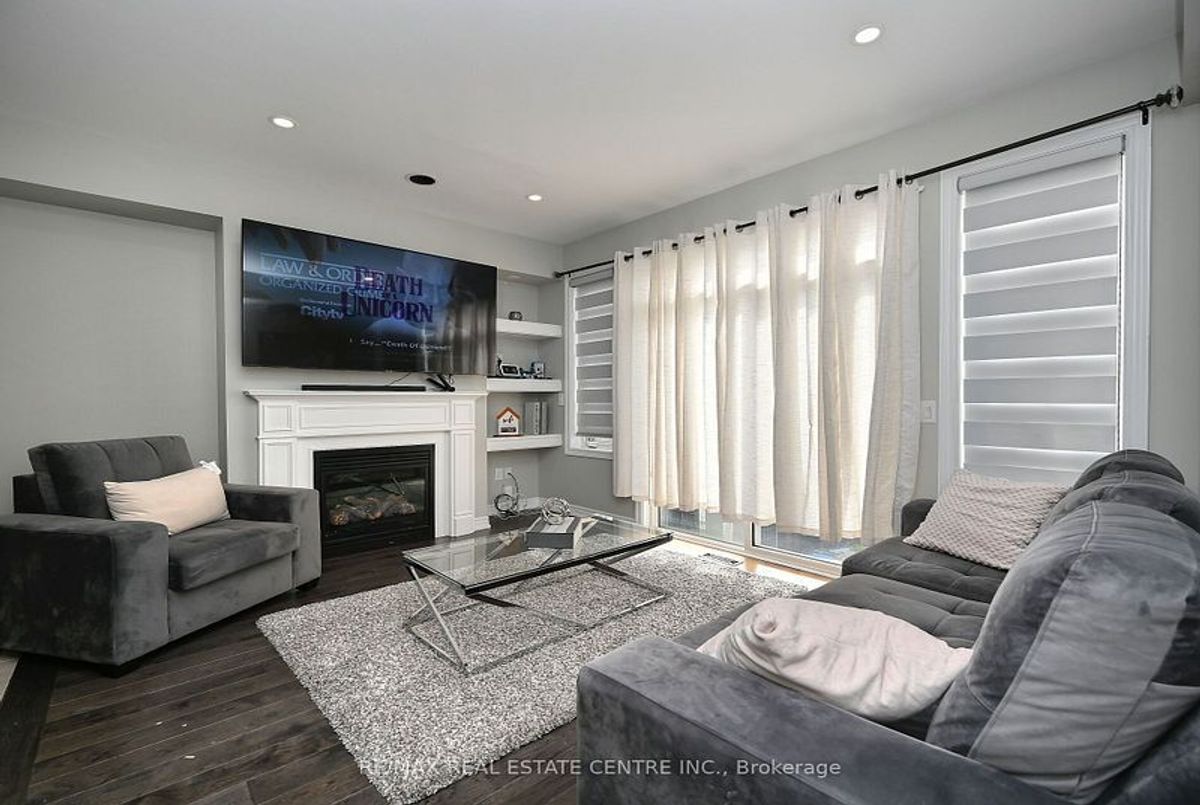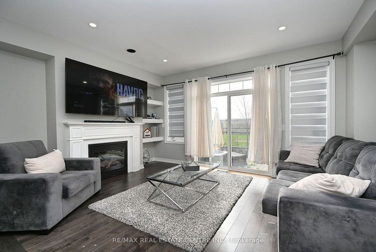 This well-maintained 3-bedroom, 2-storey freehold townhouse in the Mount Pleasant community features 9-foot smooth ceilings on the main floor, pot lights, and an open-concept layout. The kitchen includes a glass mosaic backsplash, porcelain tile flooring, a large centre island with quartz countertops, and stainless steel appliances. The living room has a gas fireplace, built-in niche, and walkout to a stone patio with no home behind. Upstairs offers laminate flooring throughout, a stained oak staircase, and a primary bedroom with a 6-piece ensuite featuring double sinks, granite countertop, soaker tub, glass shower, and a walk-in closet. Two additional bedrooms share a 4-piece bathroom with granite counter. The basement is unfinished and ready for future use.