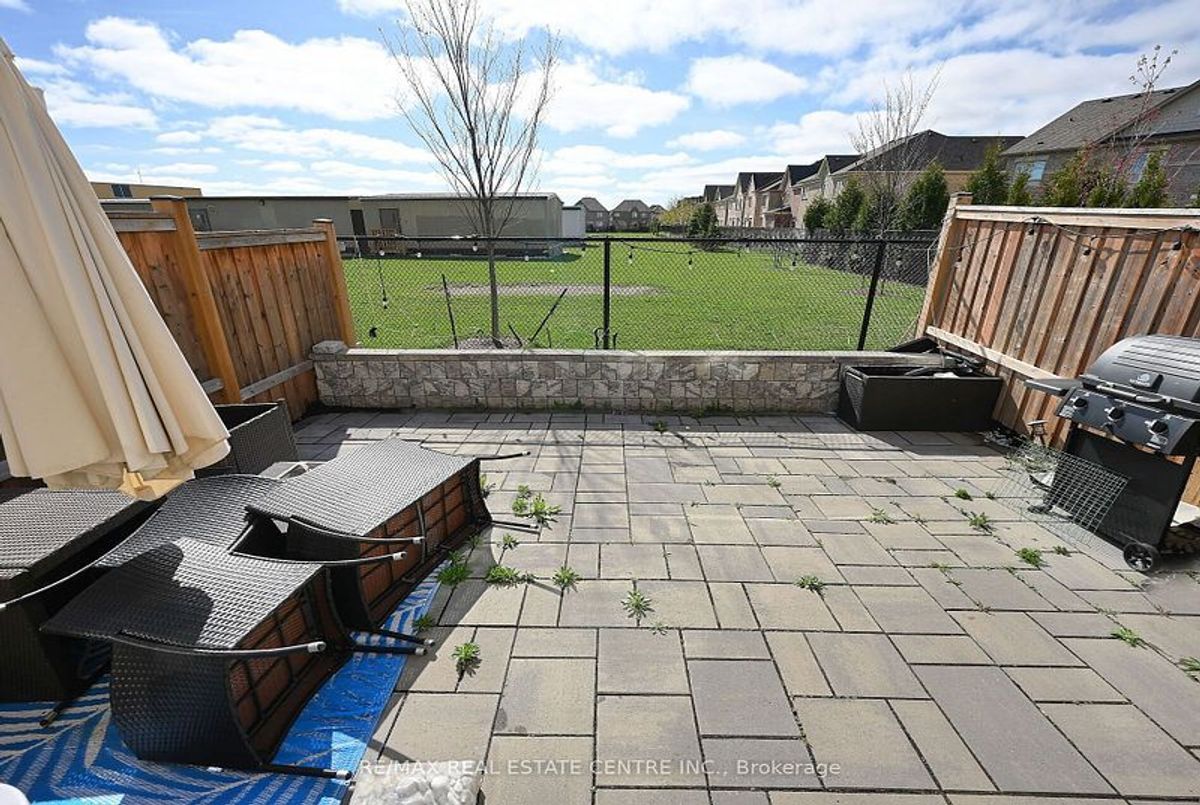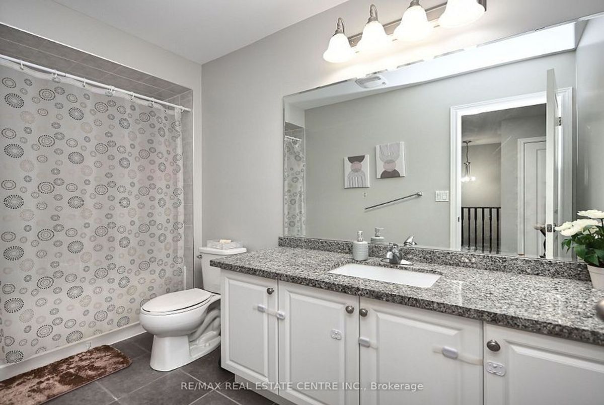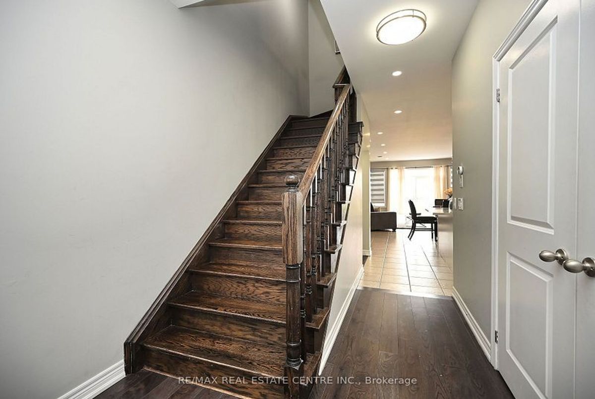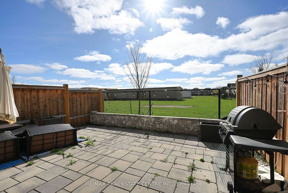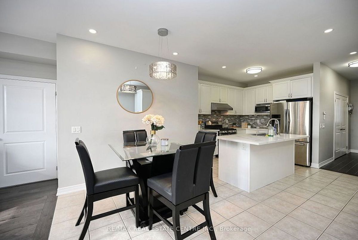 This well-maintained 3-bedroom, 2-storey freehold townhouse in the Mount Pleasant community features 9-foot smooth ceilings on the main floor, pot lights, and an open-concept layout. The kitchen includes a glass mosaic backsplash, porcelain tile flooring, a large centre island with quartz countertops, and stainless steel appliances. The living room has a gas fireplace, built-in niche, and walkout to a stone patio with no home behind. Upstairs offers laminate flooring throughout, a stained oak staircase, and a primary bedroom with a 6-piece ensuite featuring double sinks, granite countertop, soaker tub, glass shower, and a walk-in closet. Two additional bedrooms share a 4-piece bathroom with granite counter. The basement is unfinished and ready for future use.