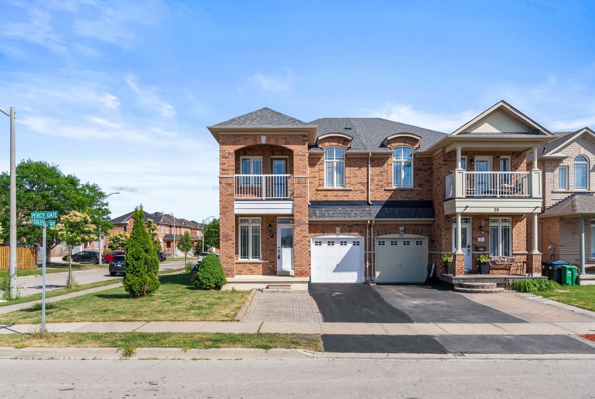 Welcome To 27 Percy Gate! A Gorgeous 4-Bedroom Solid Brick Corner Lot Home Nestled In The Desirable Fletchers Meadow Community Of Brampton. Situated On A Quiet, Family-Friendly Street With No Neighbours On One Side Or In Front, This Beautiful Property Features A Covered Front Porch And A Second-Story Balcony, Perfect For Morning Coffee Or Evening Wine. Inside, You'll Find A Spacious Layout With Separate Living, Dining, And Family Rooms, A Cozy Fireplace, And An Abundance Of Natural Light Streaming Through Large Windows. The Stunning Kitchen Offers High-End Stainless Steel Appliances, Ample Cabinetry, A Breakfast Island, And A Walkout To A Private, Serene Backyard, Ideal For Relaxing Or Entertaining. Upstairs Features 4 Generously Sized Bedrooms And Two 2 Bathrooms. The Spacious Primary Bedroom Includes A Private En-Suite With Double Sinks, A Jacuzzi Tub & Its own Walk-In Closet. Beautiful & Well-Kept Home, Conveniently Located Near McLaughlin And Wanless, With Easy Access To Highways 410, 407, 401, And 403, As Well As Brampton Transit, The Future Hurontario LRT, And Mount Pleasant GO Station. Walking Distance To Reputable Schools Like St. Lucy Catholic Elementary And Public Schools, And Just Minutes From The Cassie Campbell Community Centre, Parks, Grocery Stores, Restaurants, And Places Of Worship. Come And Fall In Love With This Beautiful Home! Join Us For The Open House This Saturday And Sunday From 2 To 4 PM!