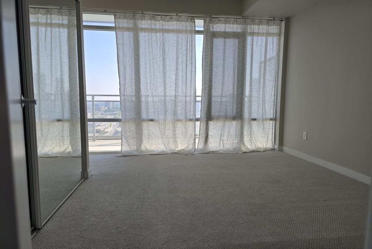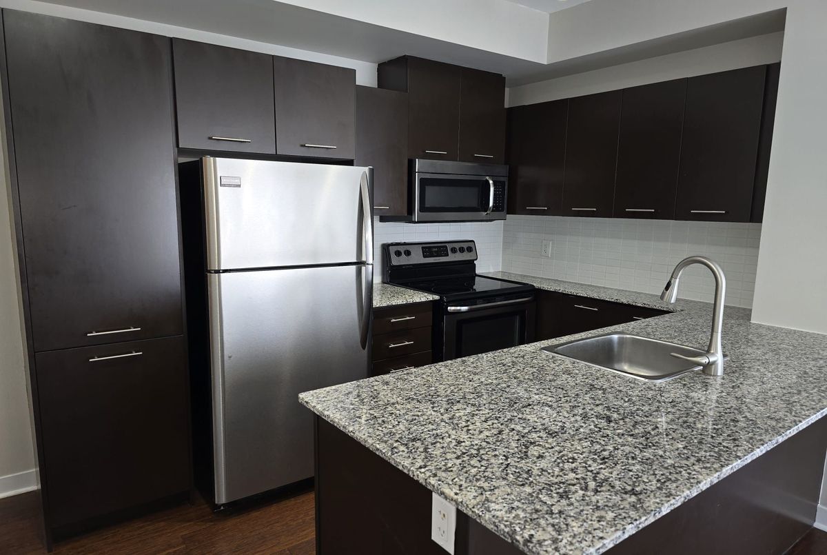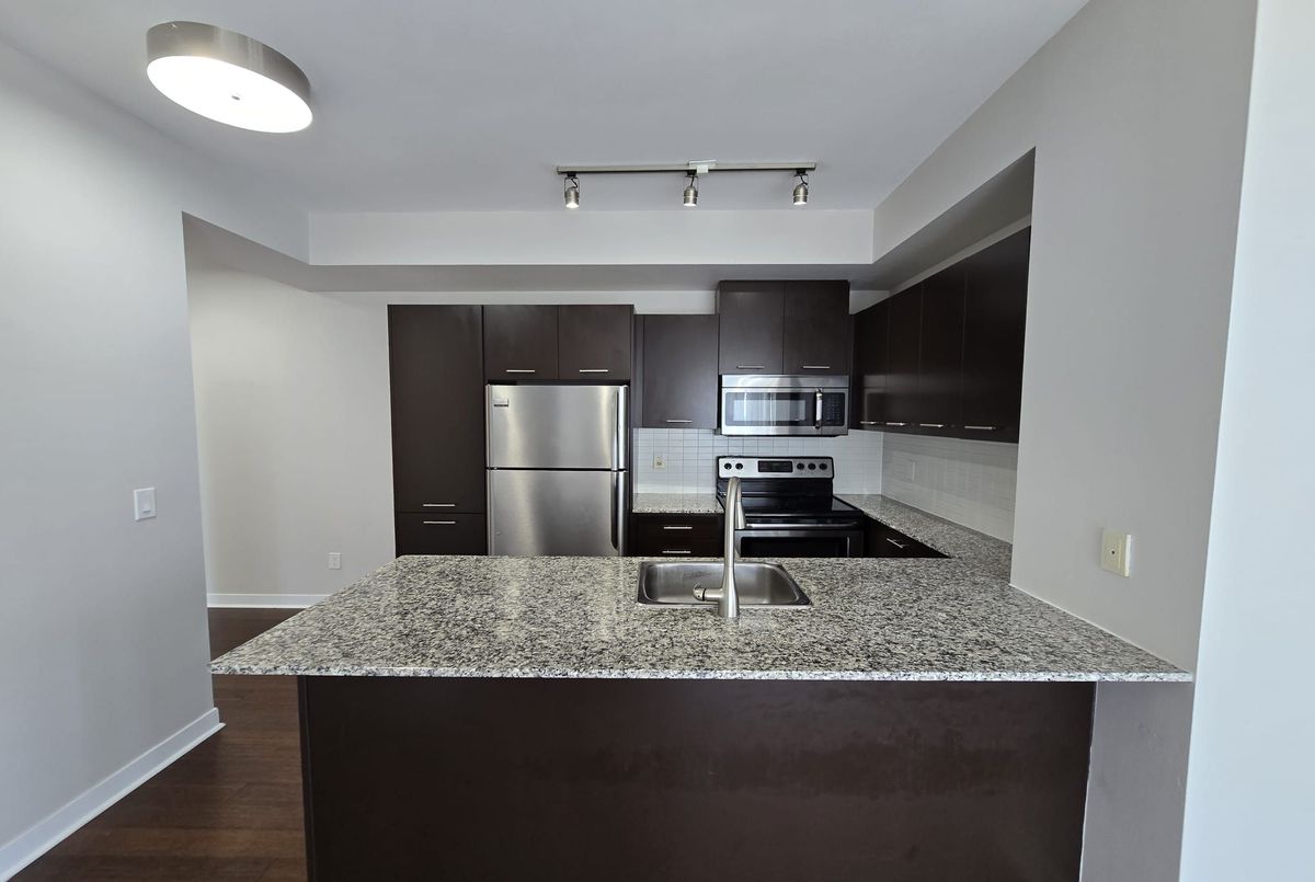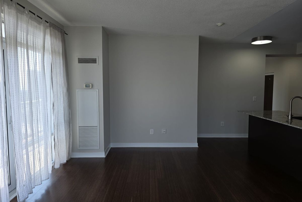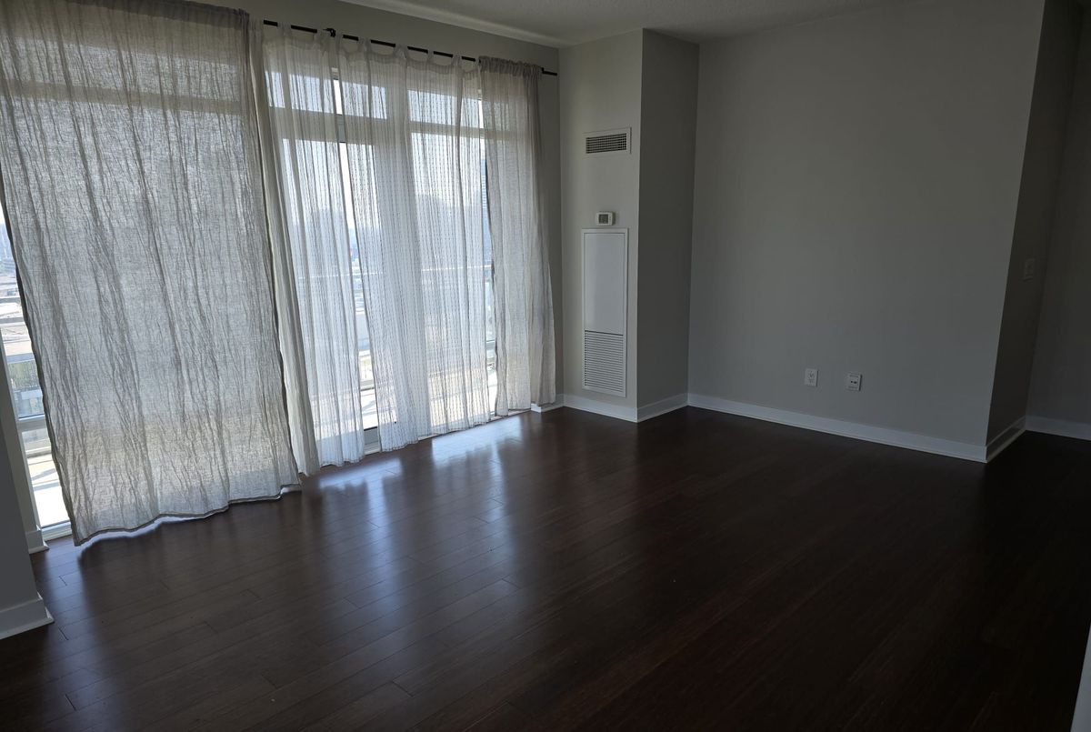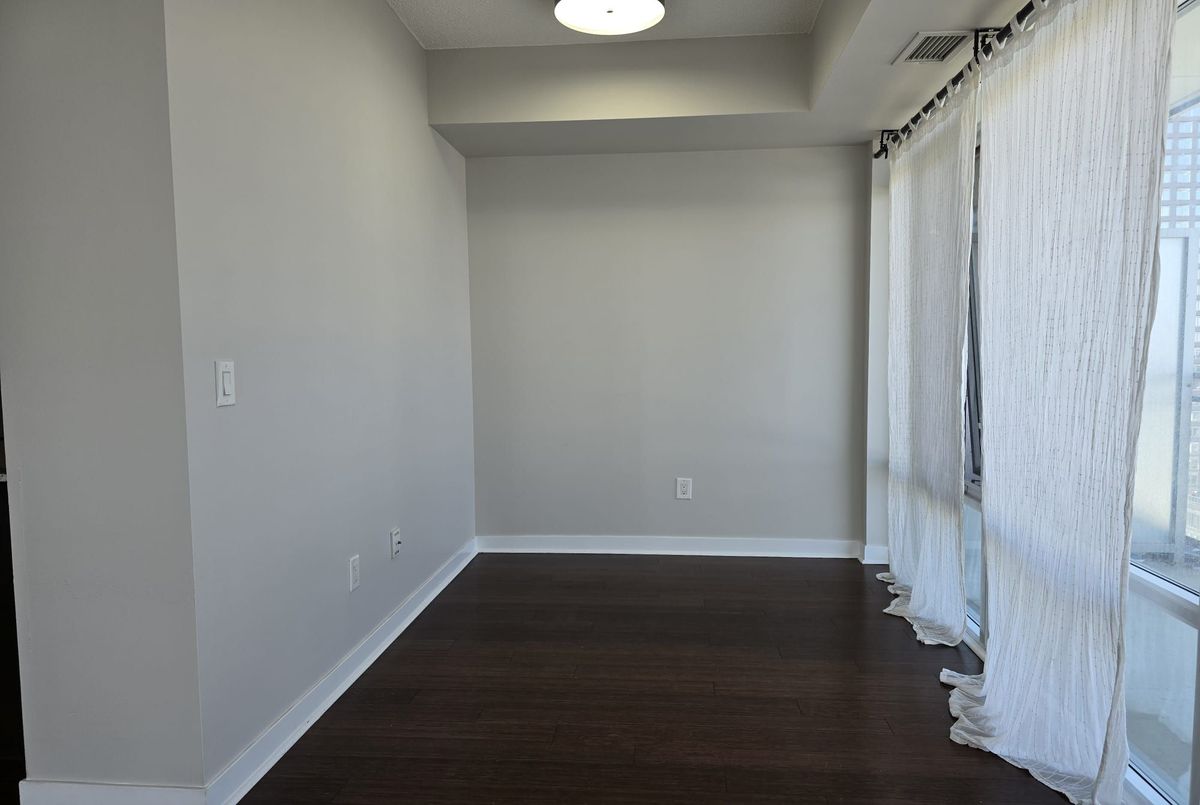 Immaculate and elegant 1 Bed + Den with 2 Baths, 716 square feet of living space + over 300 sq ft. Balcony, Corner Unit nestled on the 17th. Floor. of an Excellent building located in the Downtown Mississauga (the City Centre). Built in 2012. ***A great investment property or for enjoying yourself***. ***Located just across Sheridan College Campus***. Comes with immense wrap around balcony offering stunning panoramic unobstructed North/ Easterly view. Enjoy both the sunrise and the sunset. This Beauty is bright like crystal complemented with 9 ft. Ceiling. Floor to ceiling windows all over. Great Open concept Layout. Generous sized Master Bed is appointed with its own private 4 Pc Bath. Large Den can be put to a number of uses. Modern Kitchen features stainless Steel Appliances and a lot of closets. Hardwood Floors add texture and luxury to this elegant place. 2 Pc Bath in the foyer is also a great feature. Ensuite Front Loader Laundry. Comes with one underground parking and one owned locker. Freshly Painted in a beautiful Neutral color. Updated Light fixtures. Unbeatable city centre Location. Close to all amenities. Just across from Sheridan College. steps to Public Transit. A few minutes walk to Square One Mall, Library, celebration square, Restaurants and much much more. Shows A+++. Please do yourself a favor by visiting it asap. This place offers an unmatched clear view from the entire apartment. A great home for fresh starters, students, professionals, retirees and all. Priced to Sell. Freshly painted.
