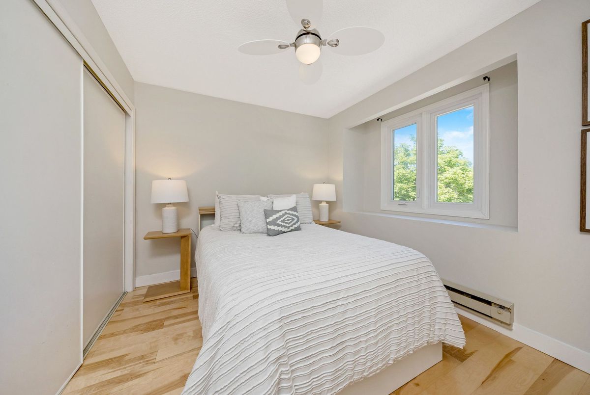 Welcome to a rare opportunity in the highly coveted Sherwood Heights neighbourhood. This 3+1 bedroom, 2.5 bathroom townhouse offers the perfect blend of comfort, style, and functionality in a quiet, family-friendly community. Step inside to find a freshly painted interior and an updated kitchen that flows seamlessly into the main living and dining areas, ideal for both everyday living and entertaining. The spacious layout offers plenty of natural light and a warm, inviting atmosphere throughout. Upstairs, the standout feature is the exceptionally large primary suite with Juliette balcony, complete with a luxurious 5-piece ensuiteyour own private retreat at the end of the day. Two additional bedrooms offer flexibility for family, guests, or a home office, while the fully finished lower level includes a bonus room that can serve as a fourth bedroom, gym, or media space. Outside, enjoy a maintenance-free backyard finished with premium turf, offering a private outdoor space perfect for relaxing or entertaining without the hassle of upkeep. The home also boasts parking for four vehicles and includes an EV plug for charging station, a rare and valuable feature for modern living. Ideally located near top-rated schools, parks, and local amenities, this home truly has it all. Whether you're looking to upsize, downsize, or settle into one of the areas most desirable communities, this is your chance to own a stunning home in Sherwood Heights.