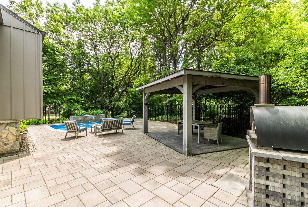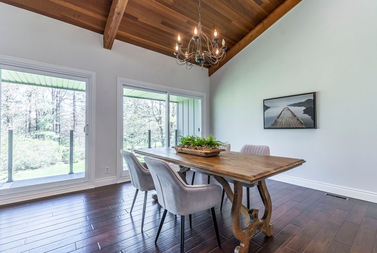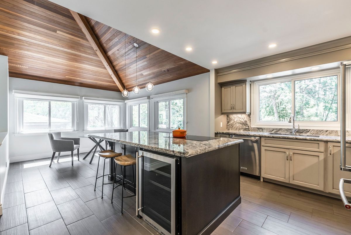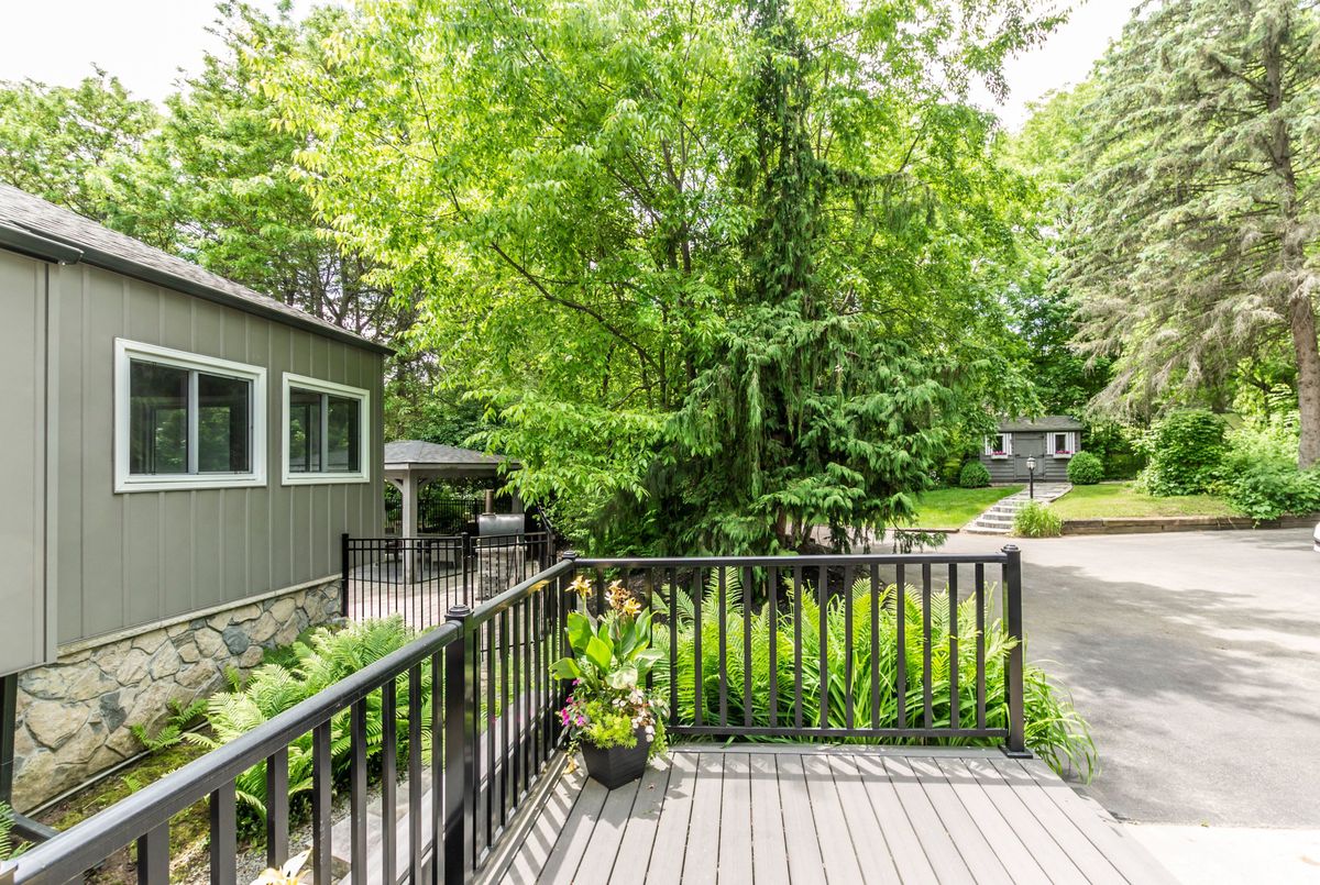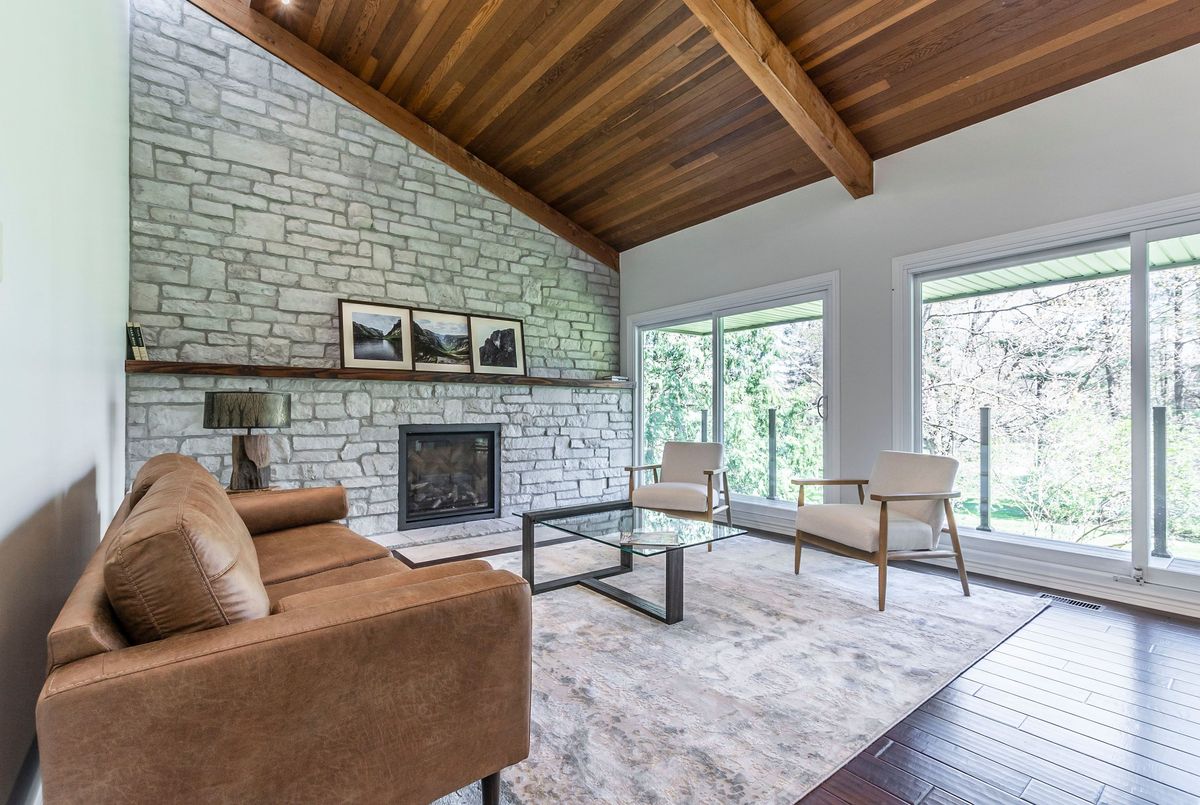 Welcome to this stunning architect-designed home nestled in the enchanting village of Kilbride, where modern elegance meets the tranquility of nature. This unique property is a true sanctuary, offering an exceptional blend of comfort, style, and functionality, making it the perfect retreat for discerning buyers. With an abundance of windows throughout the home, the connection to the outdoors is palpable. Experience the beauty of the forested landscape, creating a peaceful backdrop for everyday living. The thoughtful design allows natural light to flood every corner, enhancing the inviting atmosphere. This home features a distinctive layout that sets it apart from the ordinary. The vaulted ceilings in the main living areas amplify the sense of space and grandeur, while the design promotes an effortless flow between the kitchen, dining, & living spaces. The thoughtfully designed main floor boasts a primary bedroom suite complete with an ensuite bathroom, ensuring privacy & comfort. Enjoy the ease of single-level living with the added bonus of a second primary bedroom on the lower level, which features a walkout to the picturesque yard. Culinary enthusiasts will love the oversized kitchen, meticulously renovated in 2017. Equipped with modern appliances, ample counter space, & an abundance of cabinetry, this kitchen is perfect for cooking up culinary masterpieces or entertaining guests. Dive into relaxation with your very own saltwater pool, surrounded by lush greenery. Enjoy leisurely afternoons soaking in the sun or hosting memorable gatherings with family and friends. The serene ambiance and natural beauty create a private paradise right in your backyard. The property includes a spacious three-bay garage, providing plenty of room for vehicles, recreational equipment, and additional storage. This is perfect for hobbyists or those needing extra space for their collections. Surrounded by a stunning forested property, this home is a haven for nature lovers
