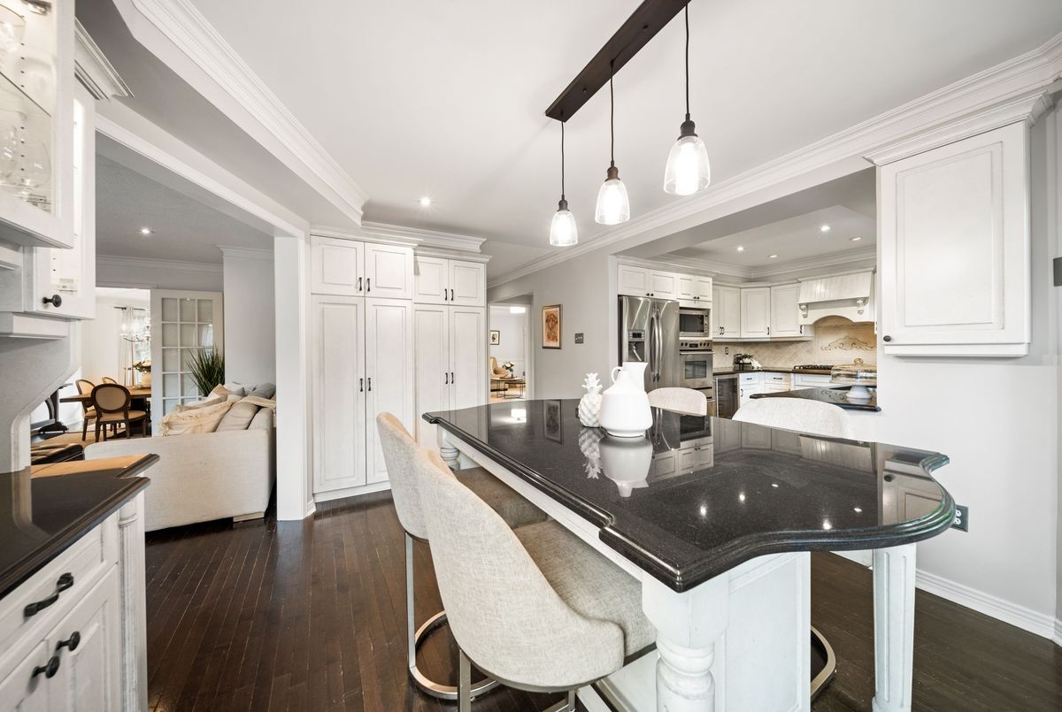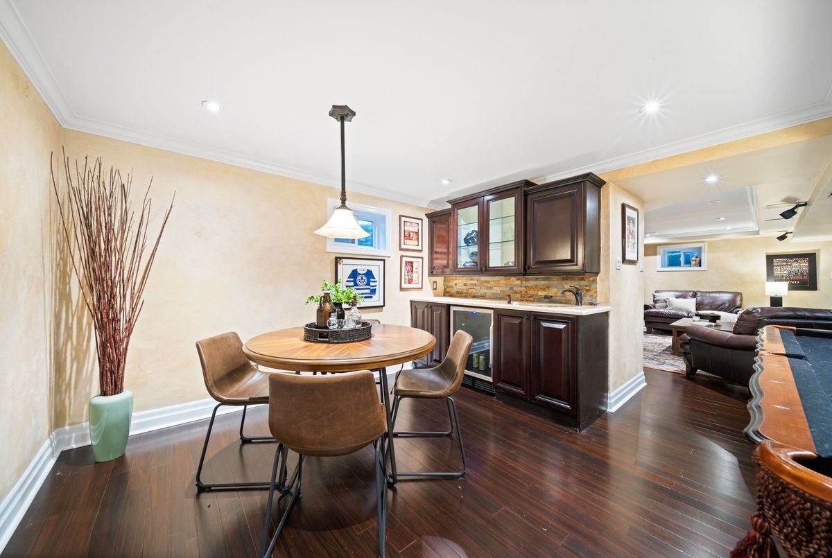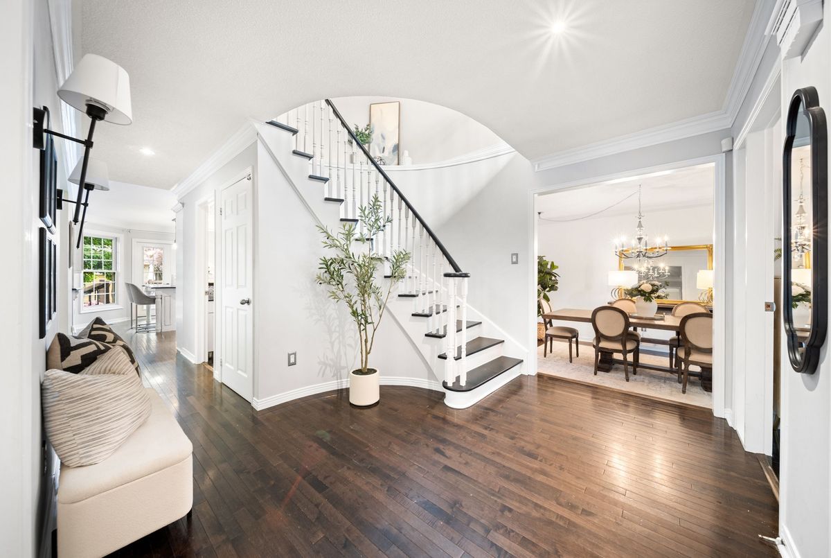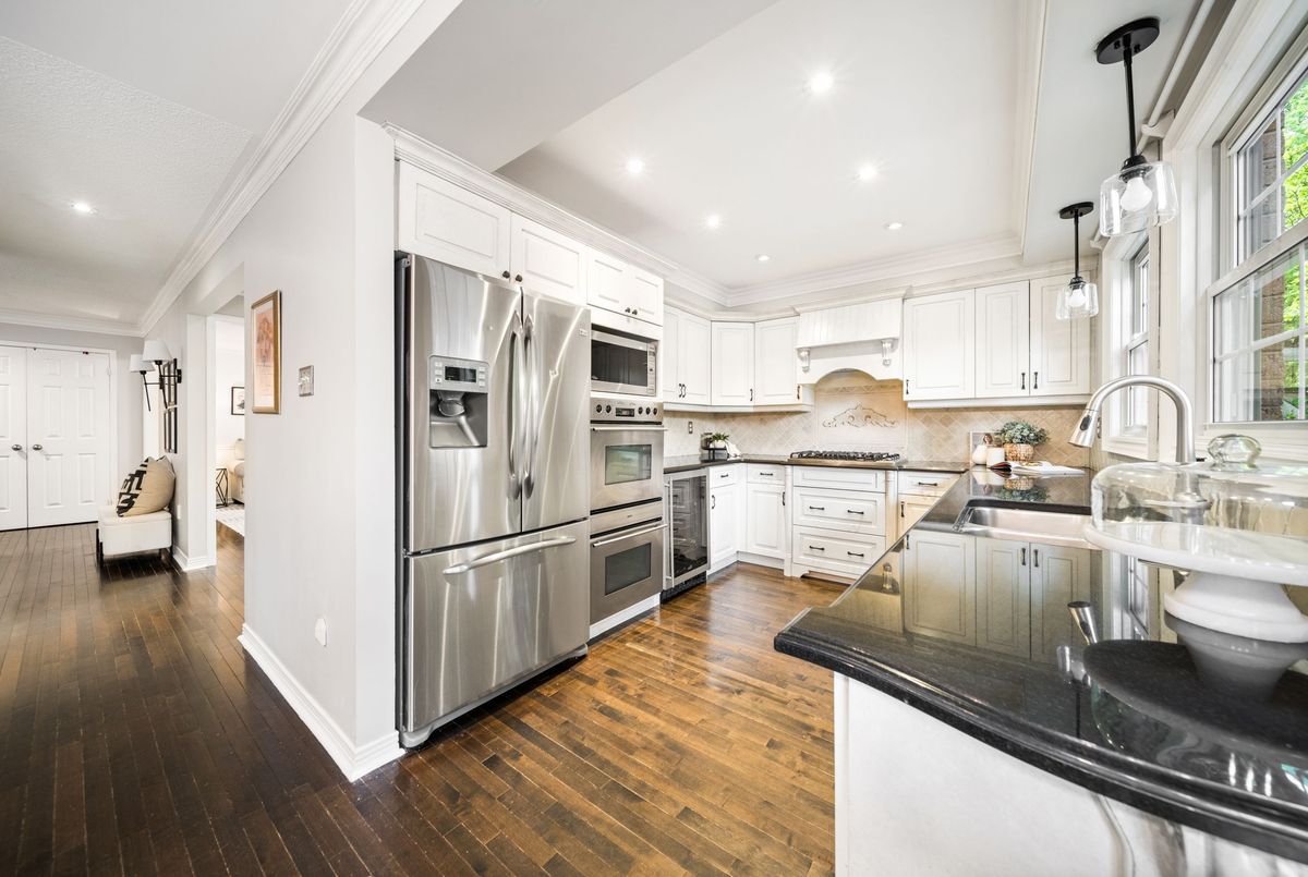 Nestled on a quiet coveted court in sought-after Millcroft golf neighbourhood, this exquisite residence offers stunning curb appeal with mature landscaping, elegant design and parking for six vehicles. Step onto the charming front porch and follow the flagstone walkway into a beautifully appointed interior featuring hardwood flooring throughout. The bright, formal living room welcomes you with oversized windows inviting natural light, while the elegant dining room showcases a striking bay windowperfect for hosting gatherings. The open-concept family room with a cozy fireplace, flows seamlessly into the updated kitchen. Designed for both function and style, it offers white cabinetry, granite countertops, full-size eat-in island, gas stove, Bosch double wall ovens, a coffee servery and a separate pantry. Wrap-around windows provide scenic views of the backyard and fill the space with light. A spacious laundry room with side yard access and a second fridge, plus a stylish powder room, complete the main floor. Upstairs, youll find 4 generously sized bedrooms, 2 beautifully renovated bathrooms, and a versatile loft spaceideal as a reading nook or home office. The huge primary suite is a true retreat, featuring double-door entry, 3 large windows, a walk-in closet and a spa-like ensuite with a soaker tub, double vanity, granite counters and a premium glass steam shower. The professionally finished lower level offers exceptional bonus living space. Enjoy a large rec room, home gym area, full bathroom, wet bar, wine cellar and potential to add a fifth bedroom if desired. Step outside to your private backyard sanctuaryprofessionally landscaped and surrounded by mature trees. This outdoor oasis features a large entertainers deck, patio, fire pit area, maintenance-free turf, and garden beds, creating a peaceful, cottage-like setting right at home. Meticulously maintained and truly move-in readyjust minutes to top-rated schools, parks, golf, shopping, and every convenience.