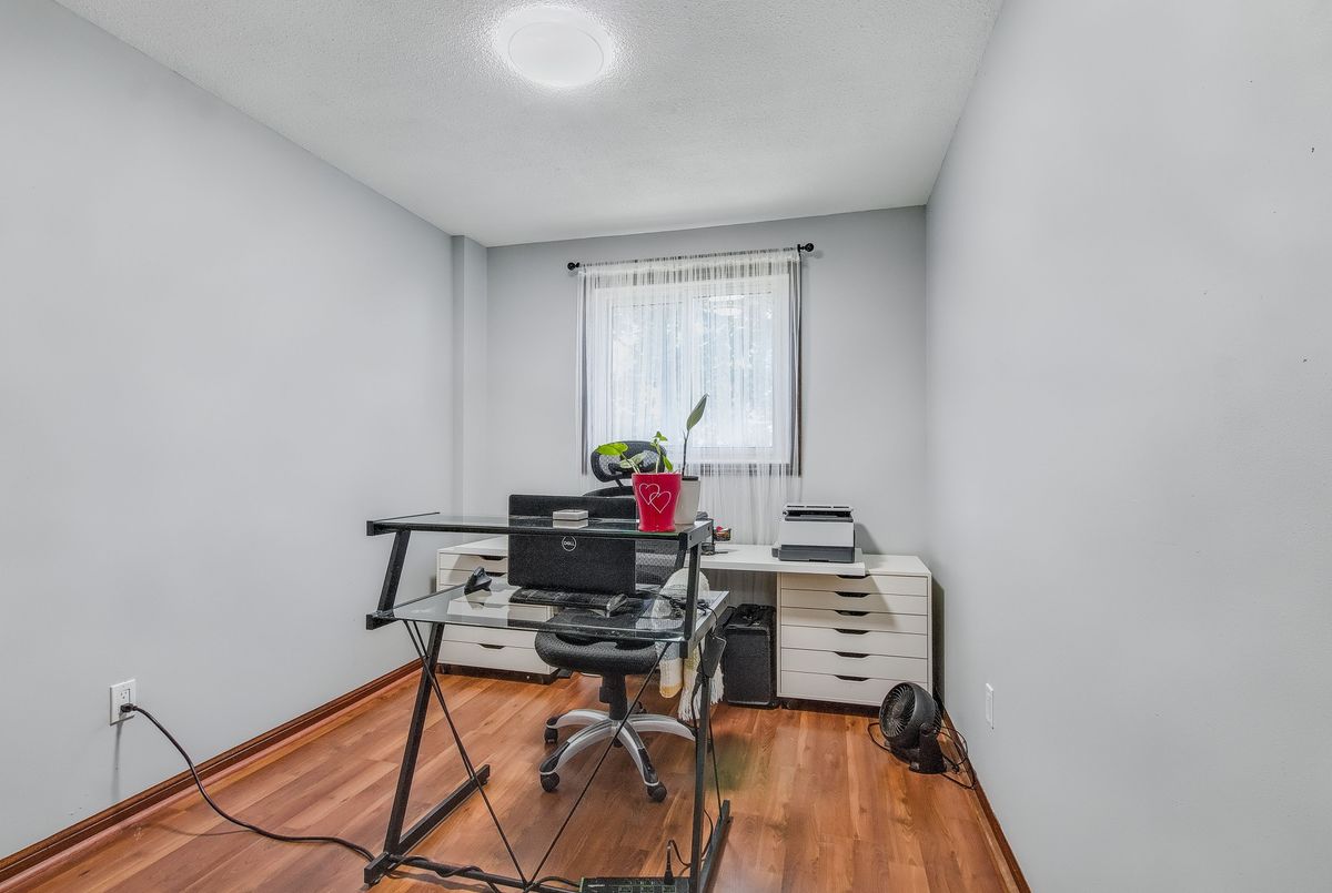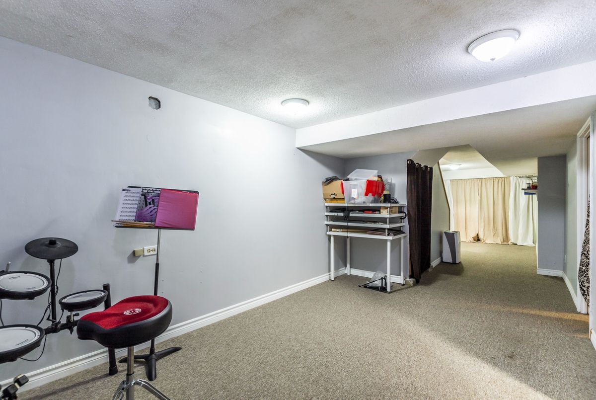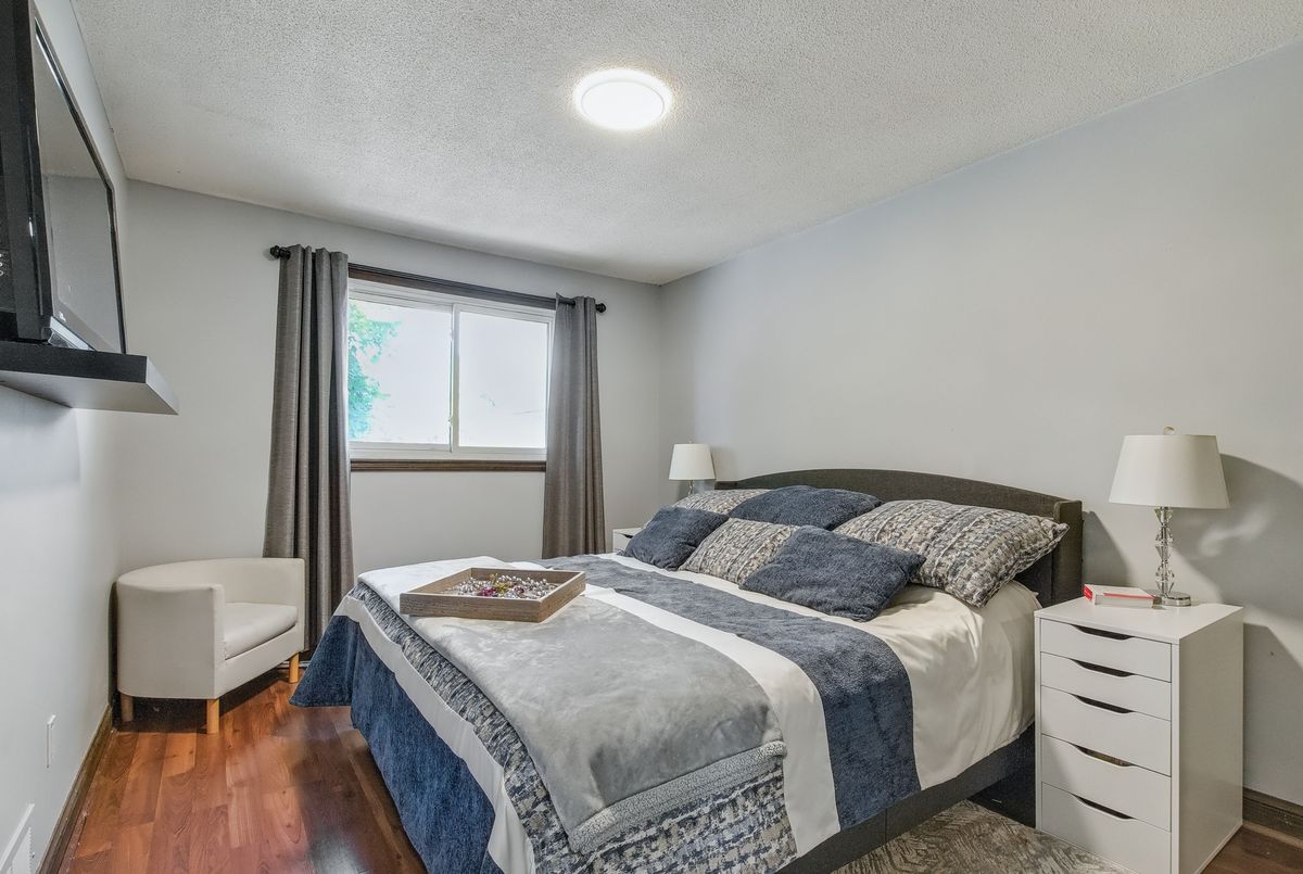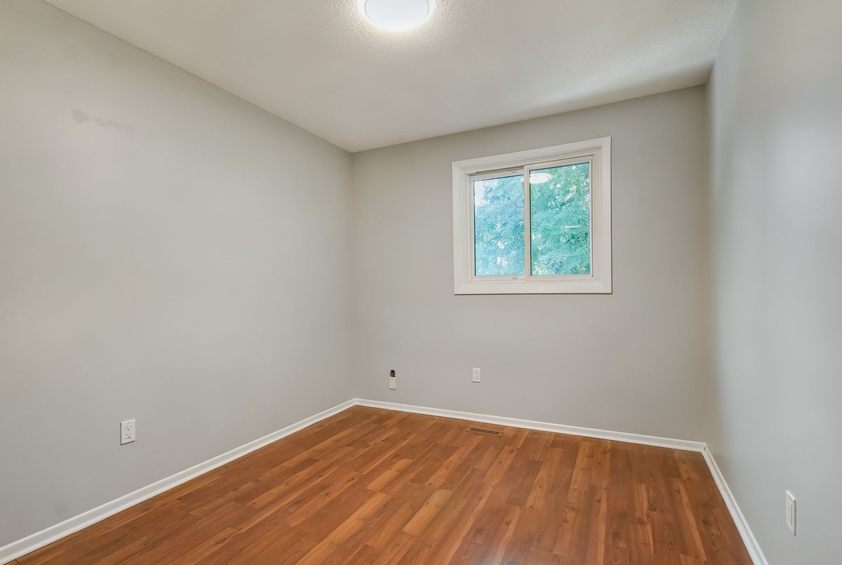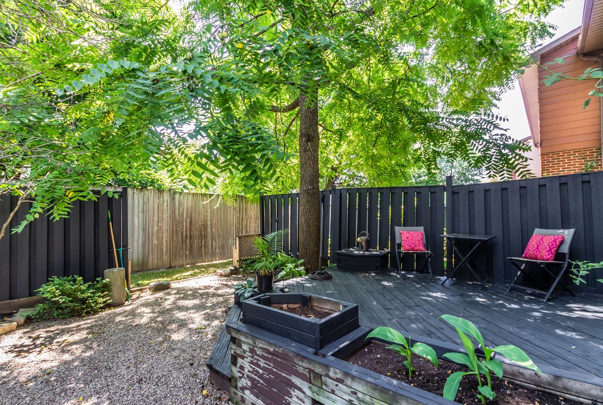 This spacious 4+1 bedroom townhome nestled at the back of a quiet, well-maintained and conveniently located complex with its own park. The bright and open living/dining area features hardwood flooring and sliding patio doors leading to a private deck and patio surrounded by mature trees. The main floor has an updated powder room and convenient direct garage entry. Upstairs, you'll find four generously sized, freshly painted bedrooms with laminate flooring and an updated 4-piece bathroom. The finished basement adds extra living space with a large rec room and a versatile bonus room - perfect for a home office or 5th bedroom. Furnace and central air replaced in 2016. Ample visitor parking available. Condo fees include cable TV, high-speed internet, and water. Roof reshingled by the condo corporation in 2022. Ideally located close to downtown Milton, shopping, the GO station, and with quick access to Highway 401. A rare 4-bedroom home - perfect for first-time buyers or growing families!