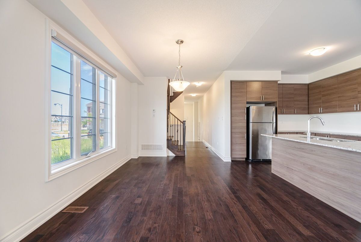 Welcome to 479 Izumi Gate where comfort meets convenience in this elegant 2-storey end unit townhouse in the prestigious Ford community. With more than 2000 sq ft of living space, this bright and spacious, sunfilled home features 4 bedrooms and 2.5 washrooms.The welcoming Porch & sunken foyer leads to a well-designed floor plan featuring 9 ft ceiling, hardwood Flooring and a generous great room with Gas Fireplace that seamlessly connects to the dining space and kitchen, making it ideal for everyday living and entertaining family and friends. Upgraded kitchen, where contemporary design meets functionality, equipped with sleek countertops, Grand Island, modern cabinetry & Gas Stove & Farmhouse Sink making this kitchen a chef's delight. Ample storage space and a convenient layout ensure that meal preparation is enjoyable and efficient. Oak Hardwood Staircase leads 2nd level featuring a luxurious Principal bedroom ,spa-inspired ensuite bathroom w/ glass shower and tub, granite counters and Walk-In Closet. Decent sized 2nd & 3rd and 4th bedrooms with large closets. 2nd floor laundry for added convenience. Easy Access to Milton GO, Bronte GO ( Lakeshore line) Hwy 407, Mississauga, Oakville, Walk toSchools, Park, Walking Trails & Green spaces.